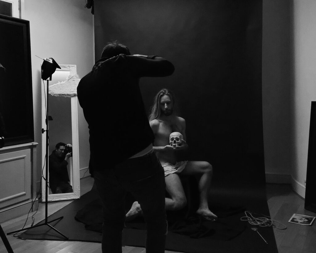 The French contemporary photographer‘s main inspiration is undoubtedly Italian, Dutch and Spanish painting from the Renaissance and Baroque periods: Caravaggio in particular, for his chiaroscuro, which deeply moved the photographer; Vermeer, for the soft pinkish hues of his skin tones, but also the works of Leonardo da Vinci, Titian, Rubens, Diego Velázquez and José de Ribera. The photographer engages with these masters by reinterpreting their paintings through photography, establishing an astonishing dialogue between the past and the present.