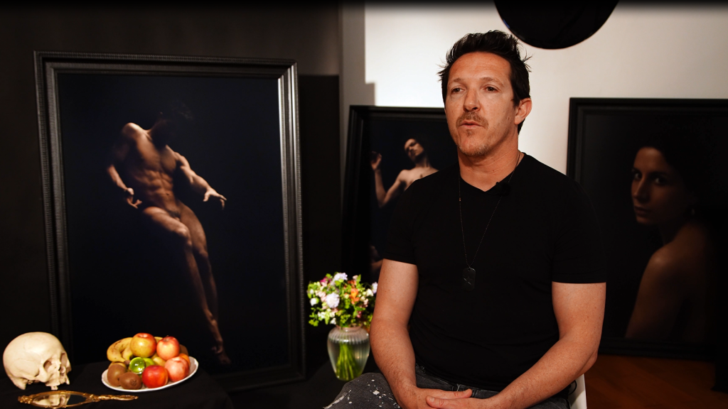The most important part of Ronald Martinez’s creative process is finding the right models: they have to match the Renaissance canons of beauty. Before each session, the artist looks at the painting books with them for inspiration and to exchange ideas. Then, a special alchemy has to be created during the shooting. The artist explains his relationship with his model as follows: “I feel that the interaction I have with my models is a mixture of the energy and the story that binds us through a work, through a painting“.