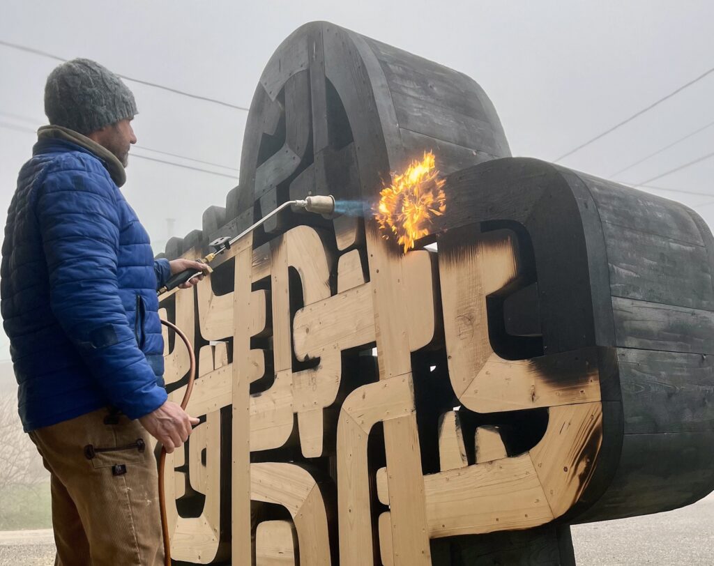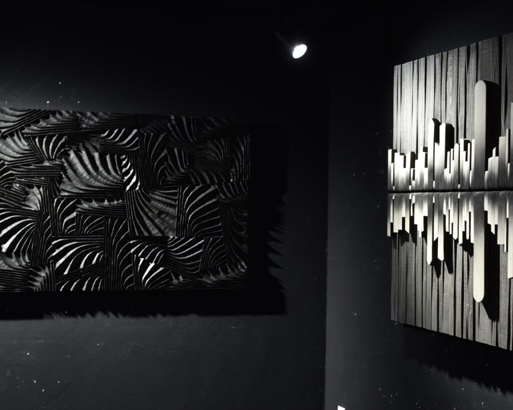 Once the shape is complete, work begins on the texture. The sculptor allows himself to be guided by a more instinctive feeling for the wood, through the sense of touch: “My hands are my eyes. You have to touch it to see the defects.” It is also at this stage that he applies the techniques he has developed himself: brushing, burning, polishing, sandblasting, engraving, cerusing, using Indian ink patinas, lacquers and acids, etc. Although the effects used vary, Thierry Martenon always favours a monochrome finish. His ultimate aim is to capture light in a unique way, playing on contrasts with shadows to magnify each sculpture and reveal all the depth of his favourite material.