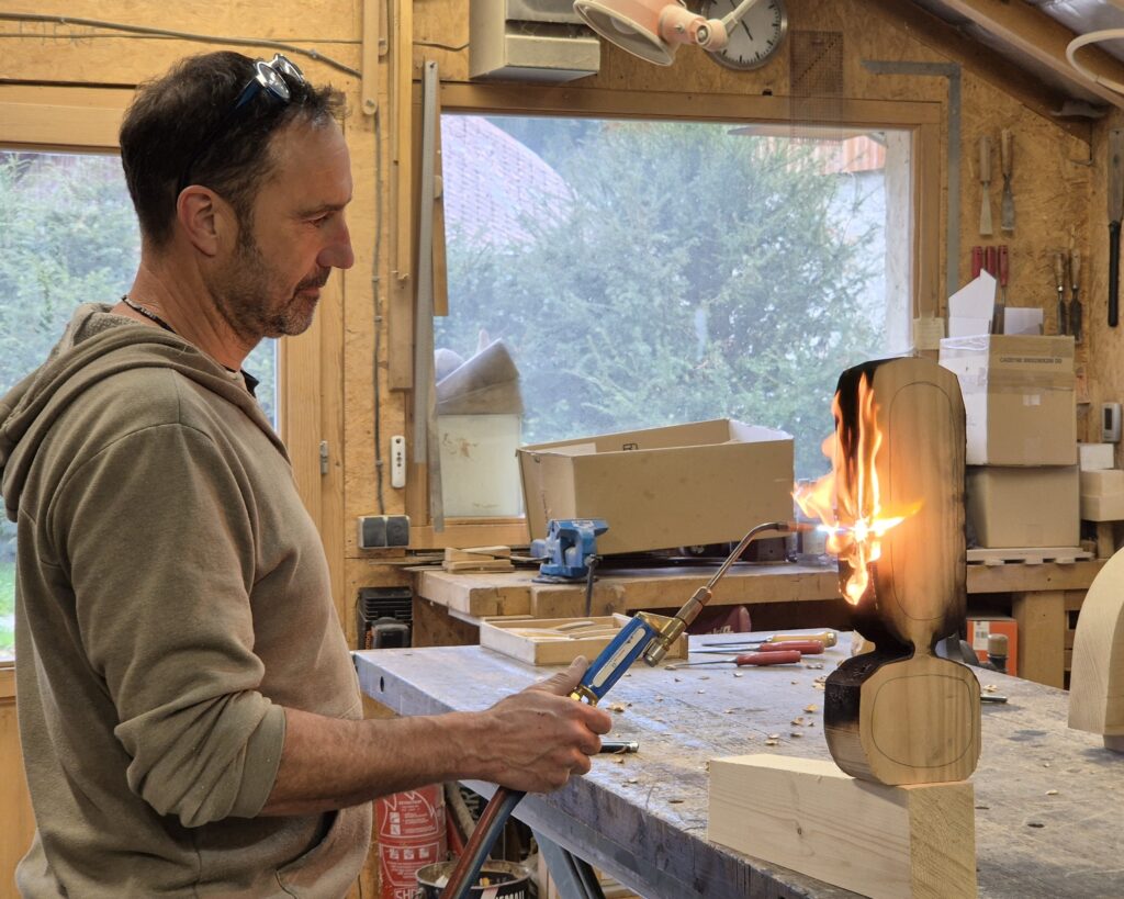 Thierry Martenon was born and grew up in Désert d’Entremont, a small hamlet at the northern end of the Chartreuse massif in Savoie. In this mid-mountain forest environment, the mineral element rubs shoulders with the vegetable. Woodworking is part of the culture here, and his family is no exception. As a child, Thierry used a pocket knife to make toys and small figurative objects from hazel. Over time, two things became clear to him: he would never leave this region and he would work with wood, a material he considers to be his “mother tongue”. He loves to sculpt and manipulate it, with great sensitivity to its textures, colours and scents.