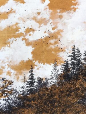 The Luxembourg artist Joachim van der Vlugt’s painting fluctuates between figurative and abstract. In his landscape paintings, realistic motifs mix with abstract shapes. In the world of Joachim Van der Vlugt, a mountain landscape is suddenly crossed with opaque rectangles and religious figures float in undefined surroundings, creating an almost metaphysical, captivating and even sometimes disturbing atmosphere.