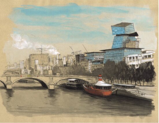 Artwork by the Spanish painter Ramon Enrich also testifies to an established harmony between representation and reinterpretation of reality. His contemporary paintings offer a wide palette of bright colours producing an effect of warmth and light radiating beyond the edges of the canvas. The artist paints deserted areas with only architectural buildings as simplified forms giving perspective and inviting the viewer to contemplate on.