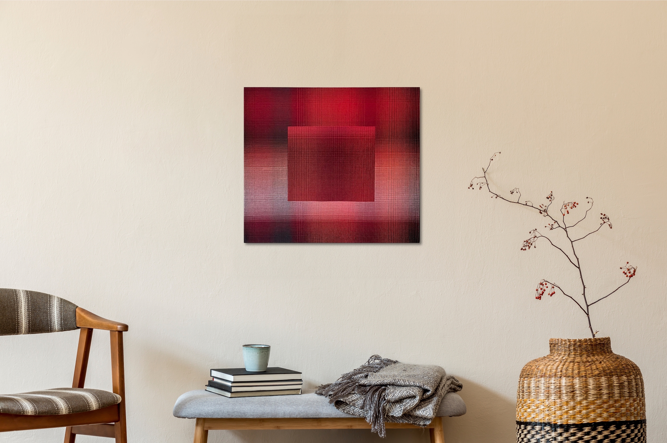 2023 I – 14 (Variations on Red) is a work of textile art by the artist Christiane Maurer, from the series 2023 I.