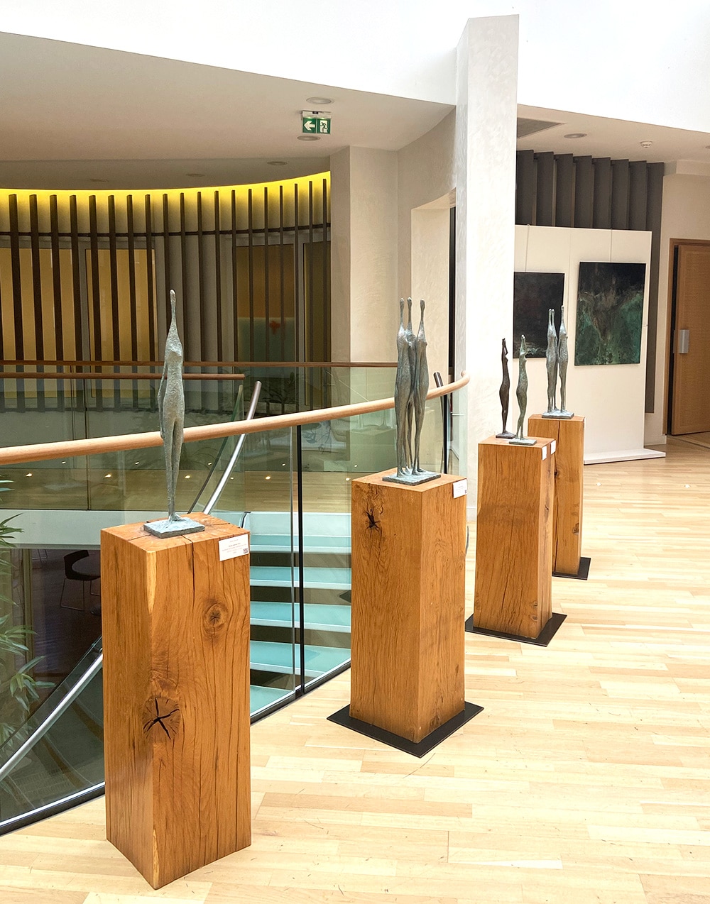 The solidarity of these three figures and the pyramidal composition they form make this multi-faceted sculpture a harmonious whole. Pierre Yermia also plays on the relationship between the full and empty spaces in his sculptures, creating an open space. The proximity of these figures weaves between them “a silent, invisible exchange, a whisper of profound humanity”. This is how the artist conveys, through the “Figures in a group” series, the message of a humanity that is certainly in danger, but that nevertheless remains optimistic and serene.