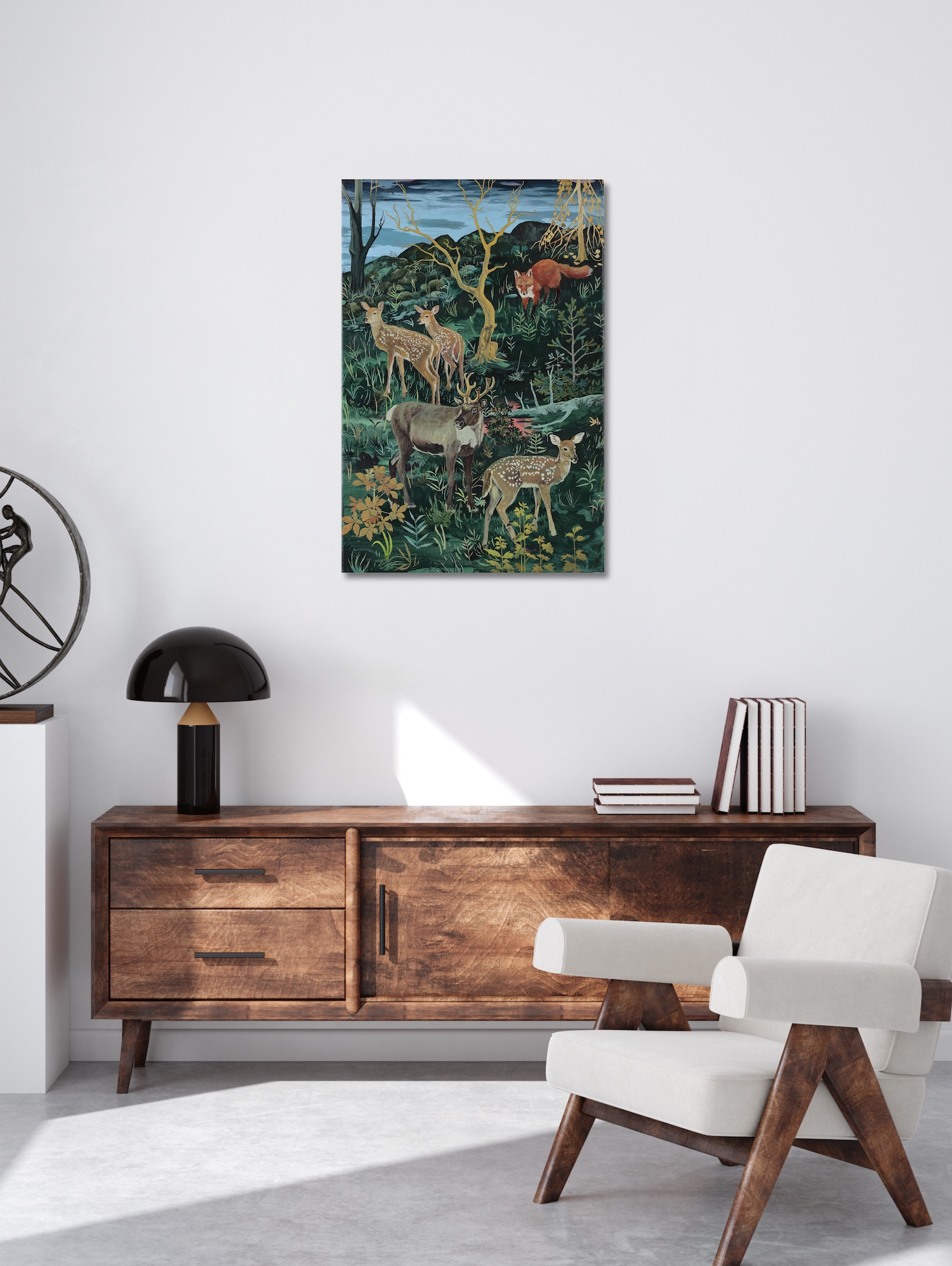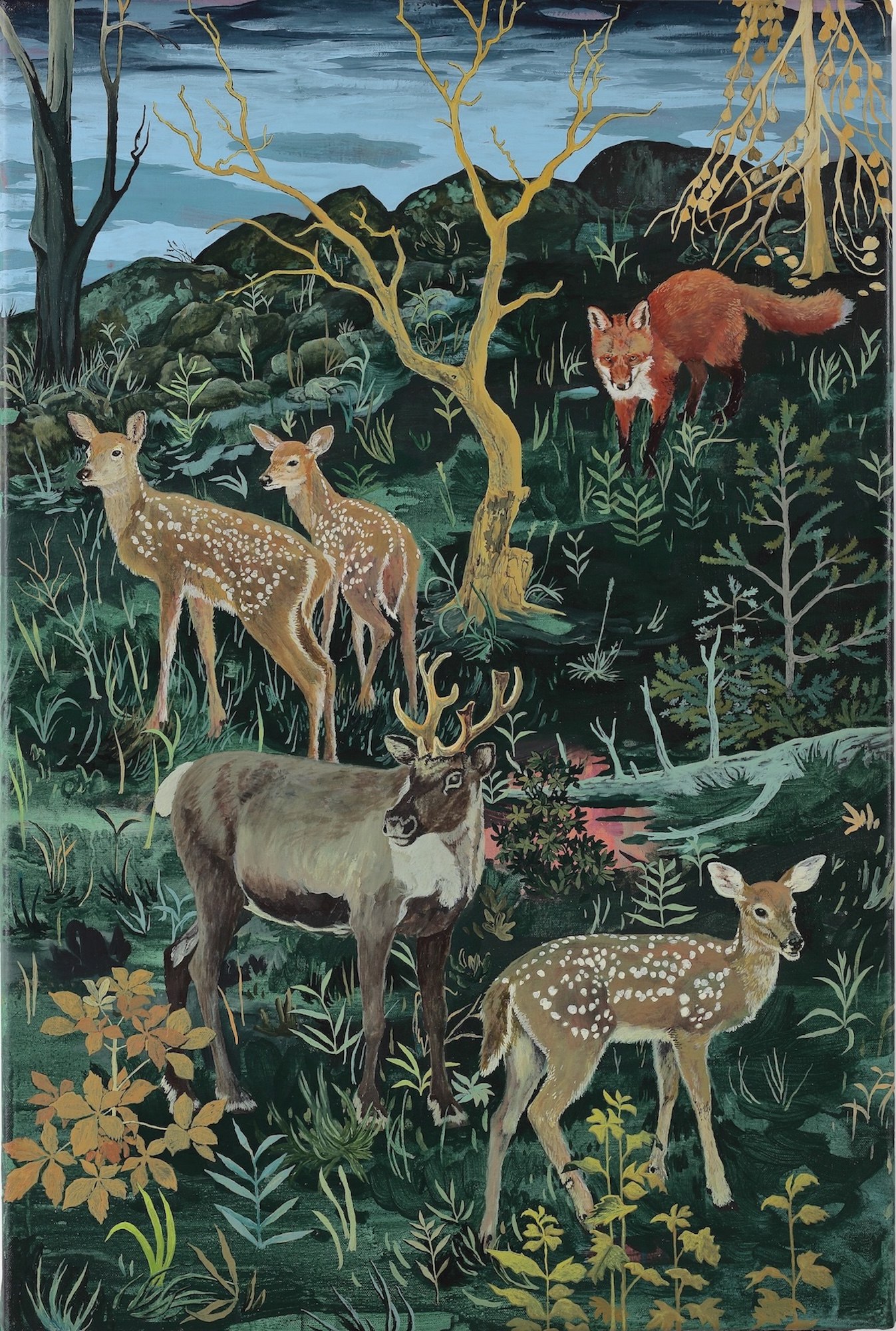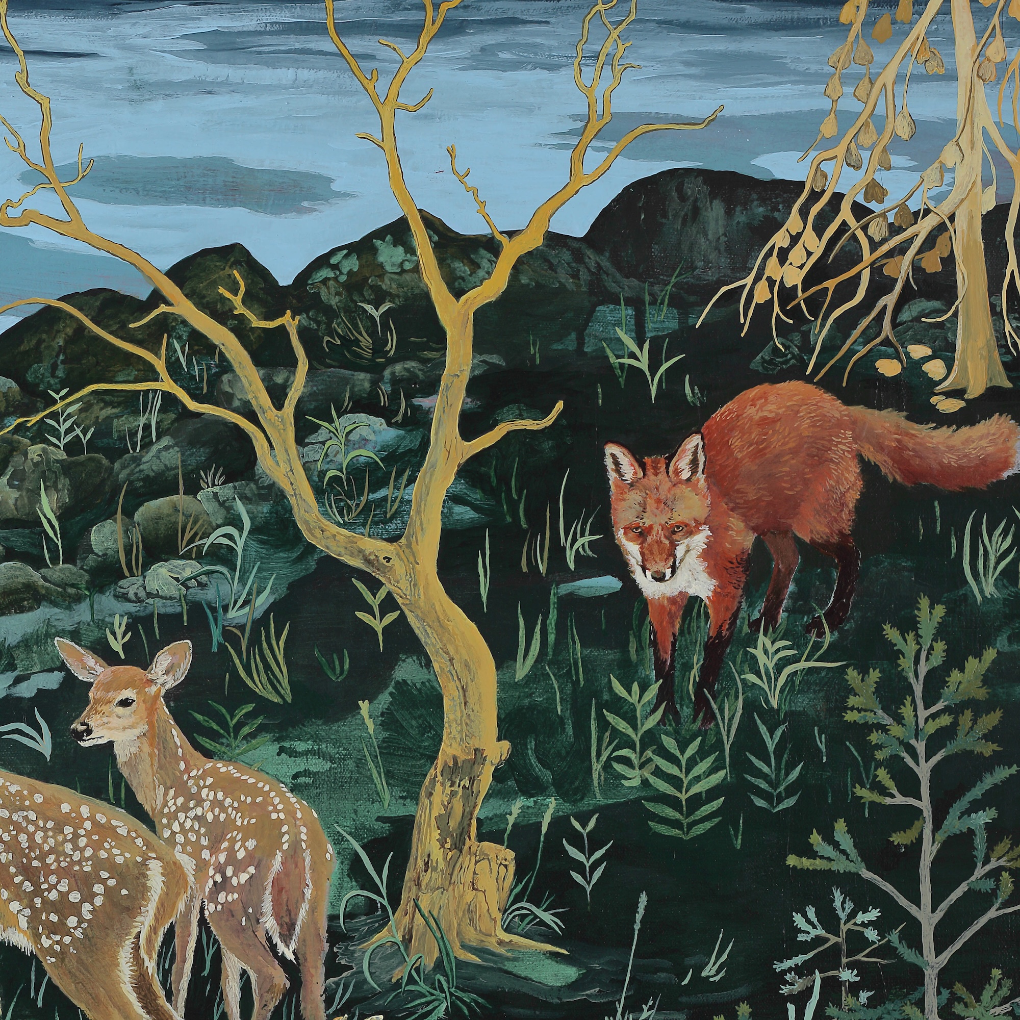 | Tags | Deer artwork|forest|Fox painting|green |