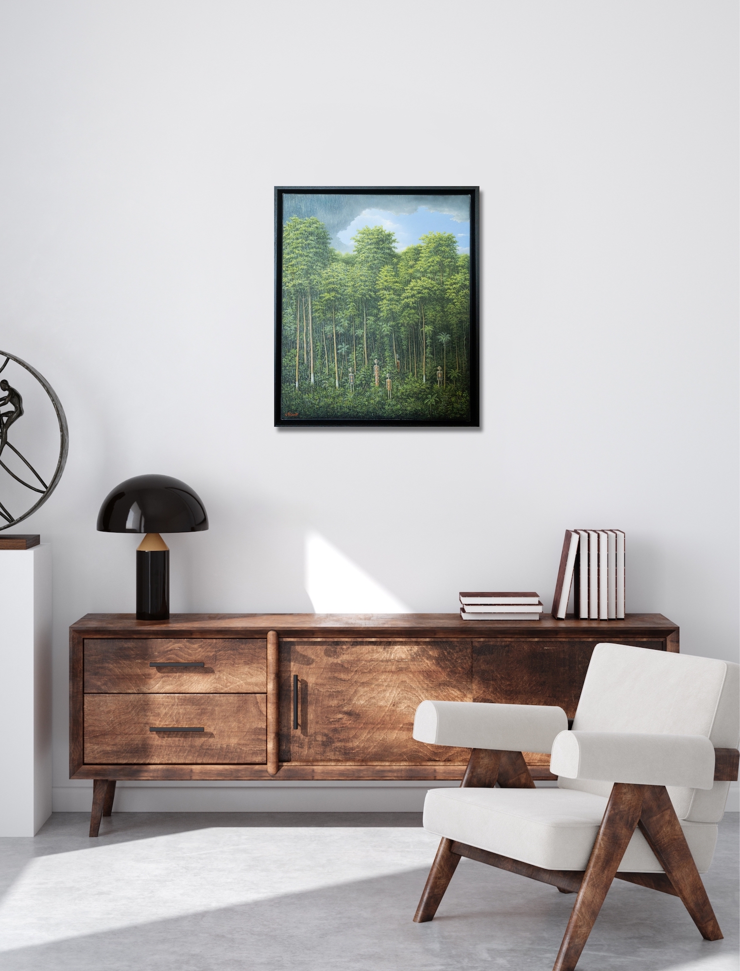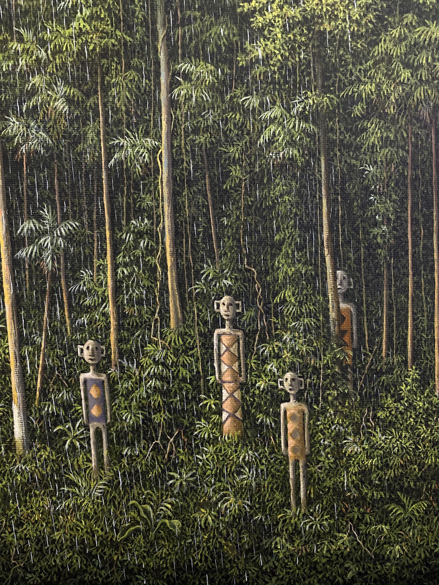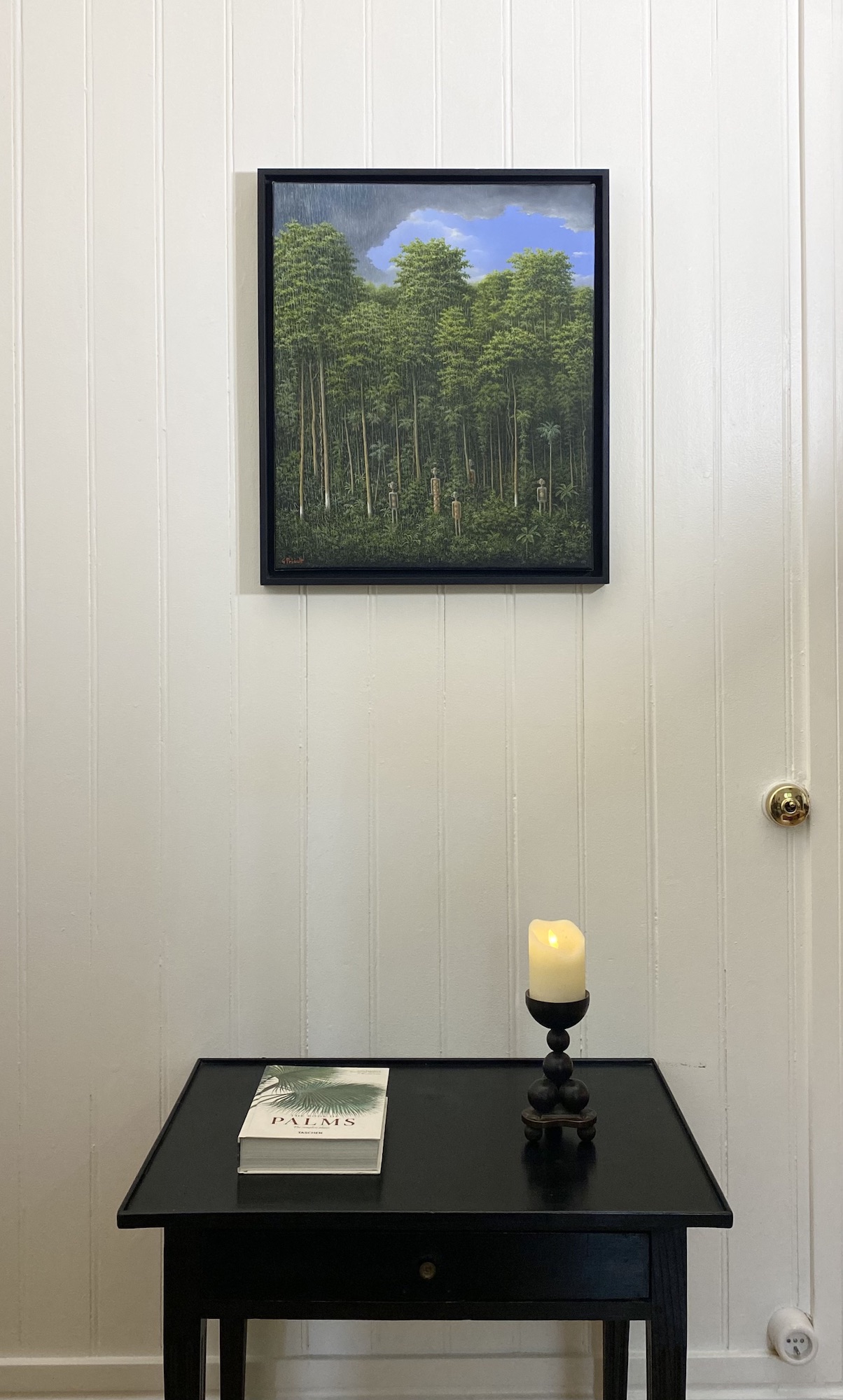 A Presence Already Inhabits It is an oil painting by French artist Gérard Priault depicting a tropical rainforest.