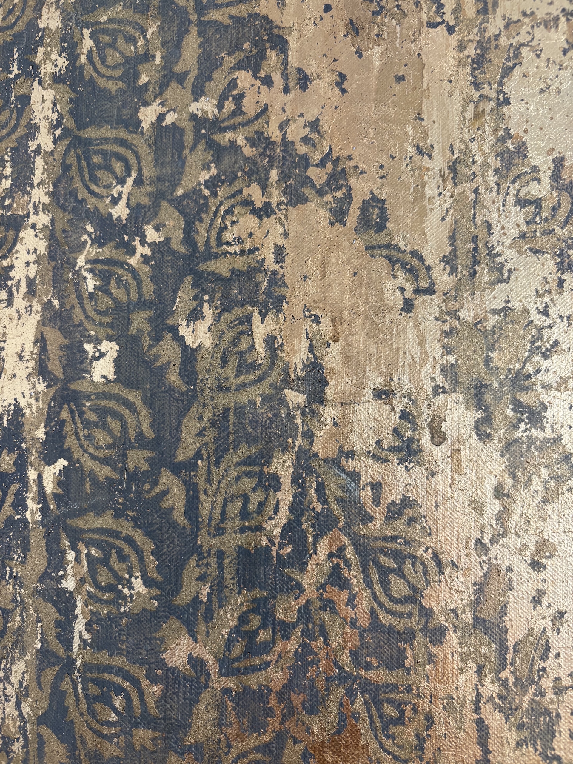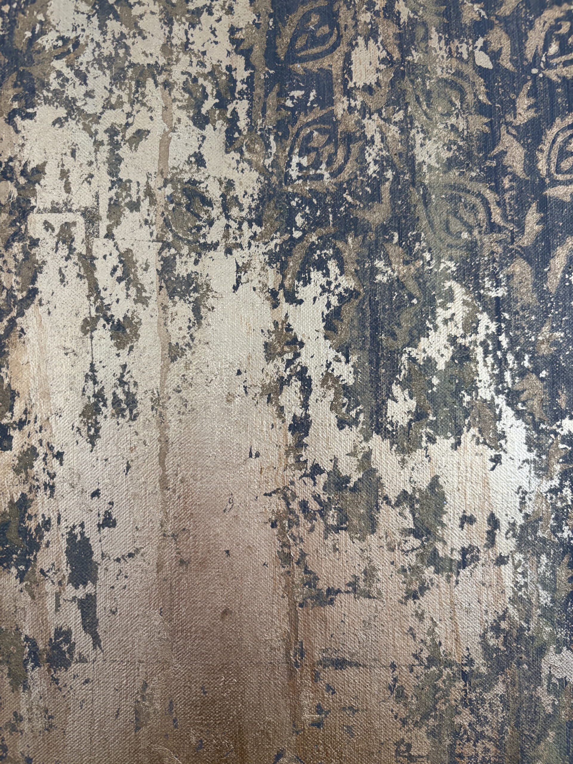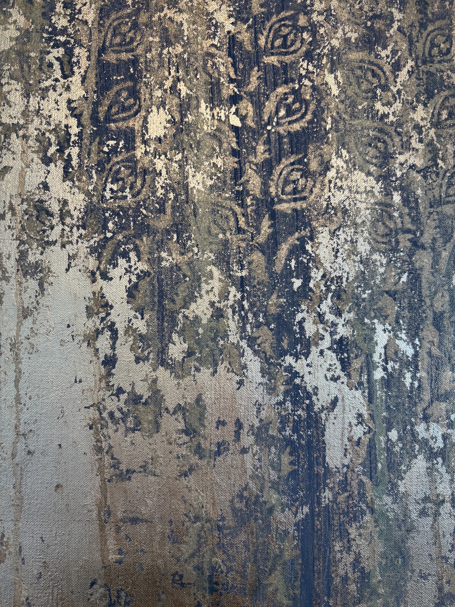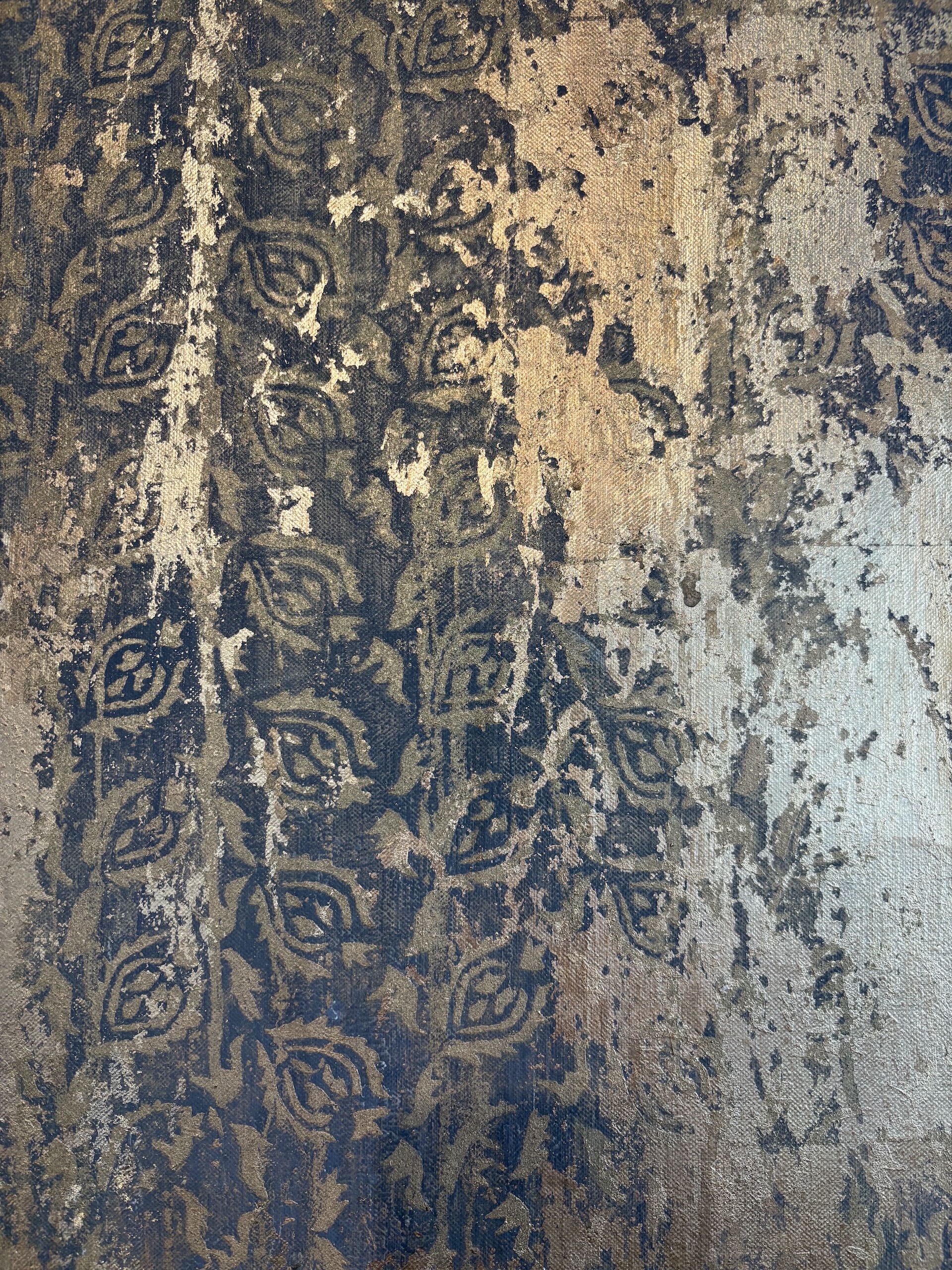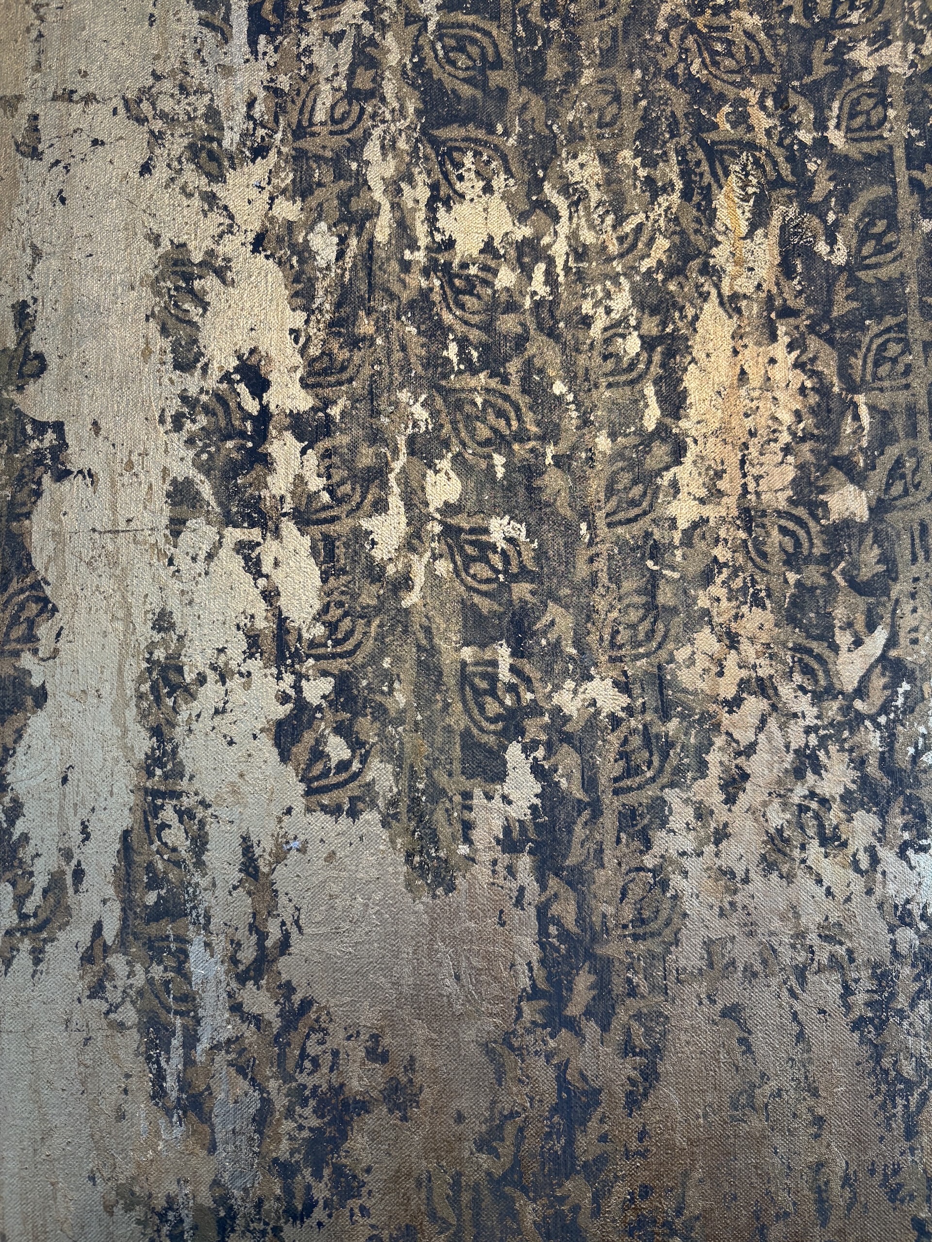 | Description | Mixed media on linen canvas (pigments, binders, glues, various metal powders and leaves) |