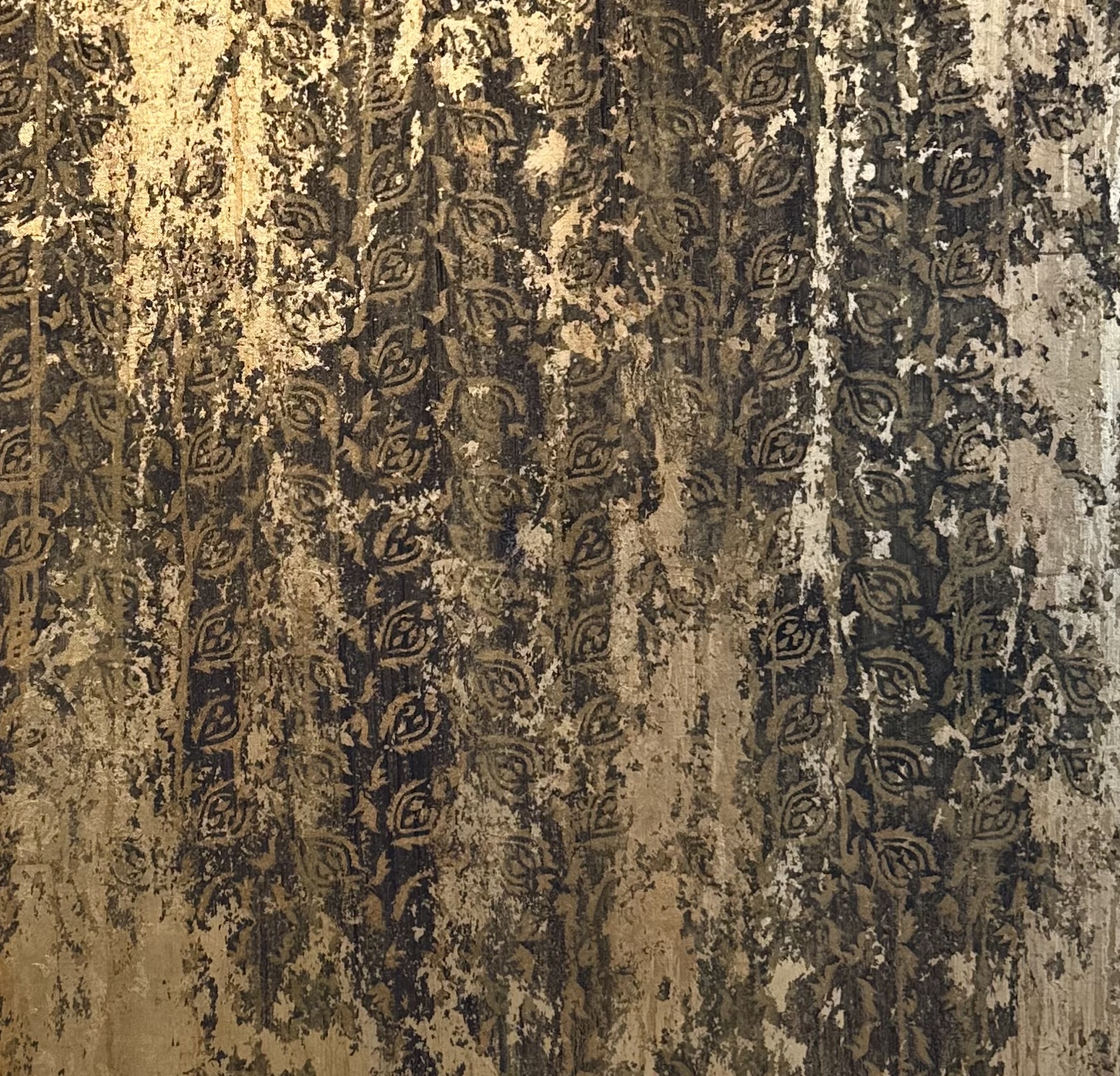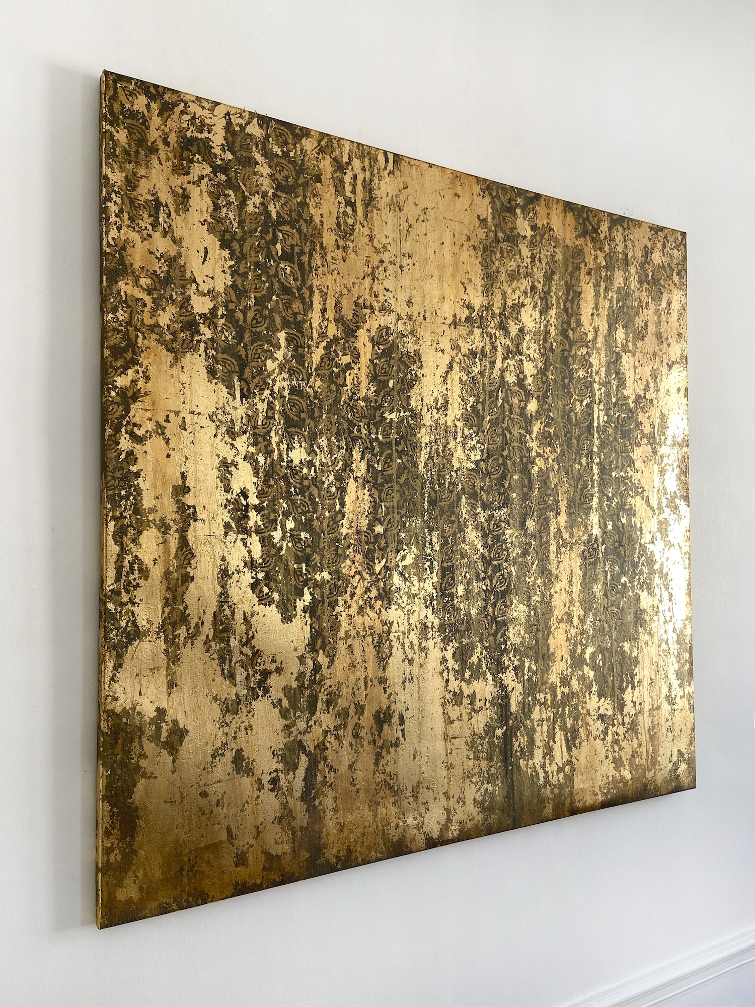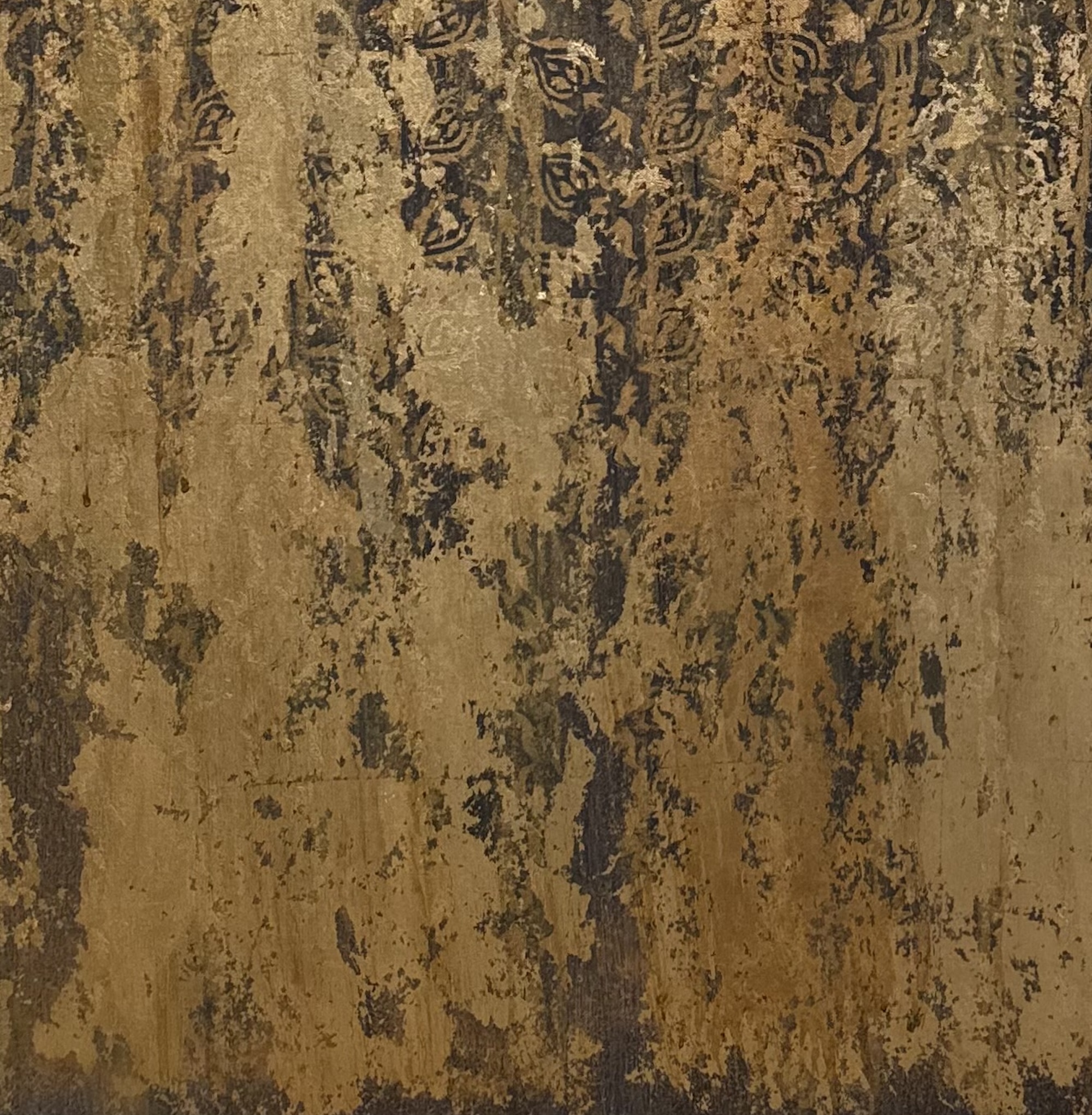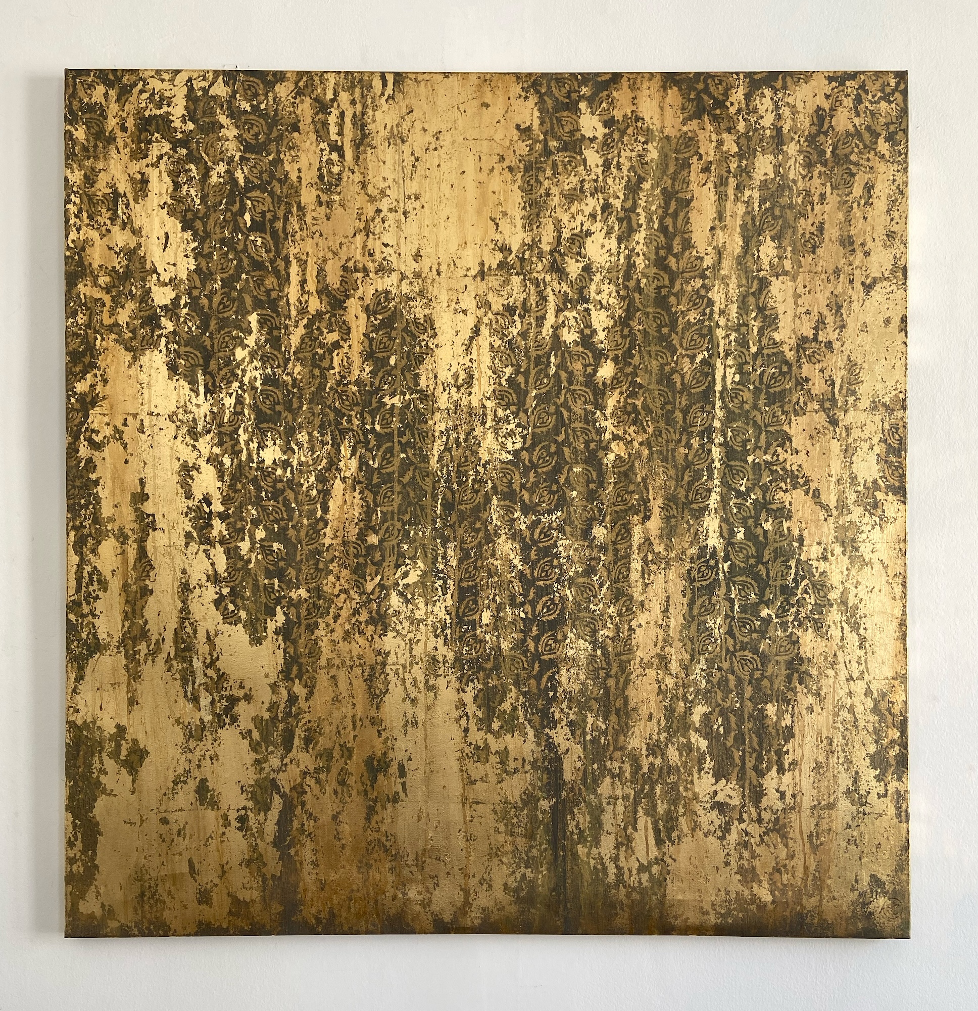 Description: Mixed media on linen canvas (pigments, binders, glues, various metal powders and leaves)