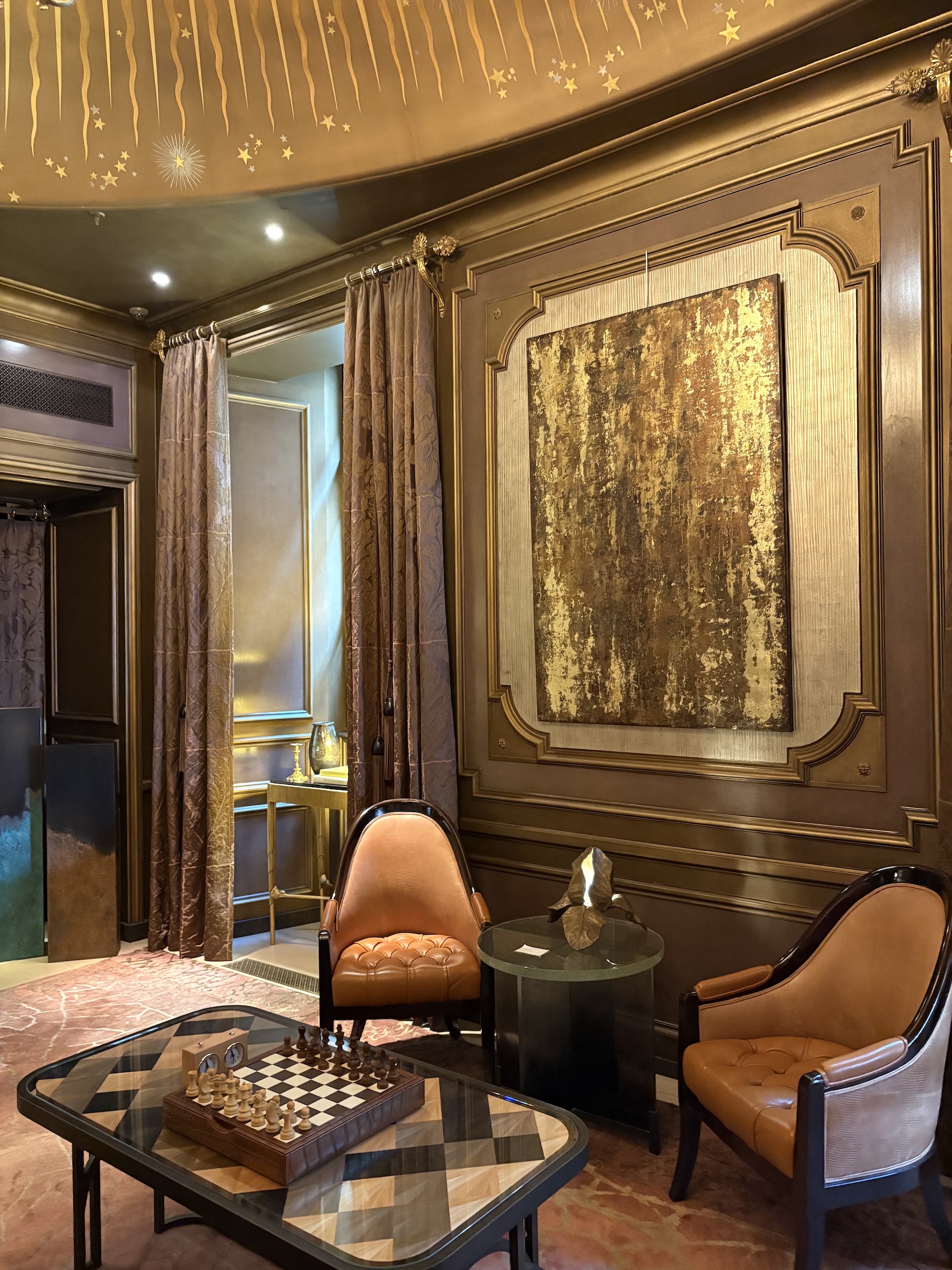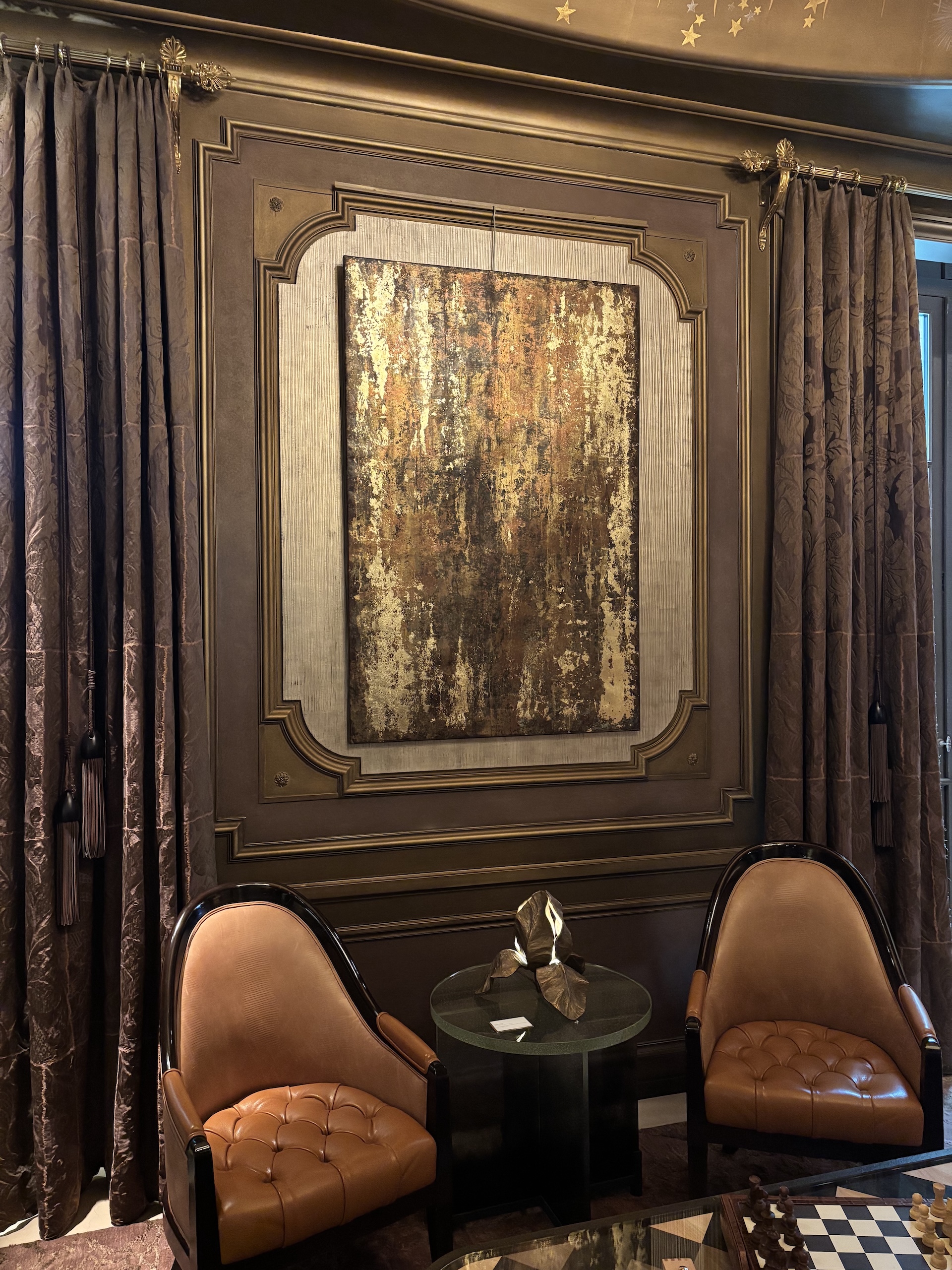 The photographs taken inside a hotel show the work exhibited at the Hôtel de Crillon (Paris, February-March 2026).