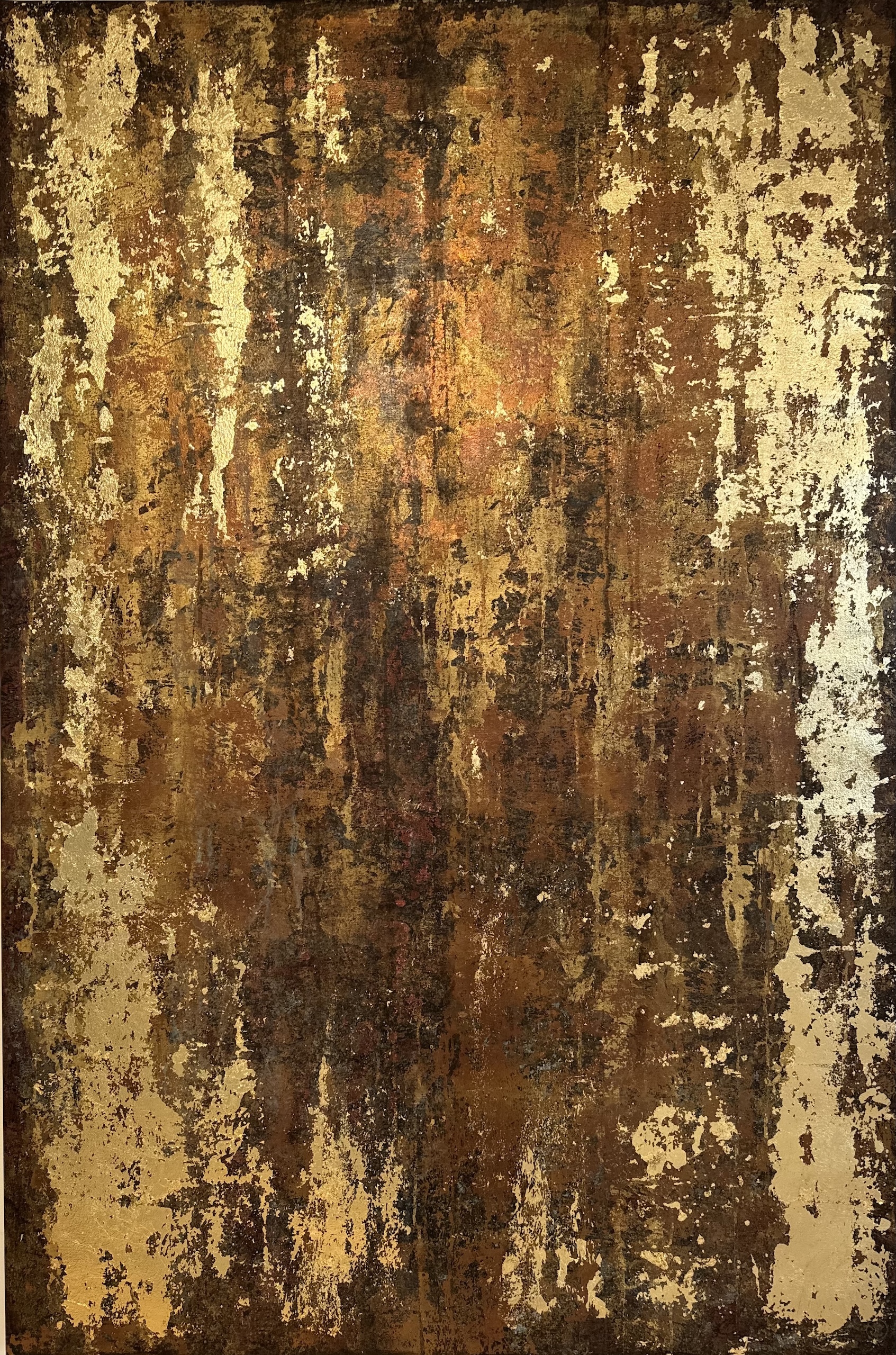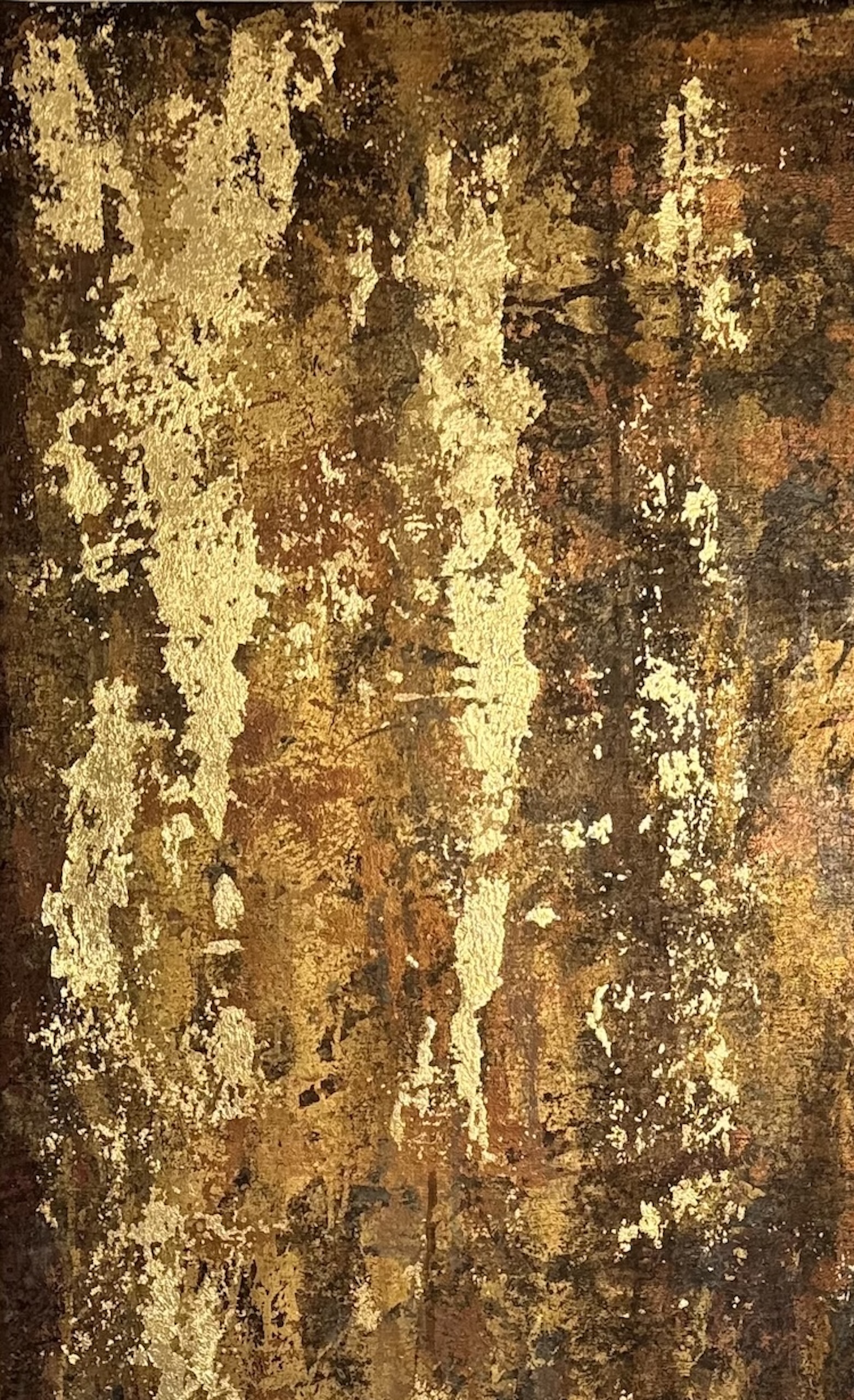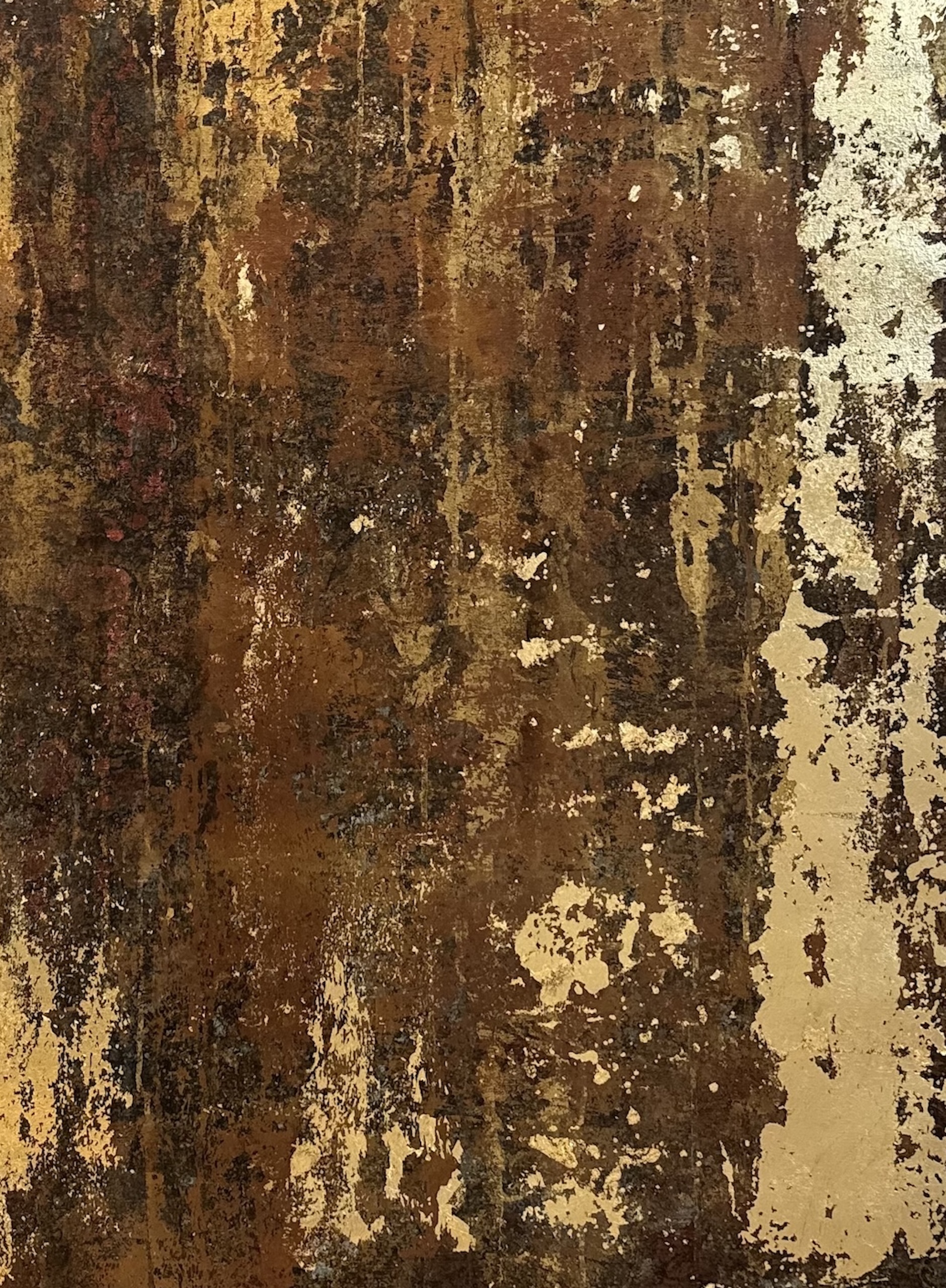 Description: Mixed media on linen canvas (pigments, binders, glues, various metal powders and leaves)