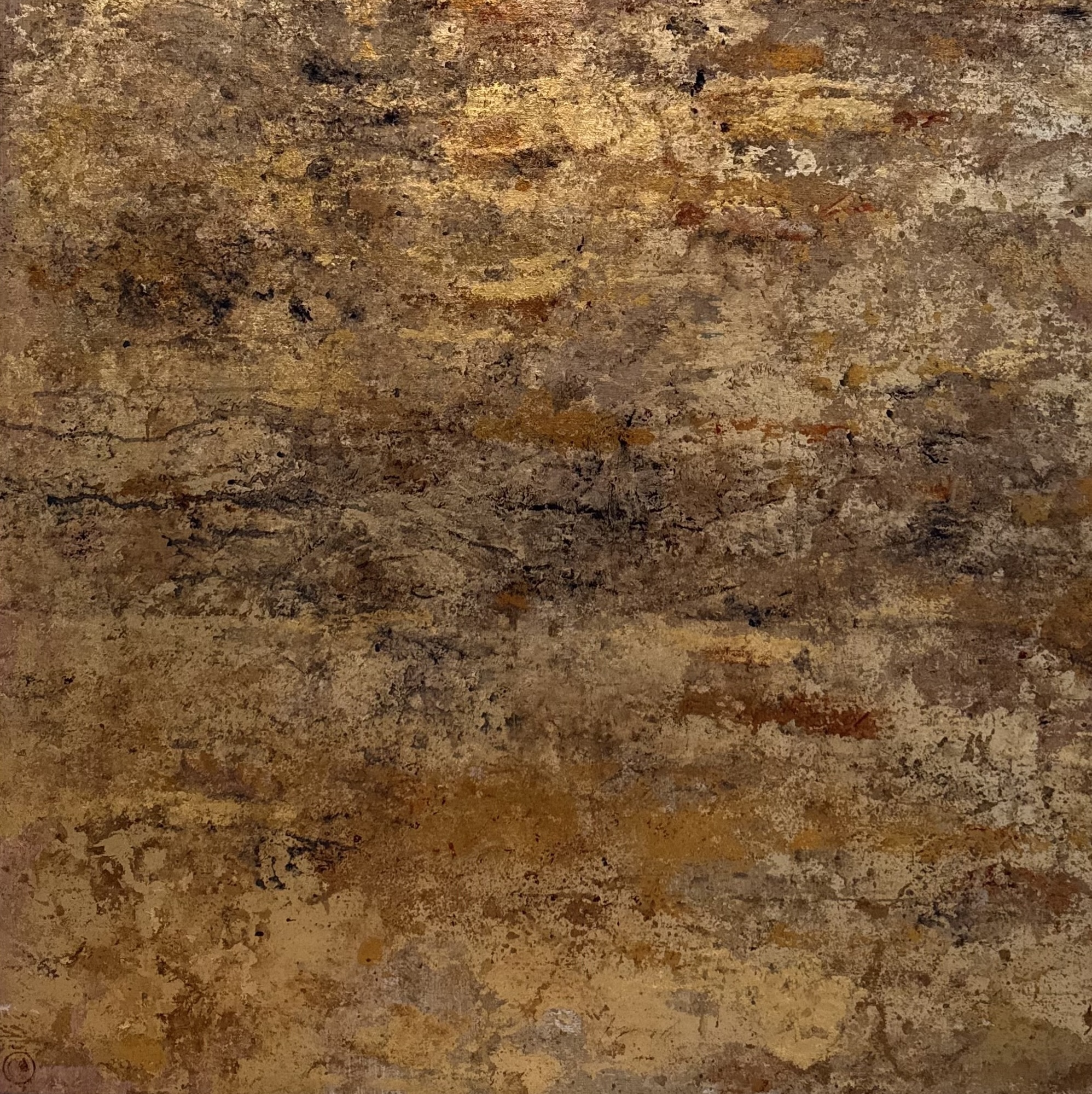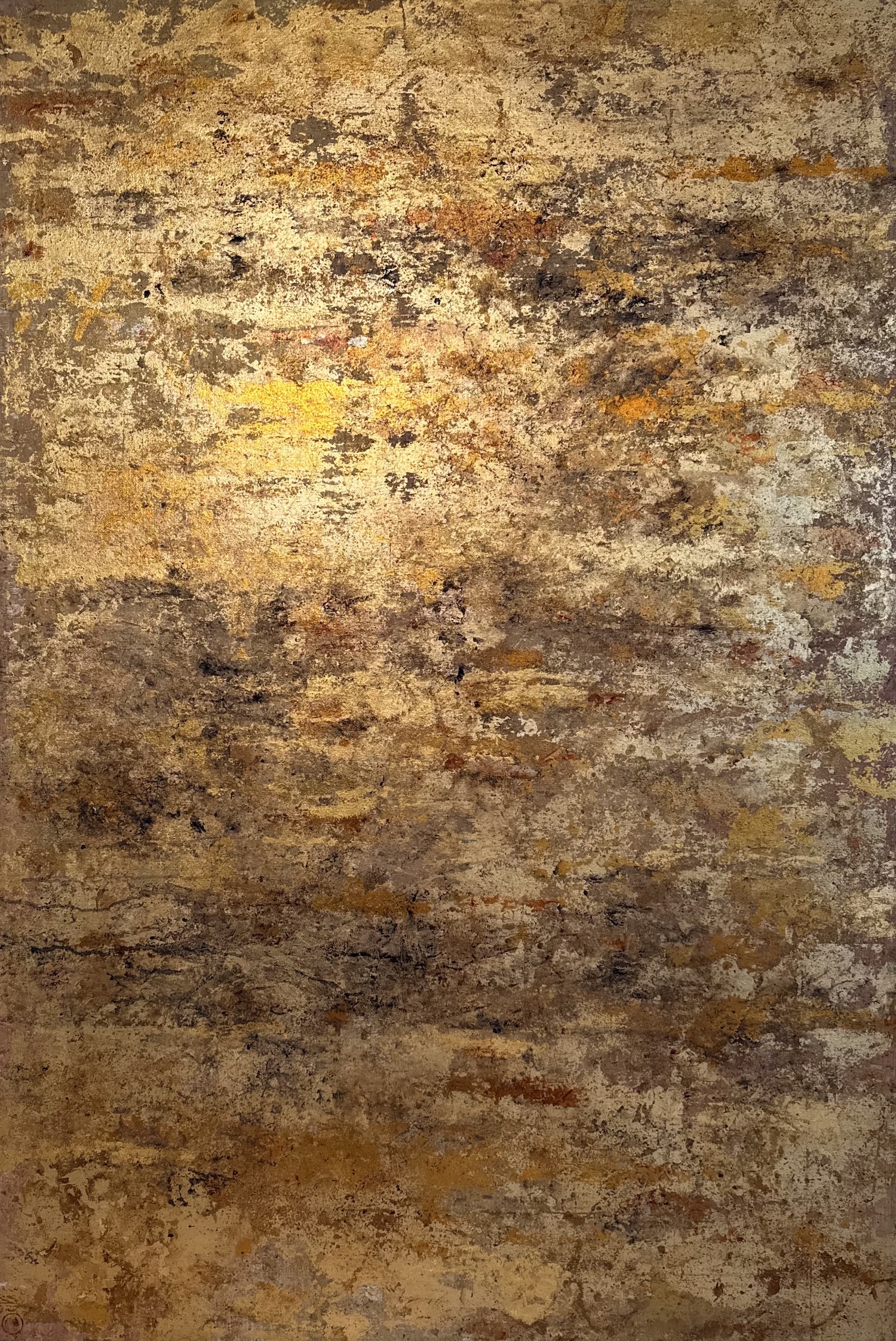 Description: Mixed media on linen canvas (pigments, binders, glues, various metal powders and leaves)