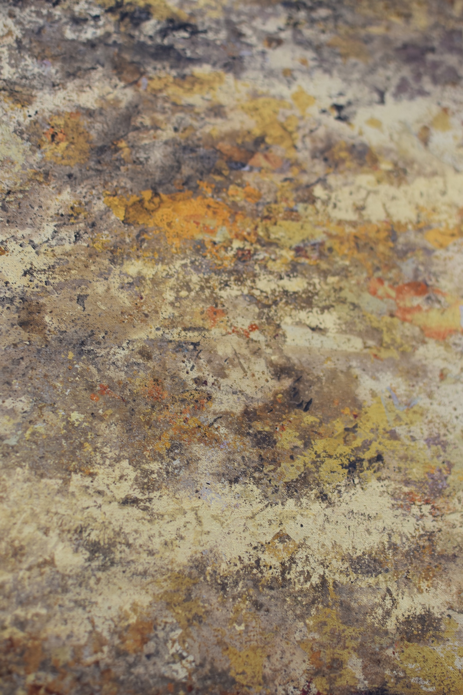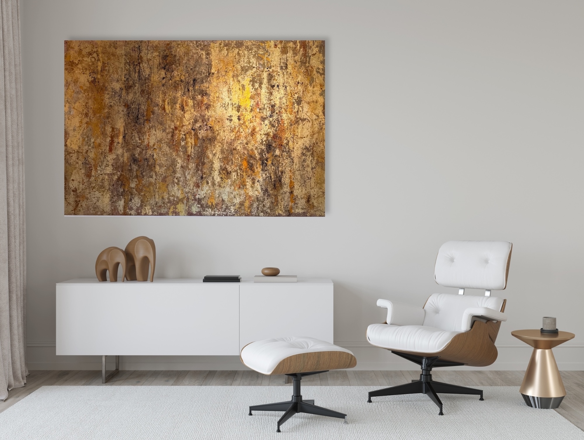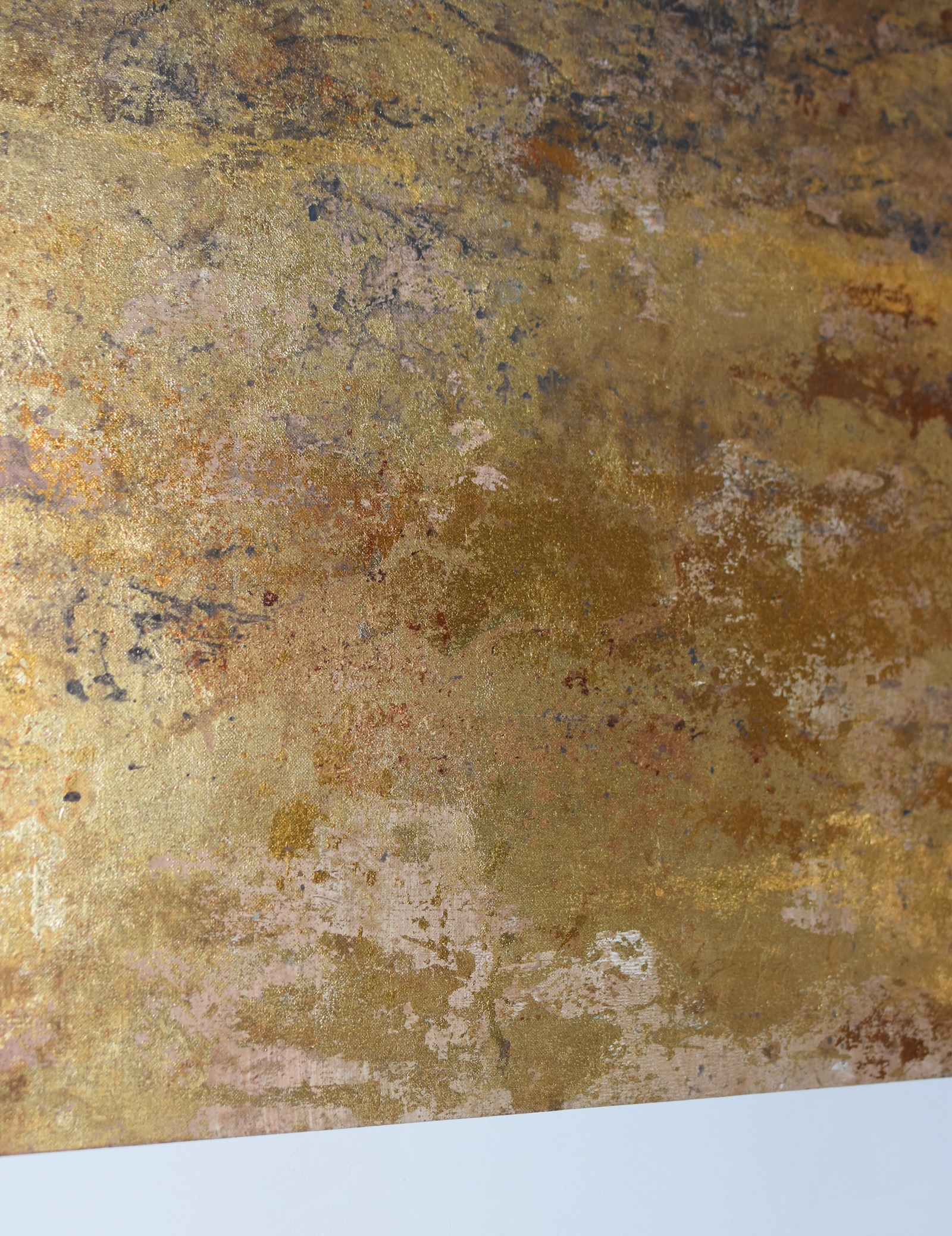 Abstraction 100-150 42 24 is a painting by French artist Nicolas Galtier. The artist uses a mixed technique combining pigments, binders, glues and various metal powders and leaves. The composition is based on a colour palette cantered on shades of gold and brown.