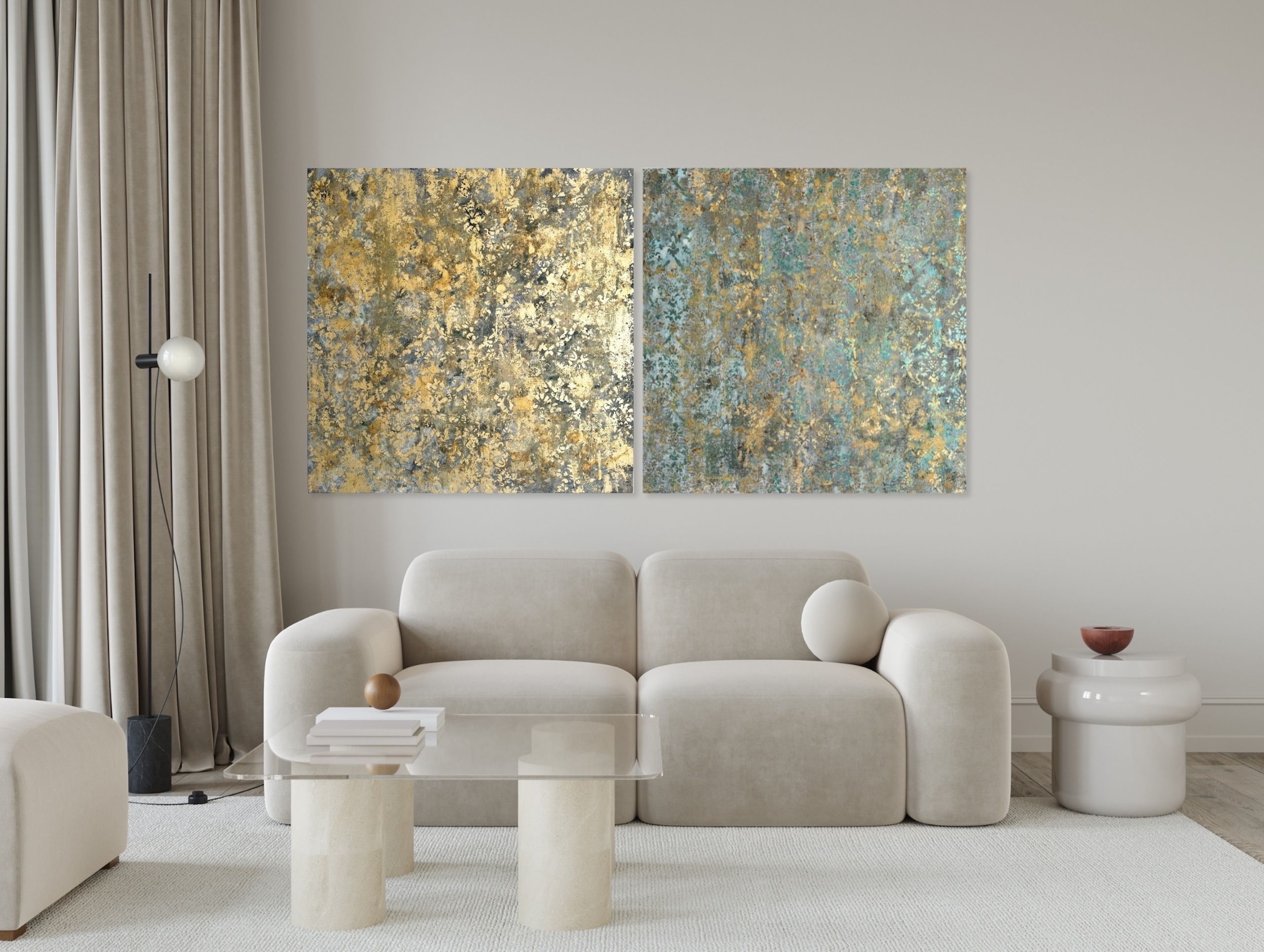 | Tags | diptych|golden|Large-scale painting|mixed technique |
