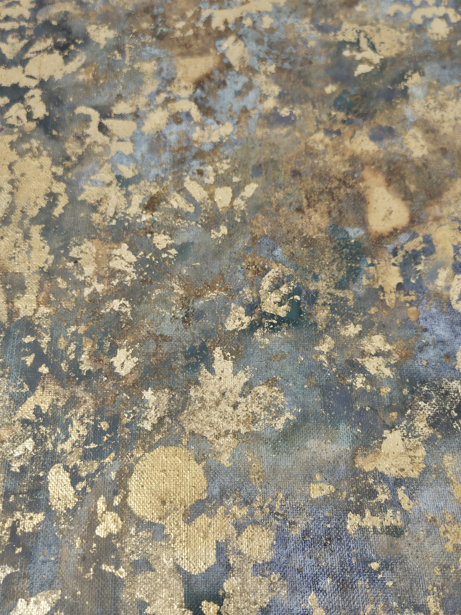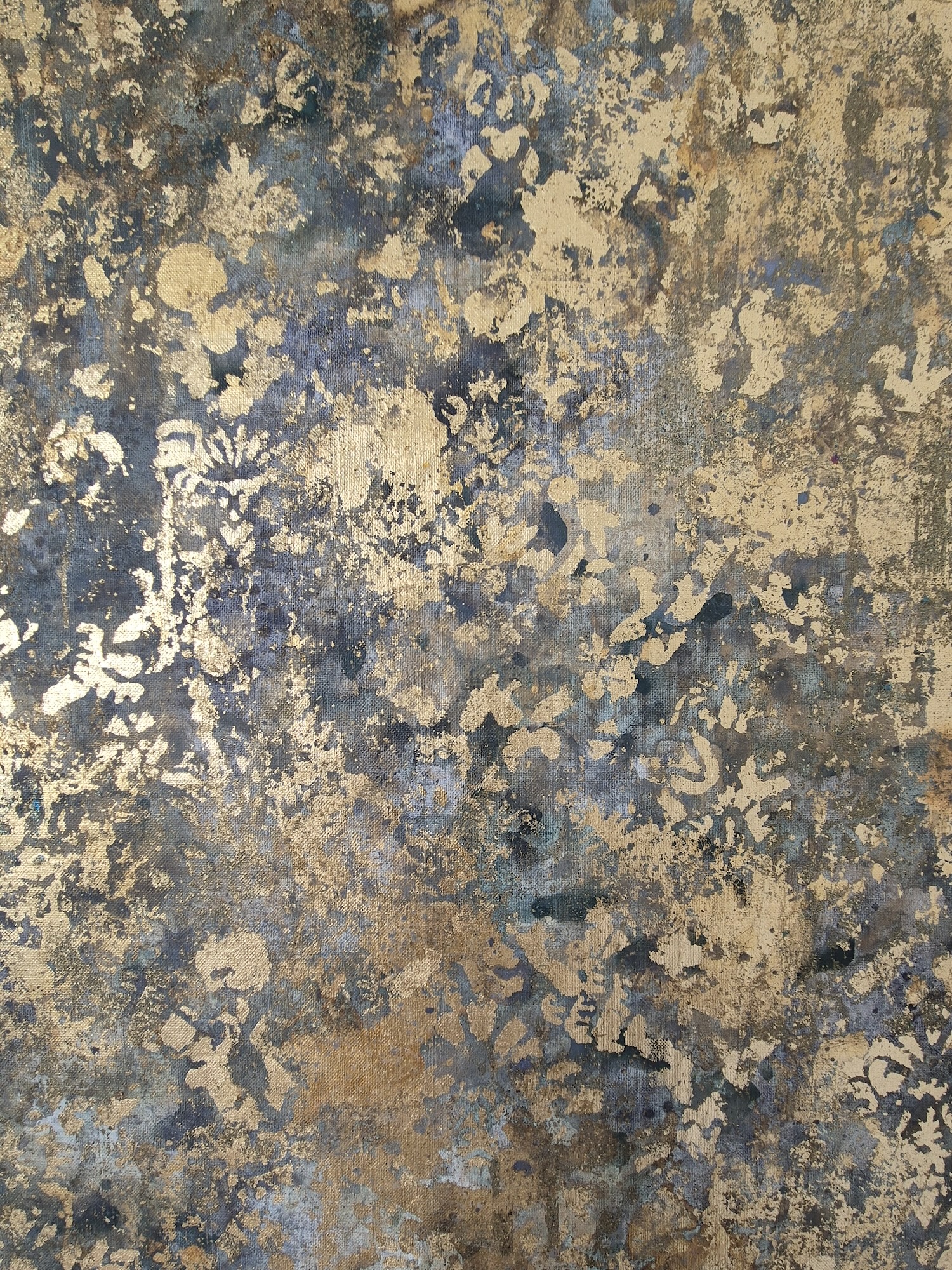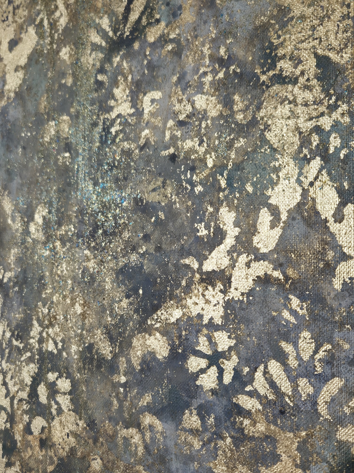 Description: Mixed media on linen canvas (pigments, binders, glues, various metal powders and leaves)