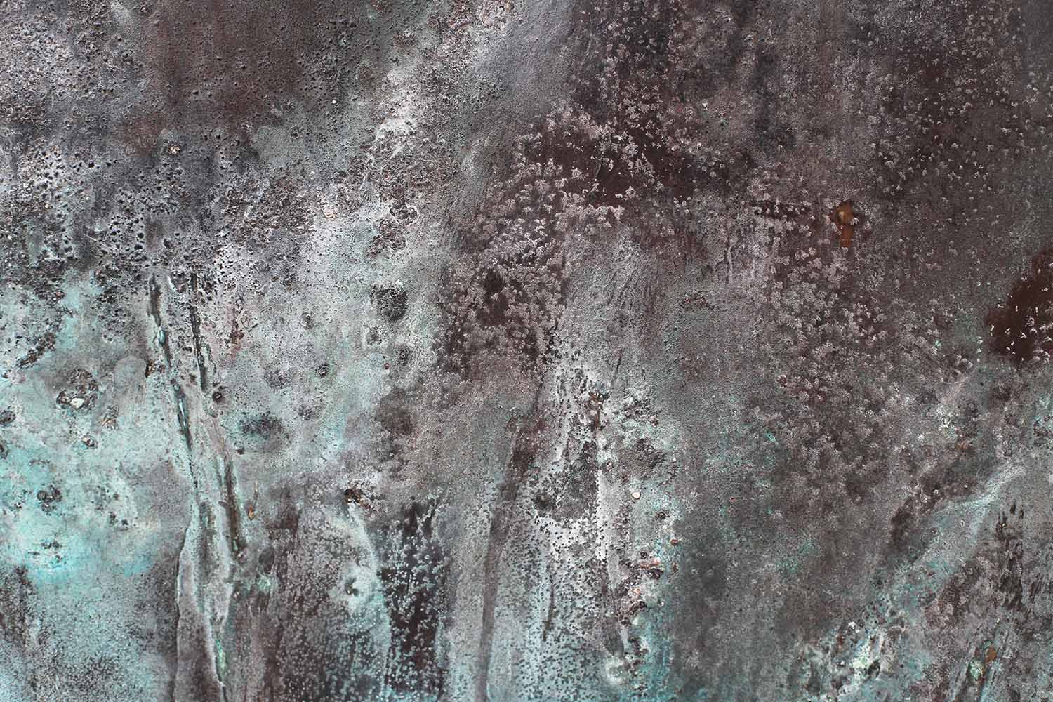 | Description | Oxidized zinc and bronze leaves on aluminum, patina fixed with beeswax |