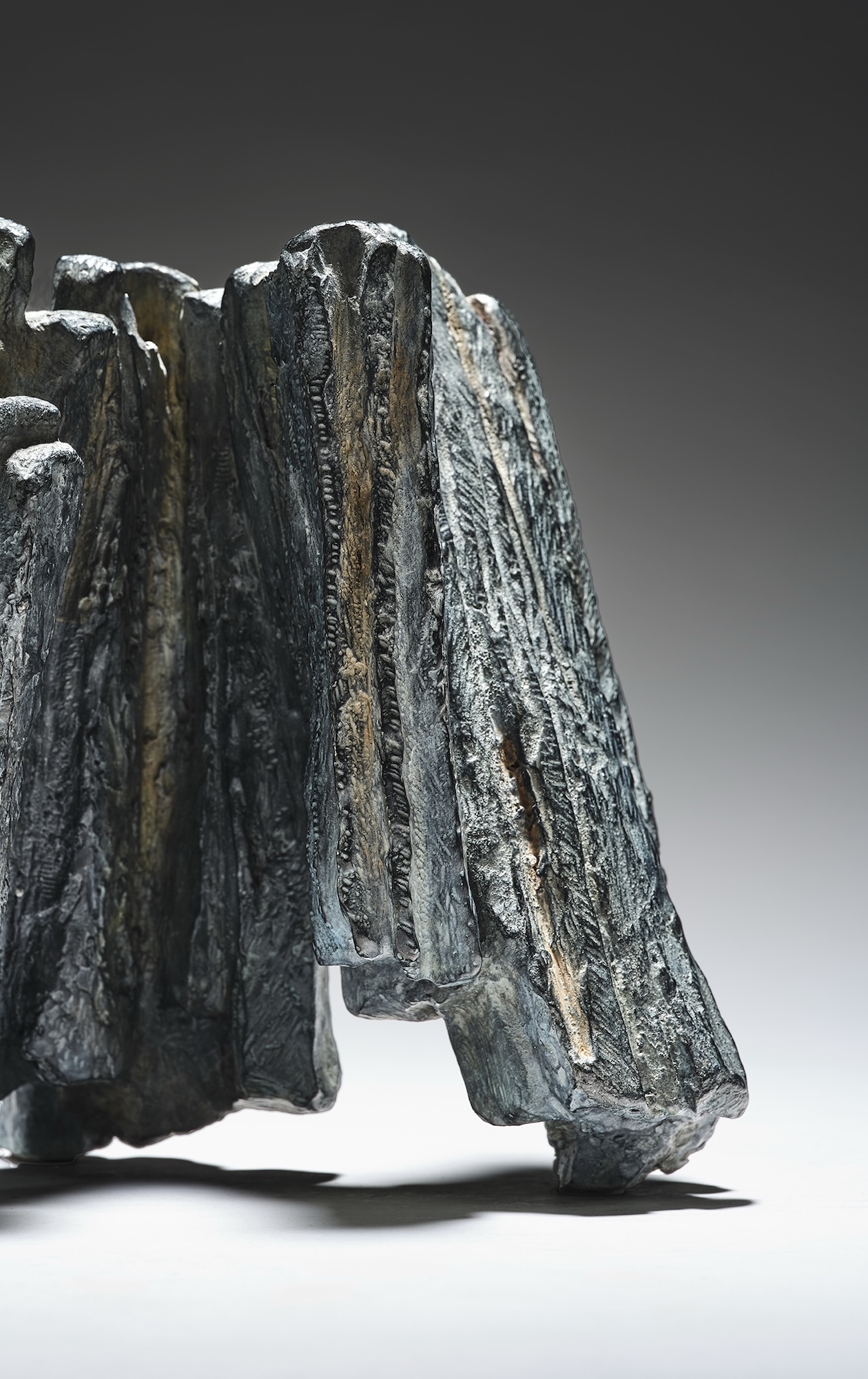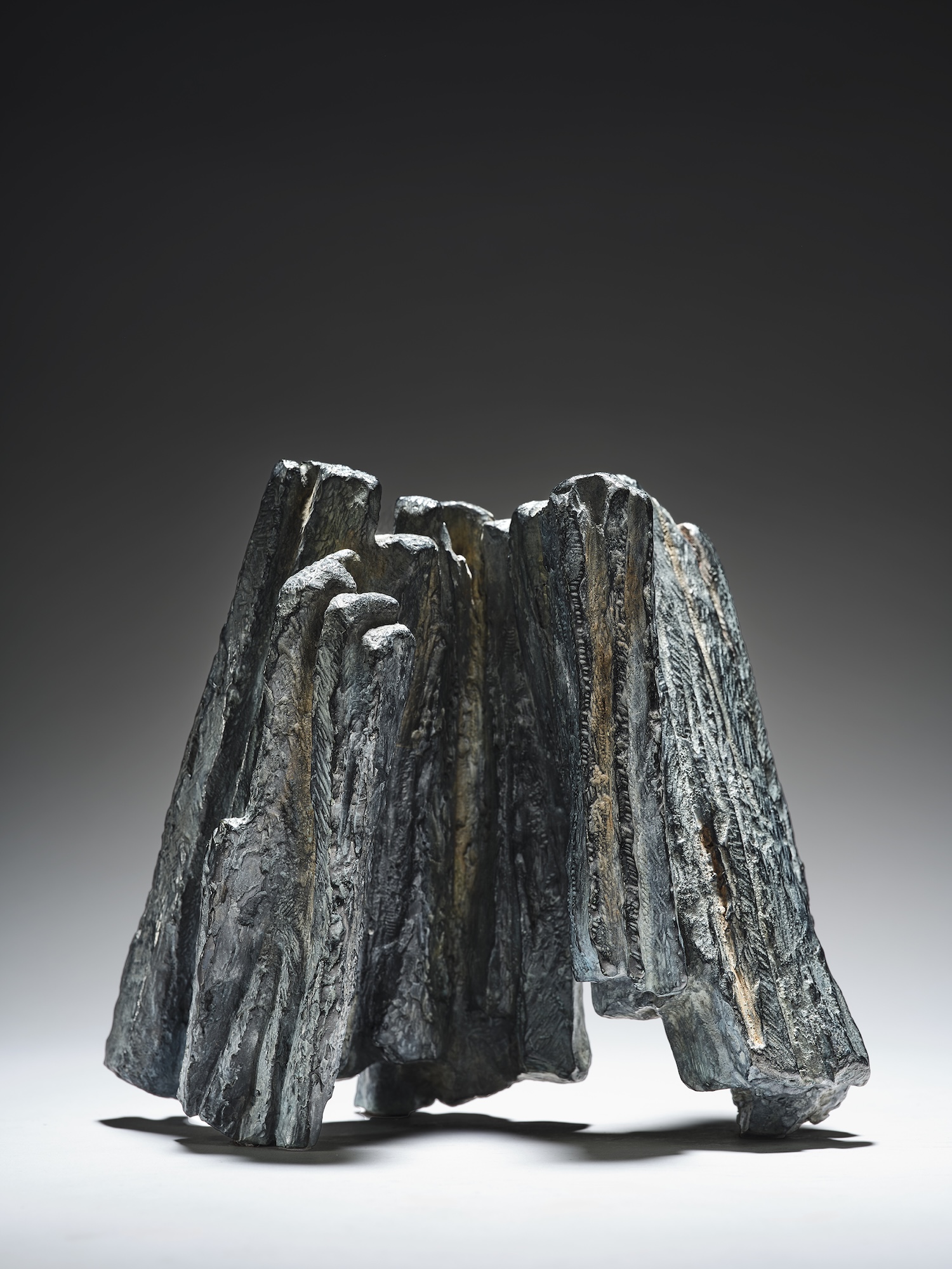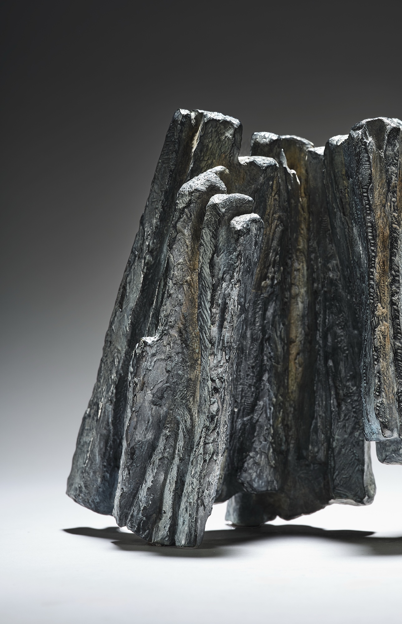 This artwork offers up a harmonious mixture of forms that seems to float. In working the forms towards the abstract, the artist delivers a dynamic impulse to the artwork’s material. By also choreographing together the used and void spaces, she draws out of her abstract sculptures an almost musical rhythm.