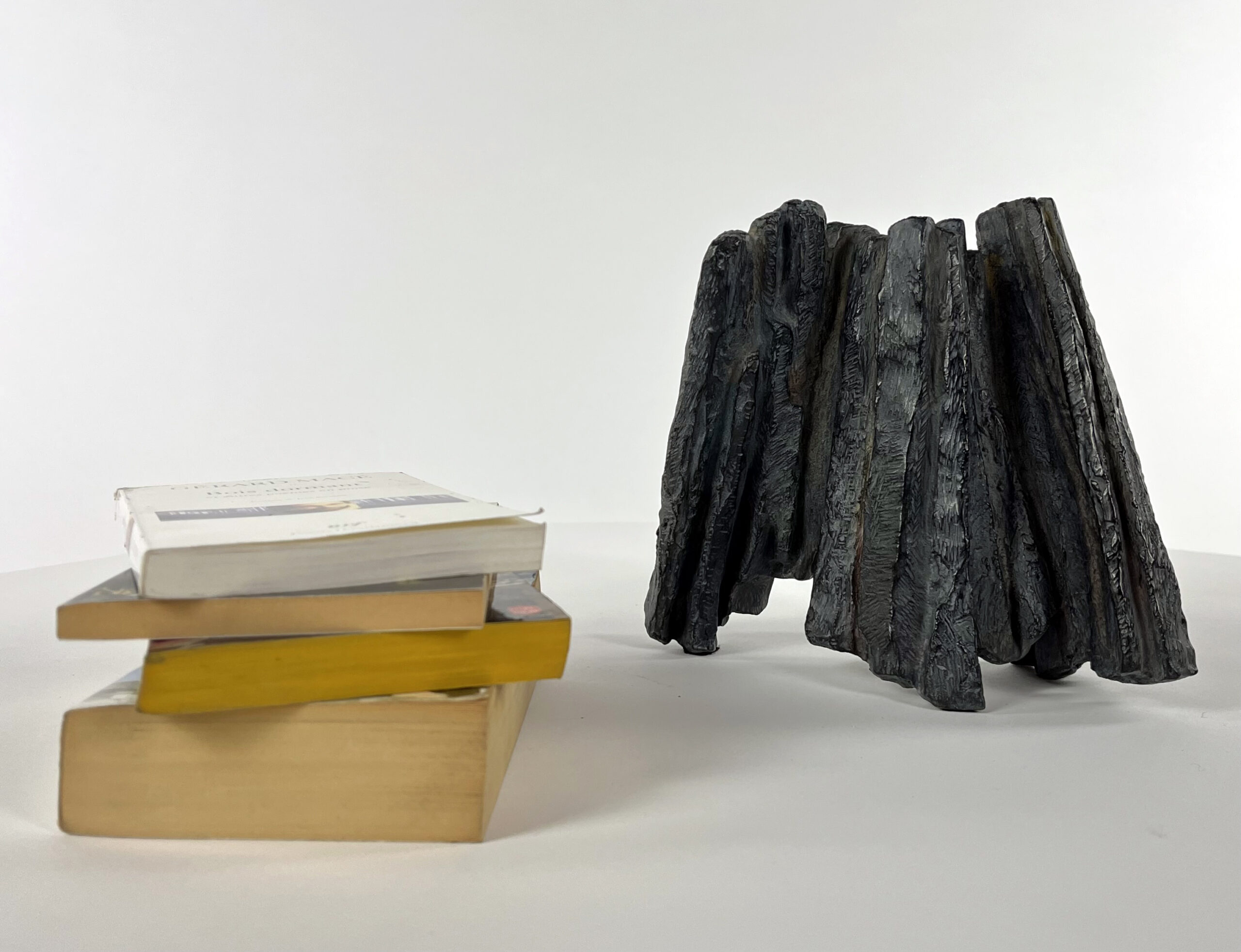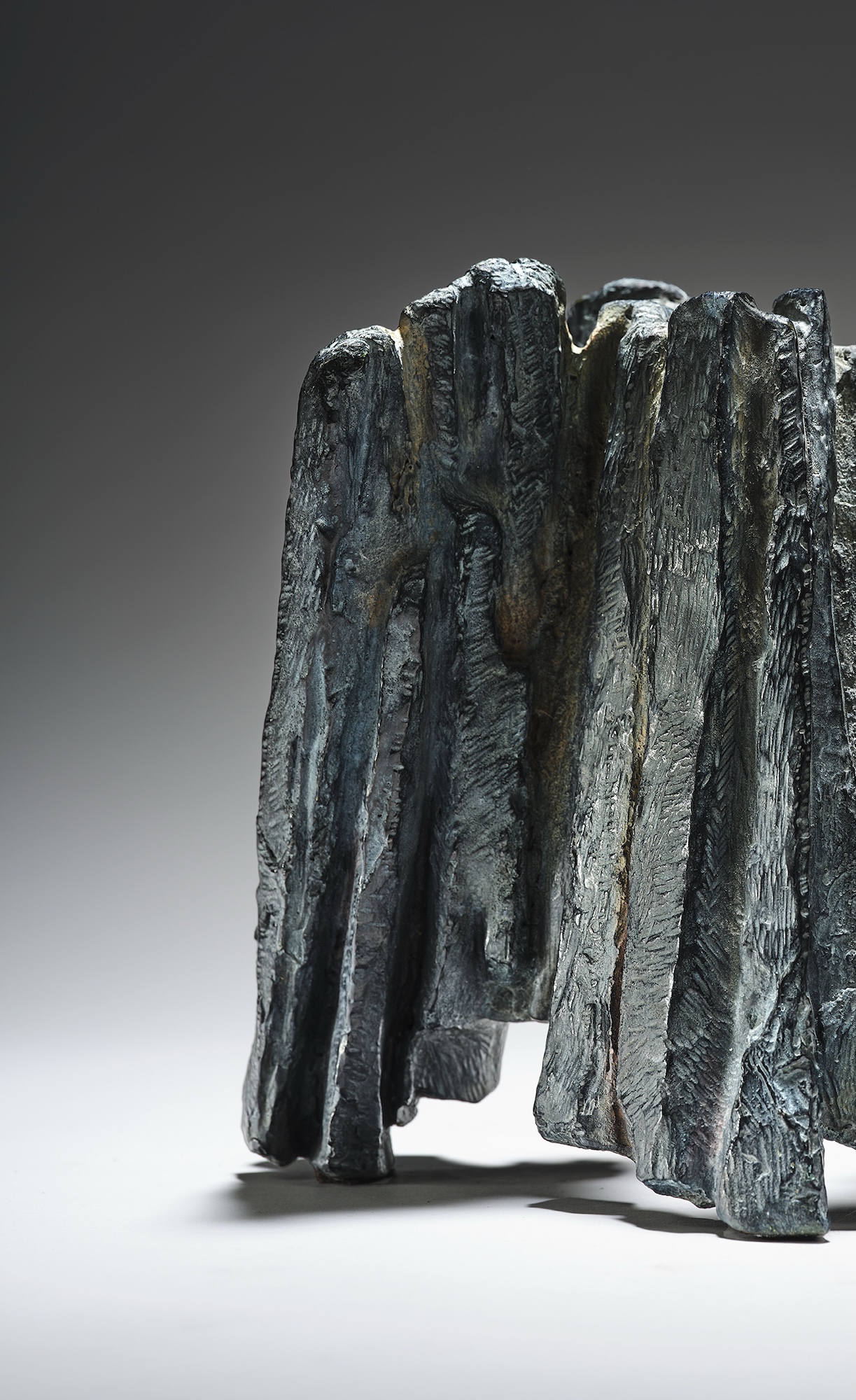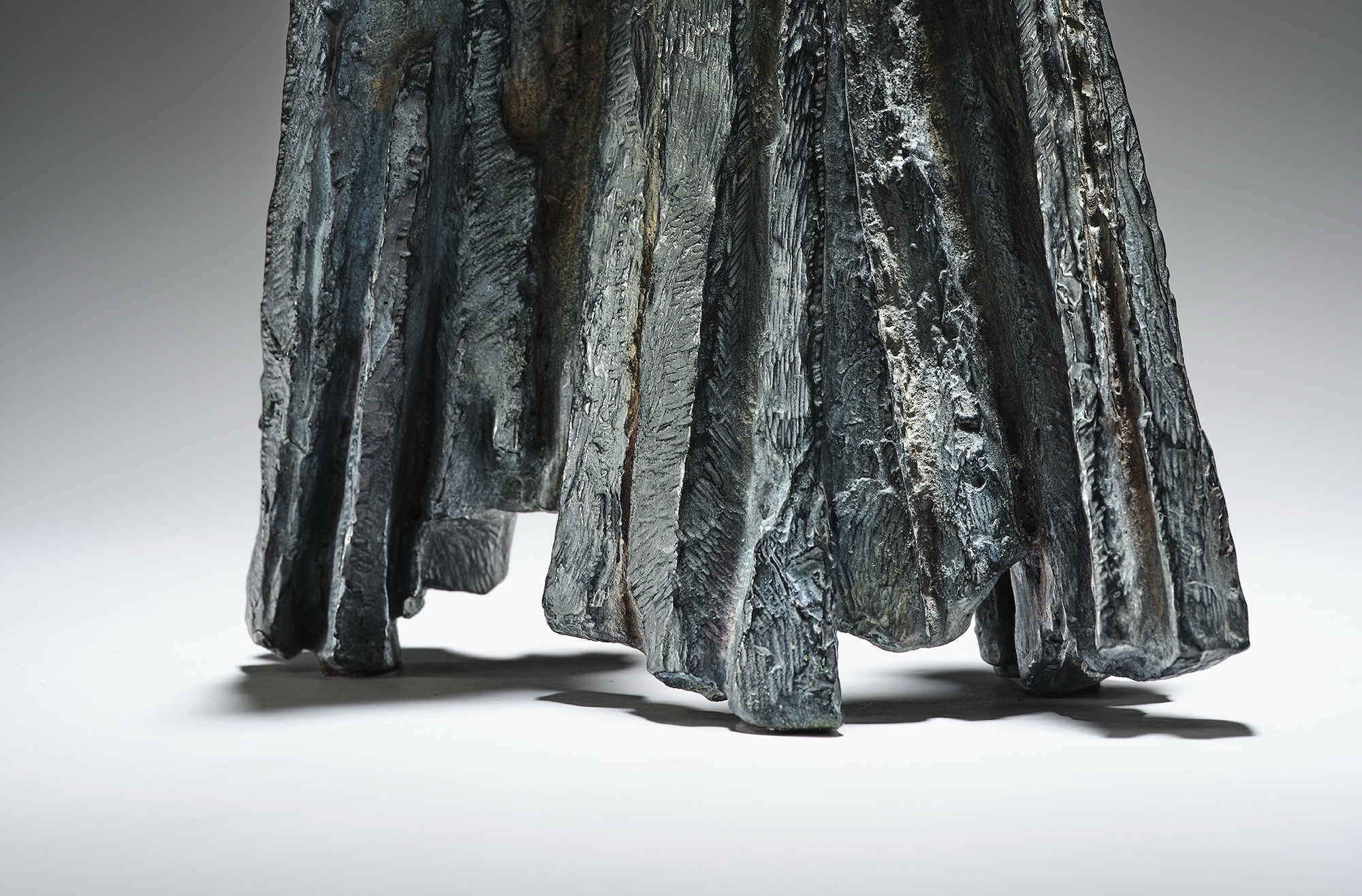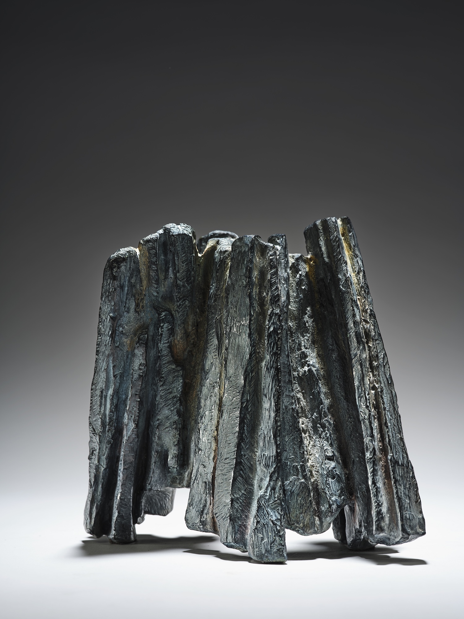 This artwork offers up a harmonious mixture of forms that seems to float. In working the forms towards the abstract, the artist delivers a dynamic impulse to the artwork’s material. By also choreographing together the used and void spaces, she draws out of her abstract sculptures an almost musical rhythm.