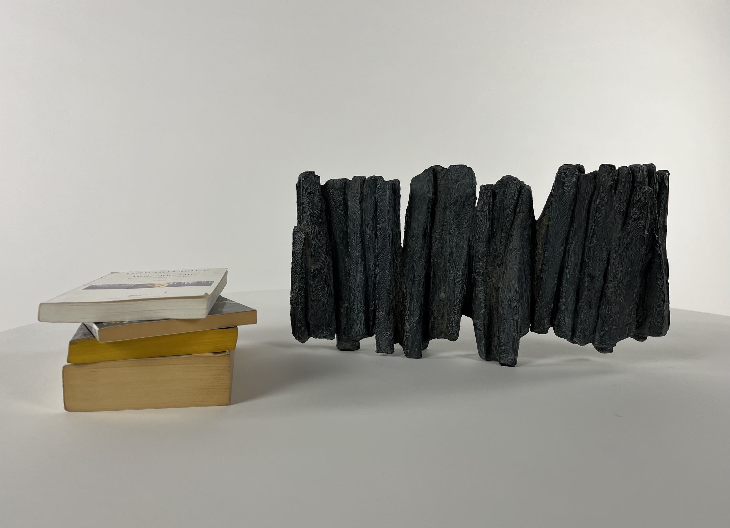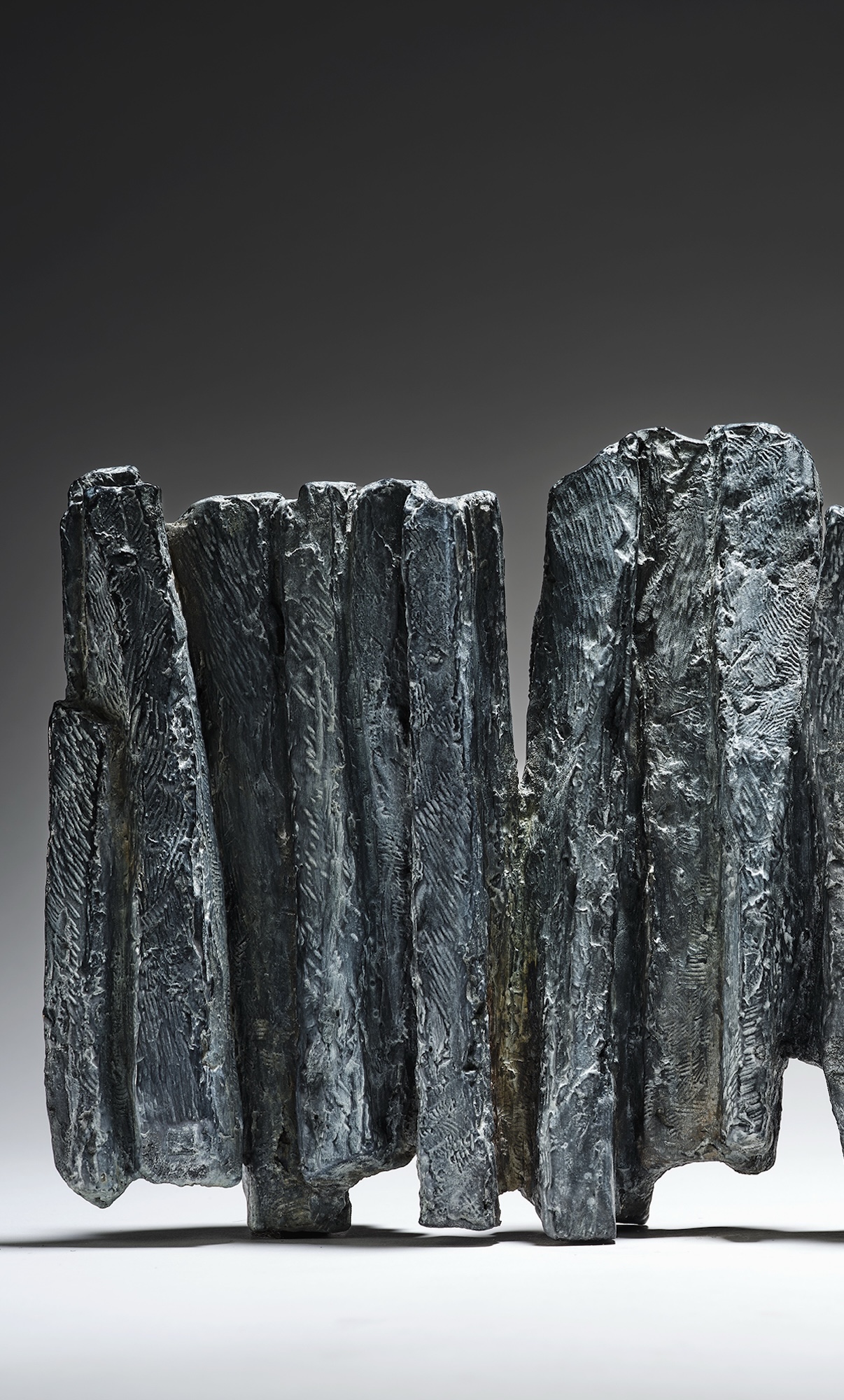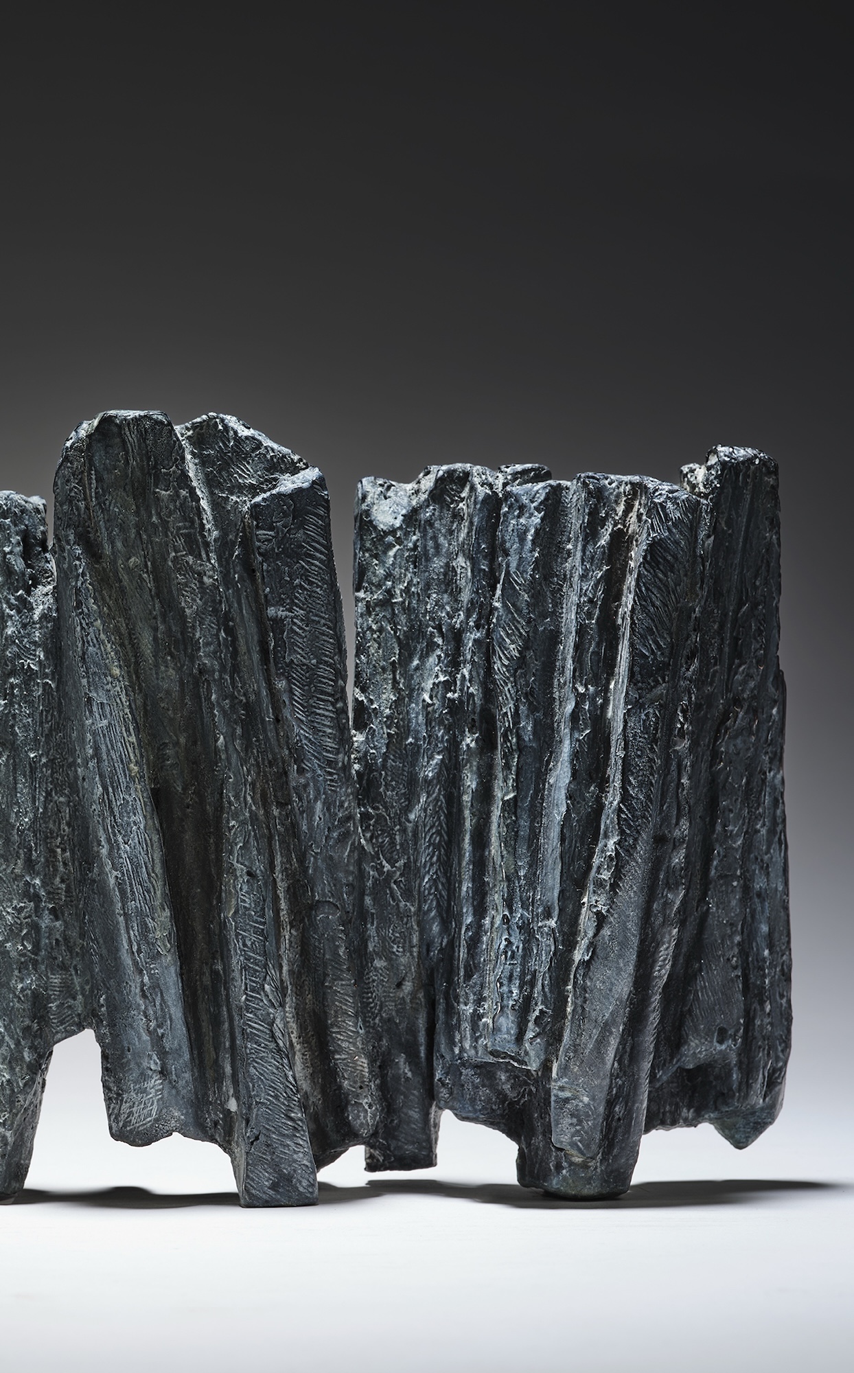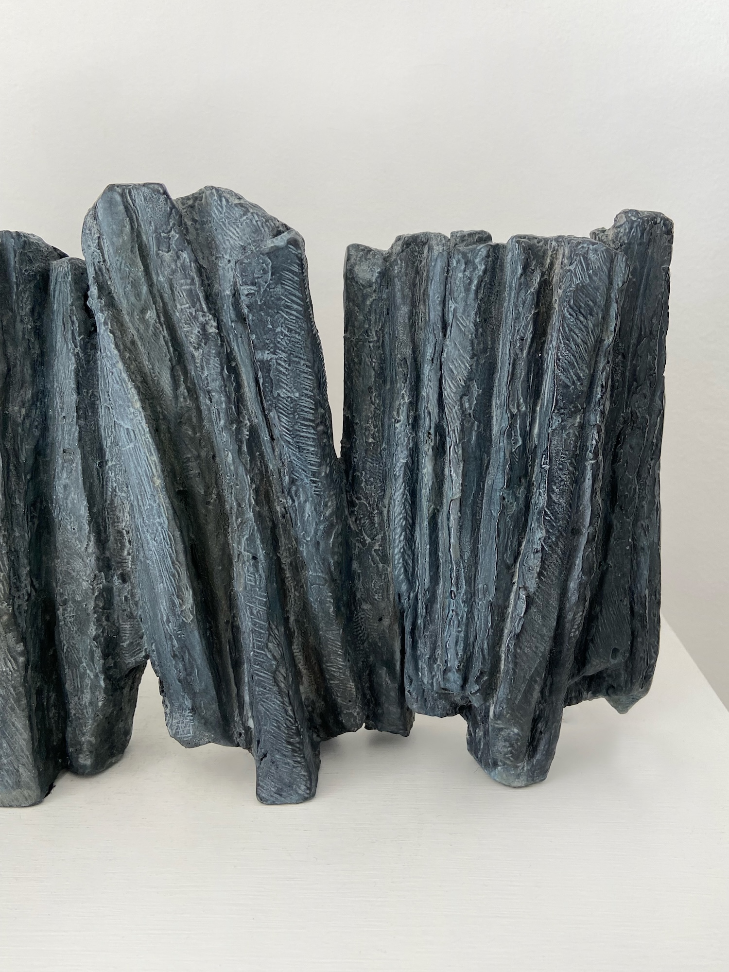 This artwork offers up a harmonious mixture of forms that seems to float. In working the forms towards the abstract, the artist delivers a dynamic impulse to the artwork’s material. By also choreographing together the used and void spaces, she draws out of her abstract sculptures an almost musical rhythm.