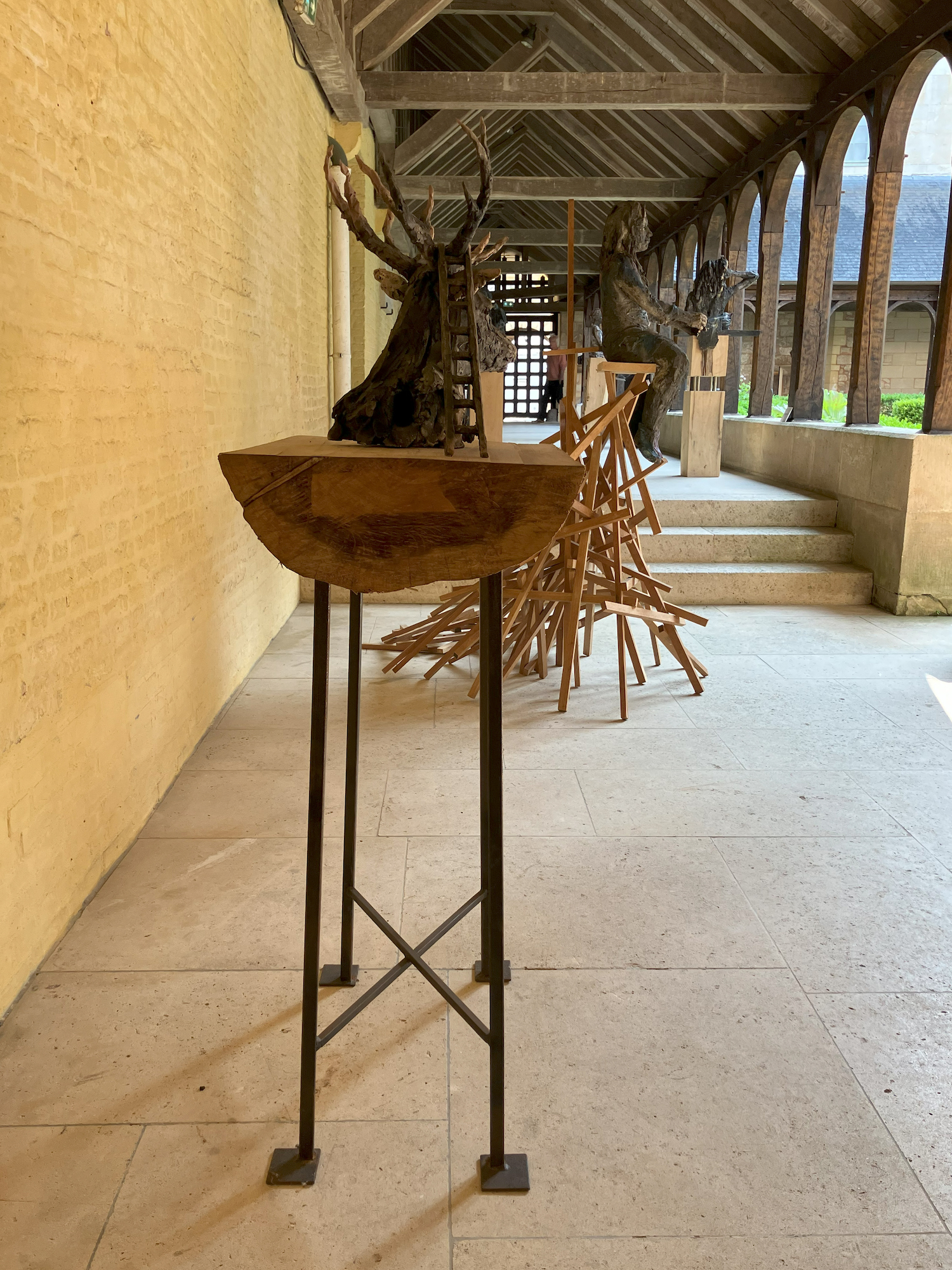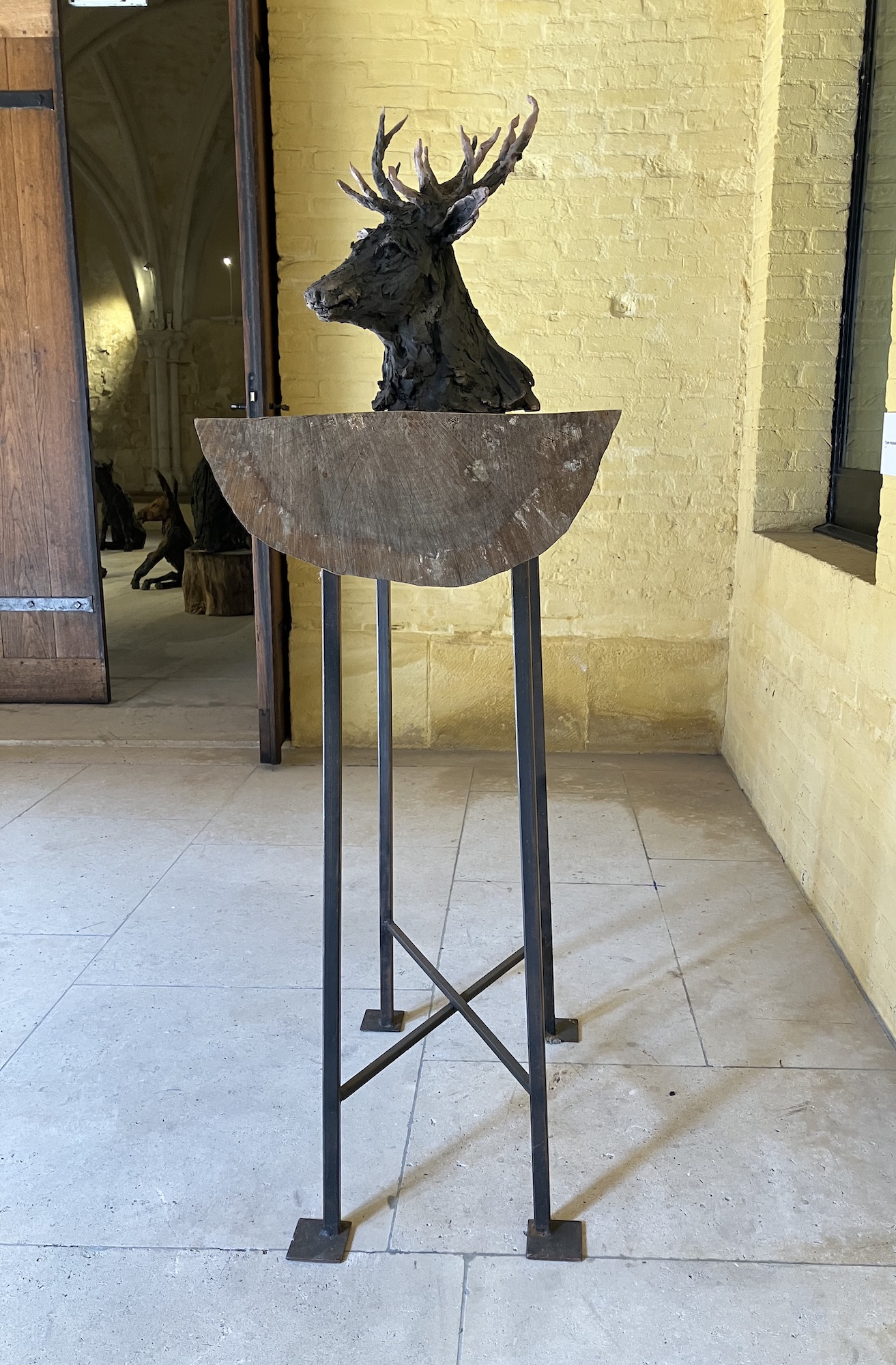 This sculpture has been exhibited at Cécile Raynal’s solo show at Montivilliers Abbey in Normandy (2025). In this historic site, long home to women, nuns and abbesses, the sculptor has chosen to present works combining portraits of women and animals. Cécile Raynal’s sculptures do not seek to seduce, and can even sometimes appear disturbing. Rough, they bear the marks of a passage through matter, through trial, and yet they stand upright, alive. They conjure up a world in which the animal, feminine, instinctive or rebellious side is embraced as an essential force. In the restored Abbey, the exhibition retraces the last fifteen years of the French artist’s singular career (more information on the exhibition here).