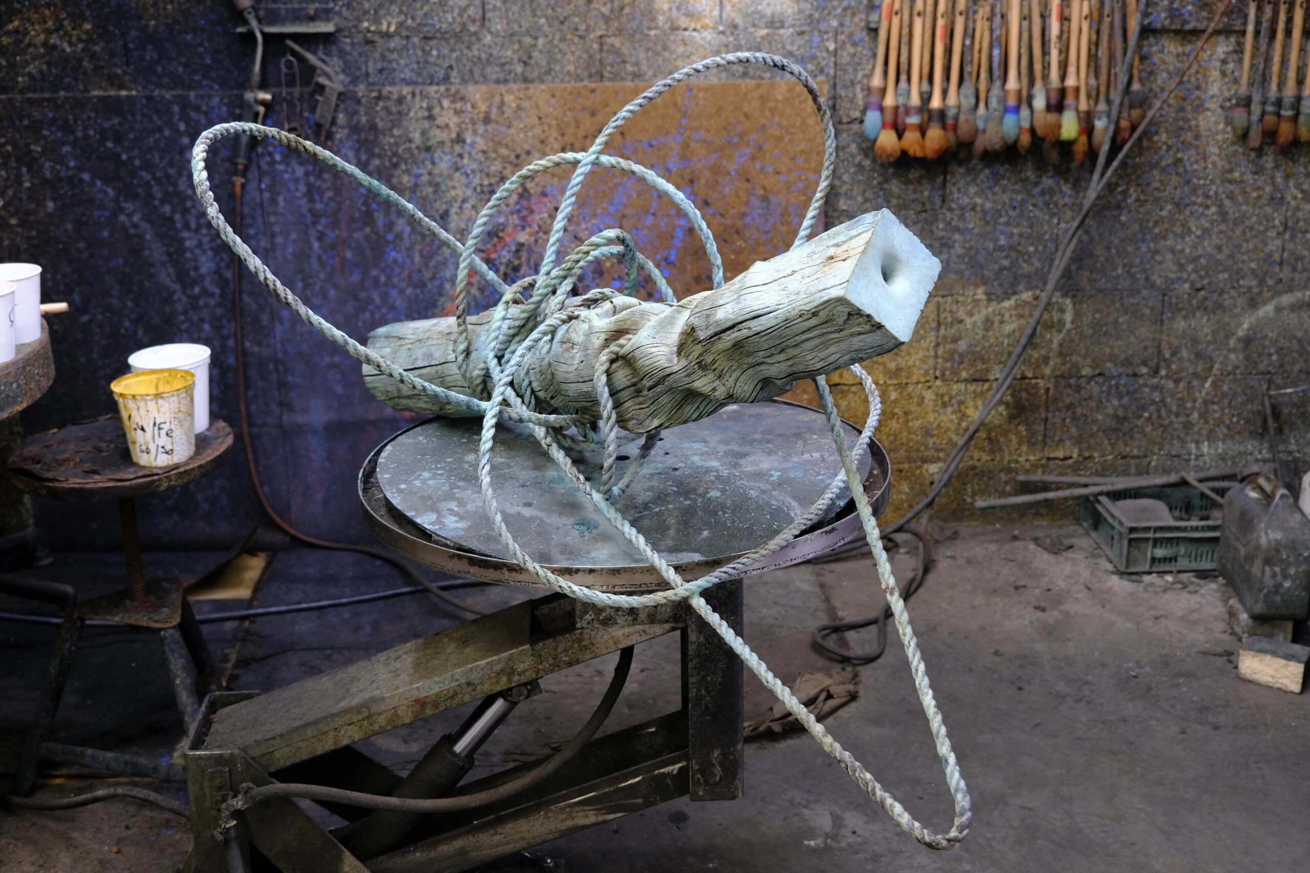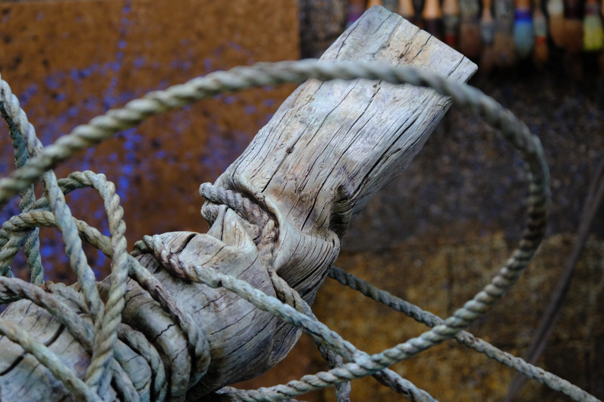 In this bronze sculpture, Romain Langlois very realistically imitates the aspect of wood. The textures are obtained in the casting process and the colours through different patinas. Romain Langlois has denatured this banal object, has reshaped it and given it a new aspect which both intrigues us and transforms our impression of it. The title of this work refers to the geological and chronological term “The Anthropocene”, which designates the present era in which human activity is having a significant impact on our terrestrial ecosystem.