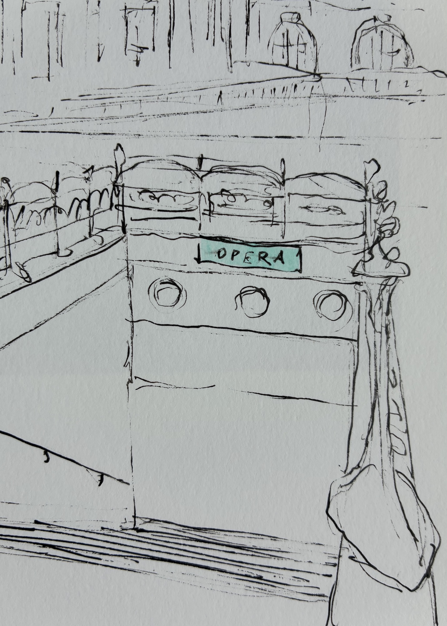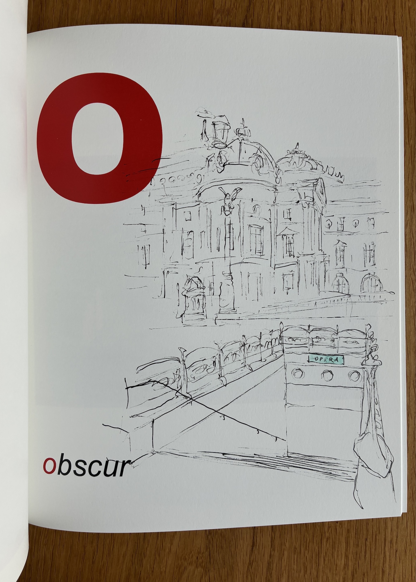 The book can be purchased with an original sketch, made by the artist after an interview with the buyer. The buyer chooses a metro station or other iconic location in Paris, and the artist draws a personalised sketch of that place on the page corresponding to the letter. For example, in the second photo, you can see a sketch of the Opéra metro station on the page dedicated to the letter O.
