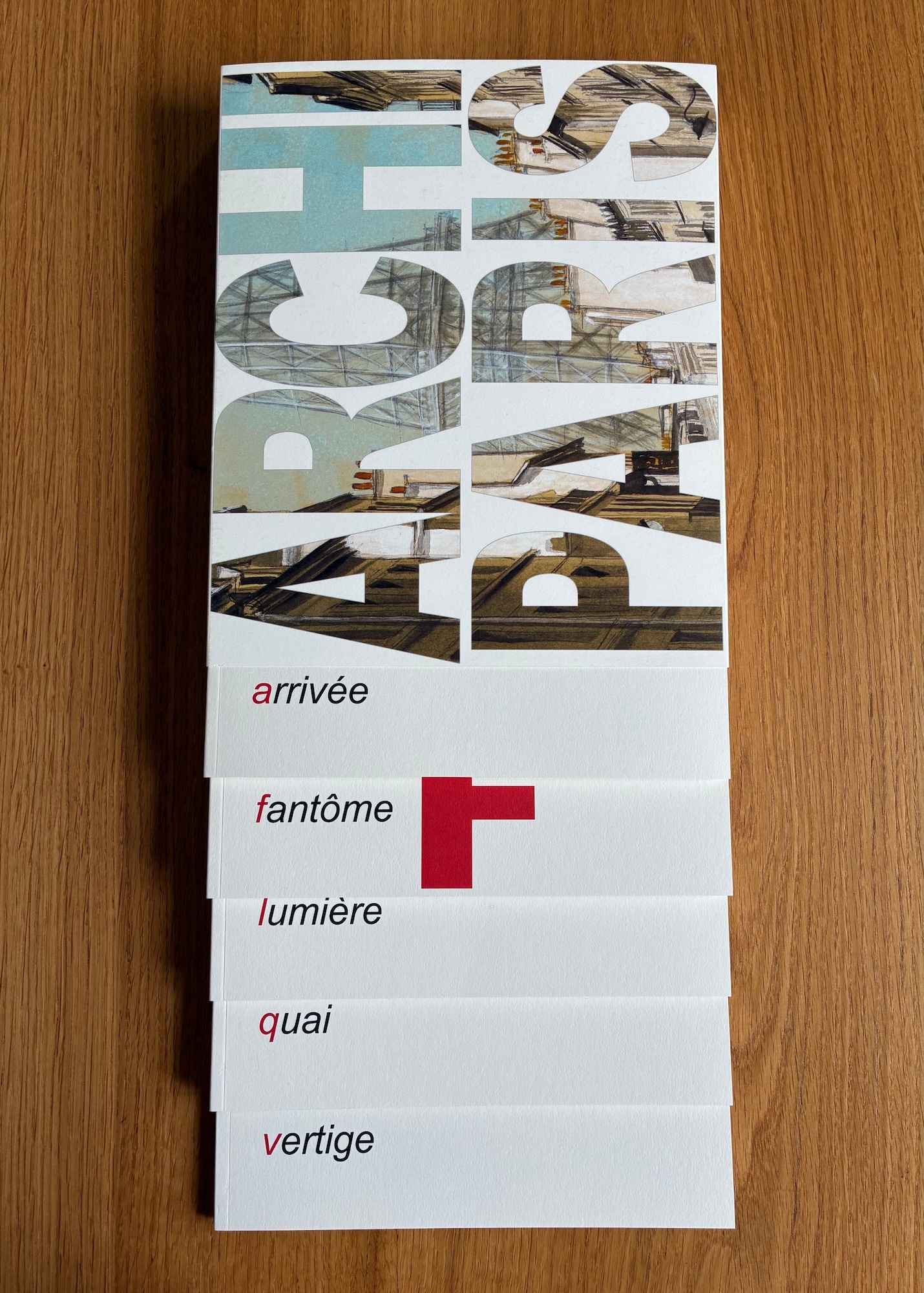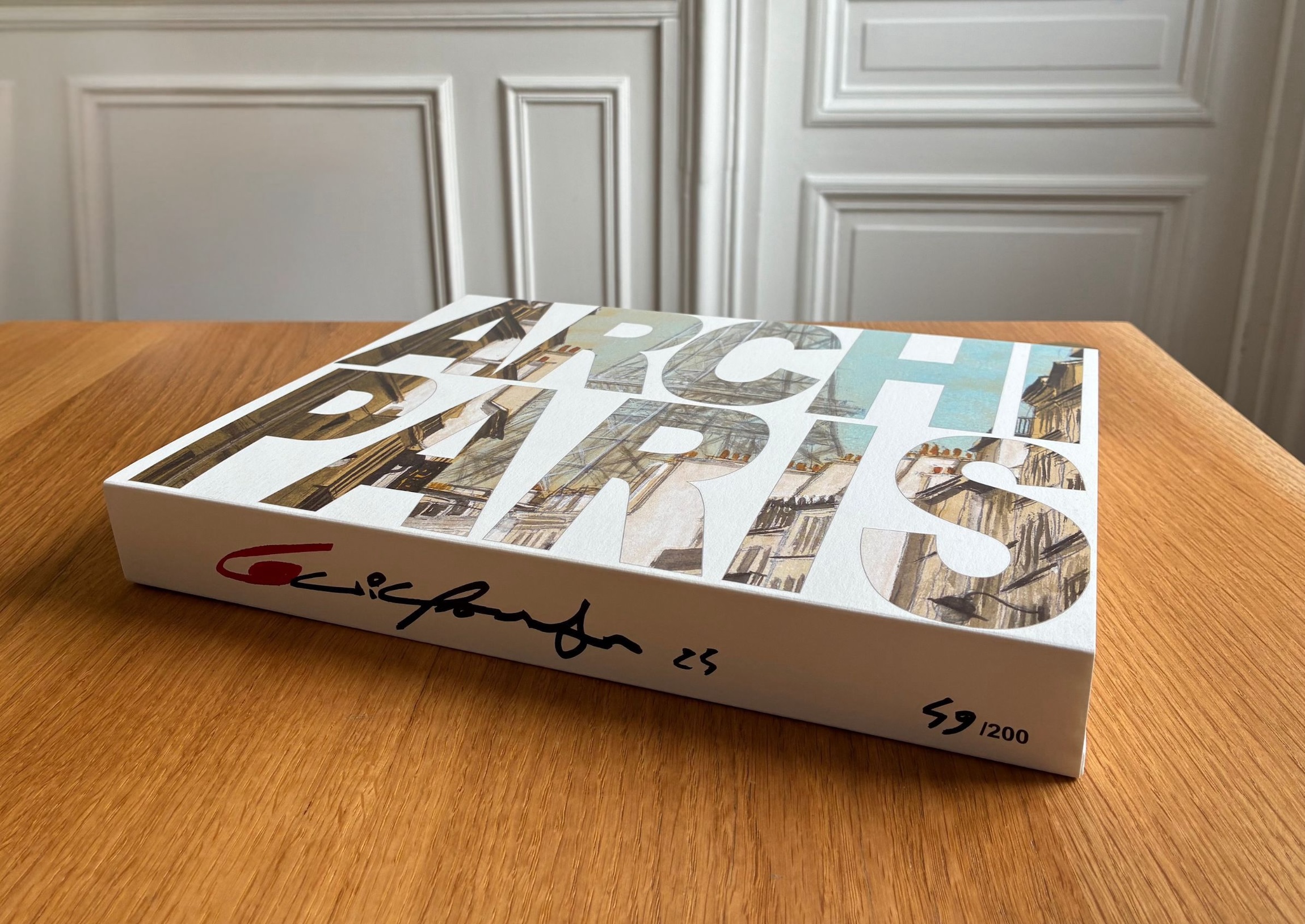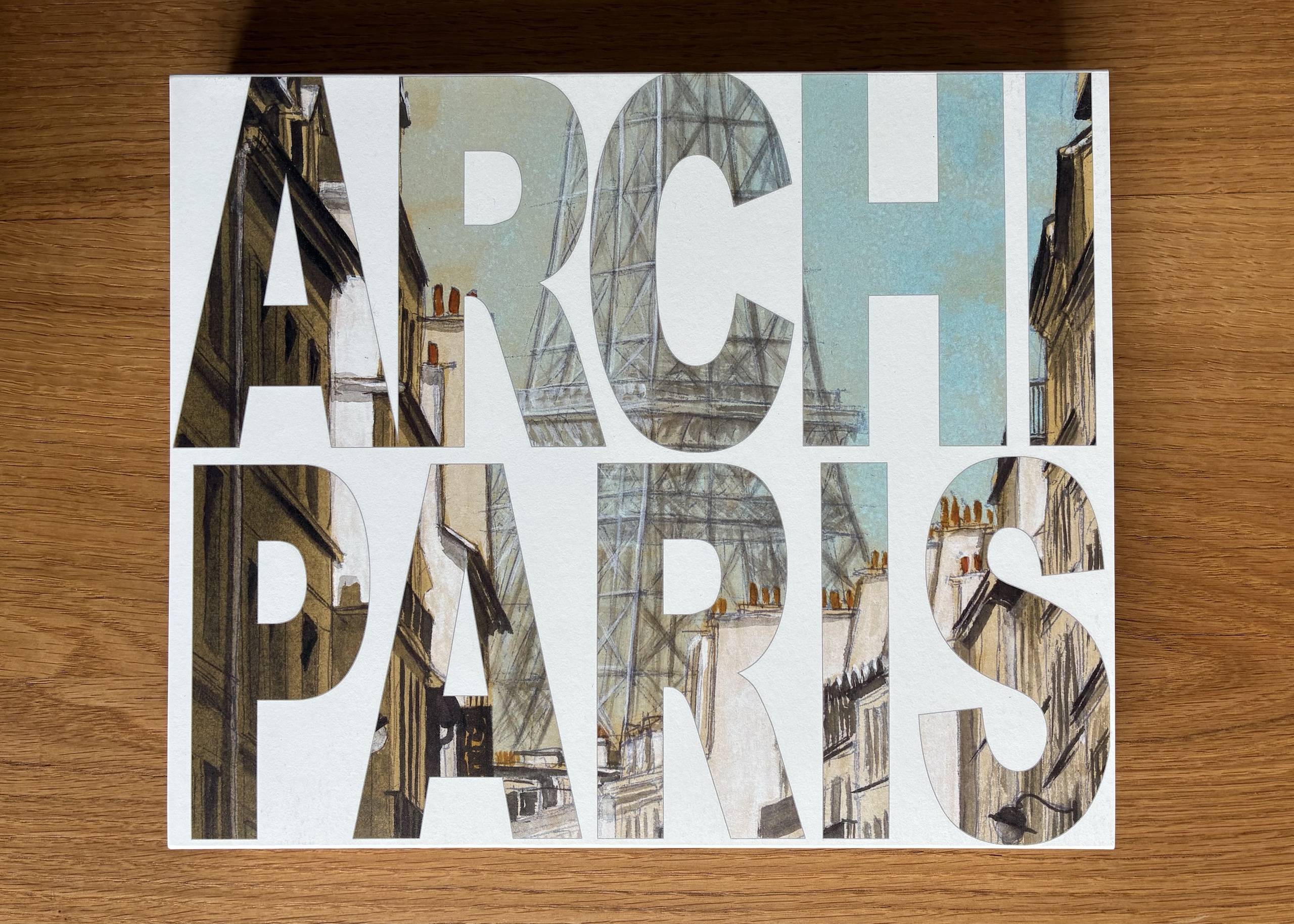 ArchiParis is a limited-edition book by artist Guillaume Chansarel. Published in 2024 by Imprimeries Cultes, the book is made up of five separate volumes in a paper slipcase, and takes the form of an alphabet book.