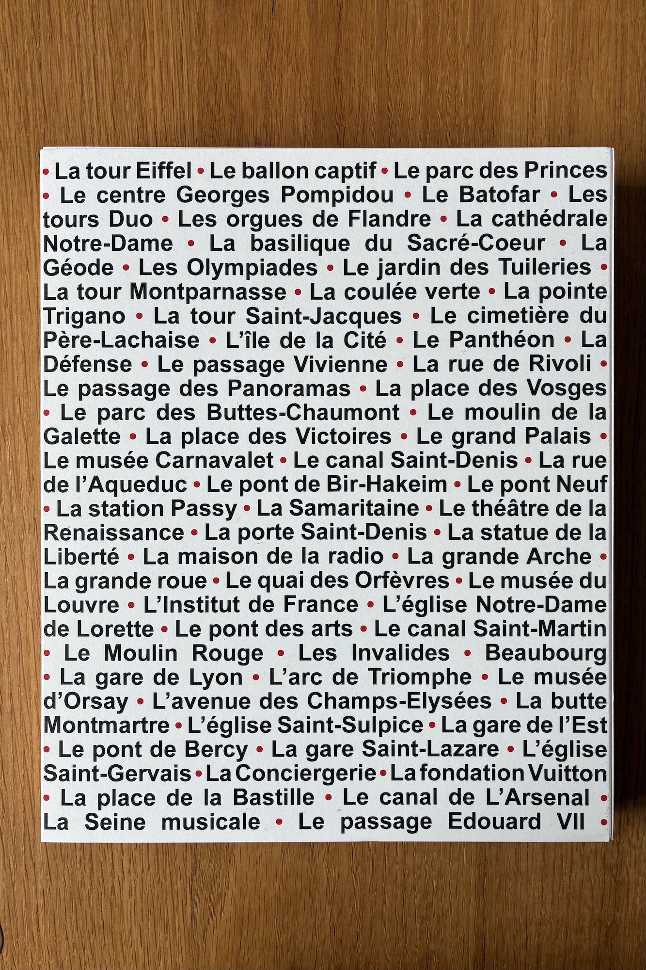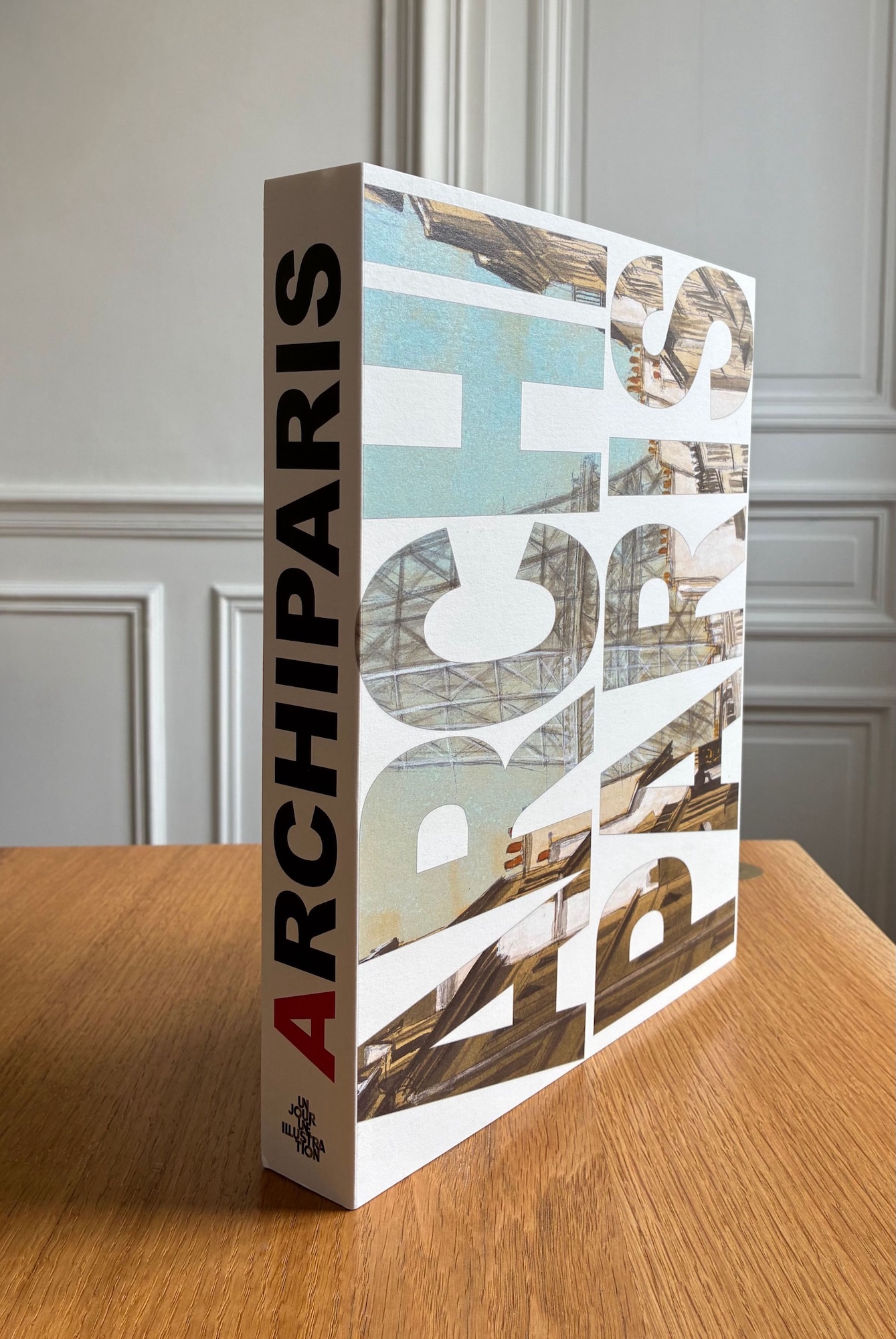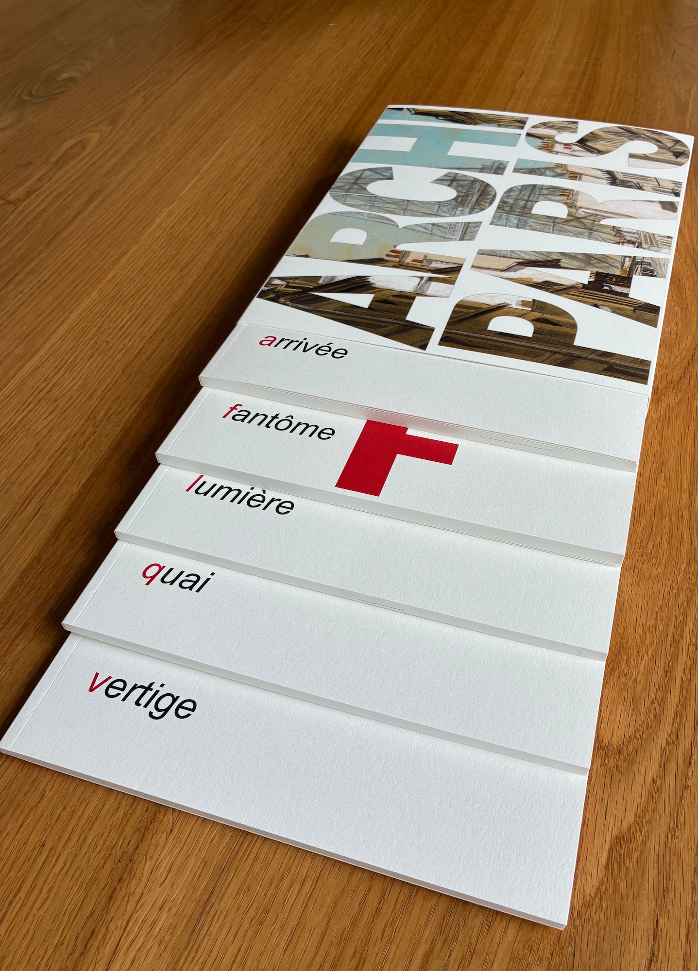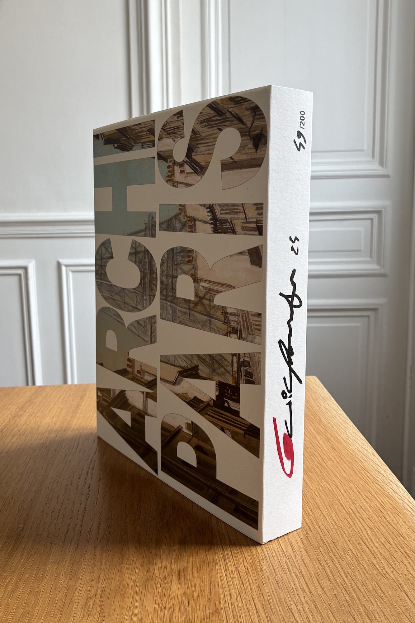 ArchiParis is a limited-edition book by artist Guillaume Chansarel. Published in 2024 by Imprimeries Cultes, the book is made up of five separate volumes in a paper slipcase, and takes the form of an alphabet book.