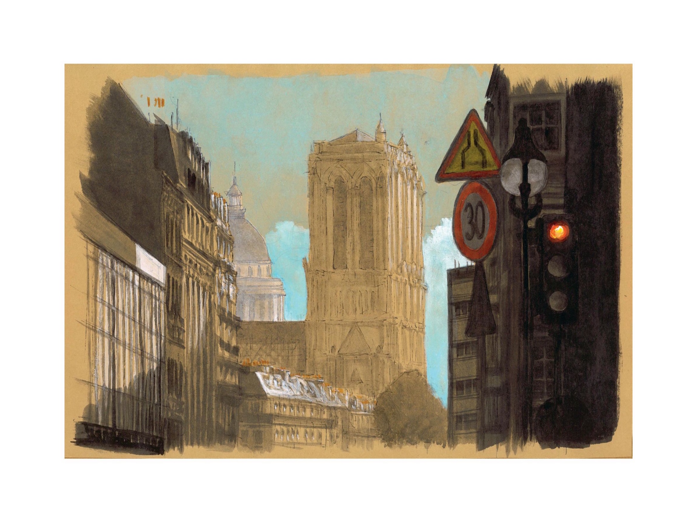 “ArchiParis is a graphic tour of the capital. For a year, depending on my moods and the weather, I crisscrossed the city with a sketchbook under my arm. Following a self-imposed alphabet – A for Arrival, M for Midnight, Z for Zinc, etc. – I tried to transcribe Paris as I felt it. This constraint was necessary in order to avoid clichés, and to take a fresh look at the 20 arrondissements. As a result, in these 104 drawings of Paris, the atmospheres, lights and perspectives often take precedence over the places themselves.” Guillaume Chansarel