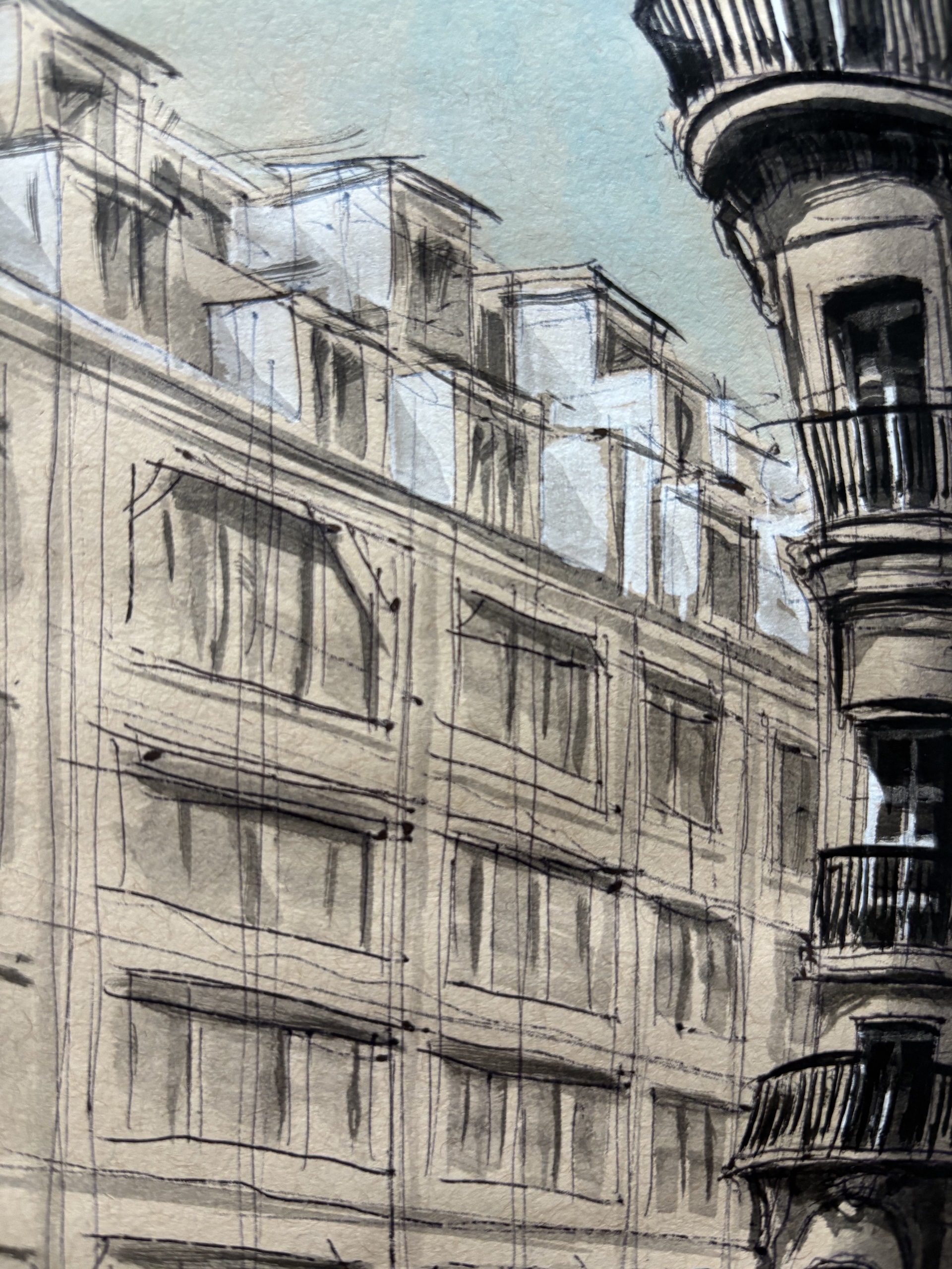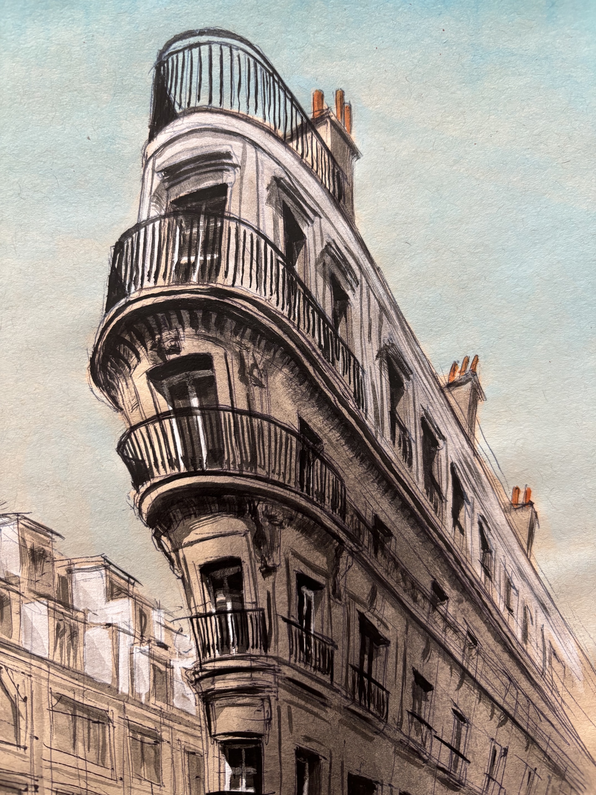 This drawing is part of a larger artistic project dedicated to Paris, in which the artist created 104 drawings depicting various locations across the city. These original works are reproduced in an artist book titled ArchiParis, presented in five volumes. Each volume explores a selection of alphabet letters, with each letter linked to a keyword that serves as inspiration for the drawings. For instance, the letter A corresponds to arrival, representing different ways of entering Paris—by plane, boat, train, or road. The letter G is associated with gallery, featuring tunnels and passageways. This particular drawing of the Place des Victoires falls under the letter I, linked to the word indéboulonnable (Unmovable in French). ArchiParis takes the reader on a Parisian stroll, a singular urban exploration through the eyes of the artist. This series of drawings aims to present and reveal Paris from a distinctive perspective: that of a true Parisian.