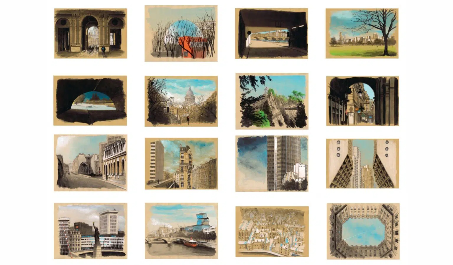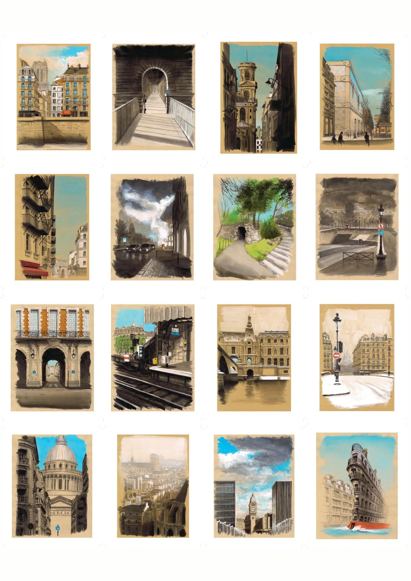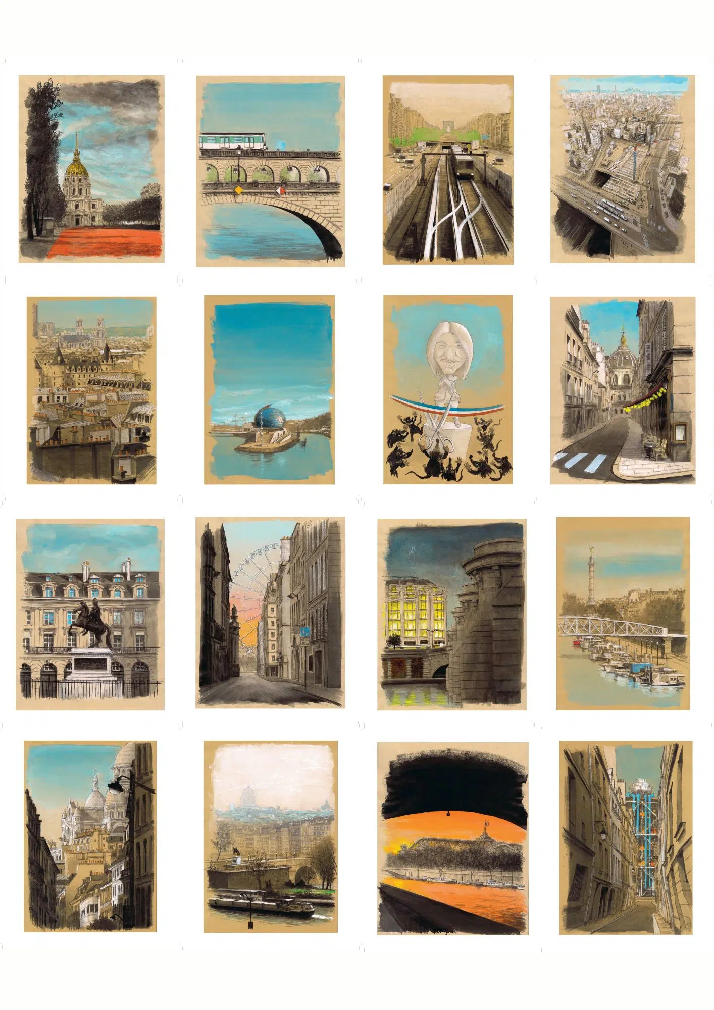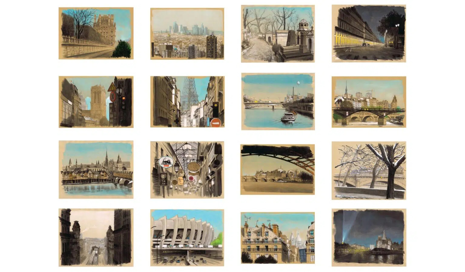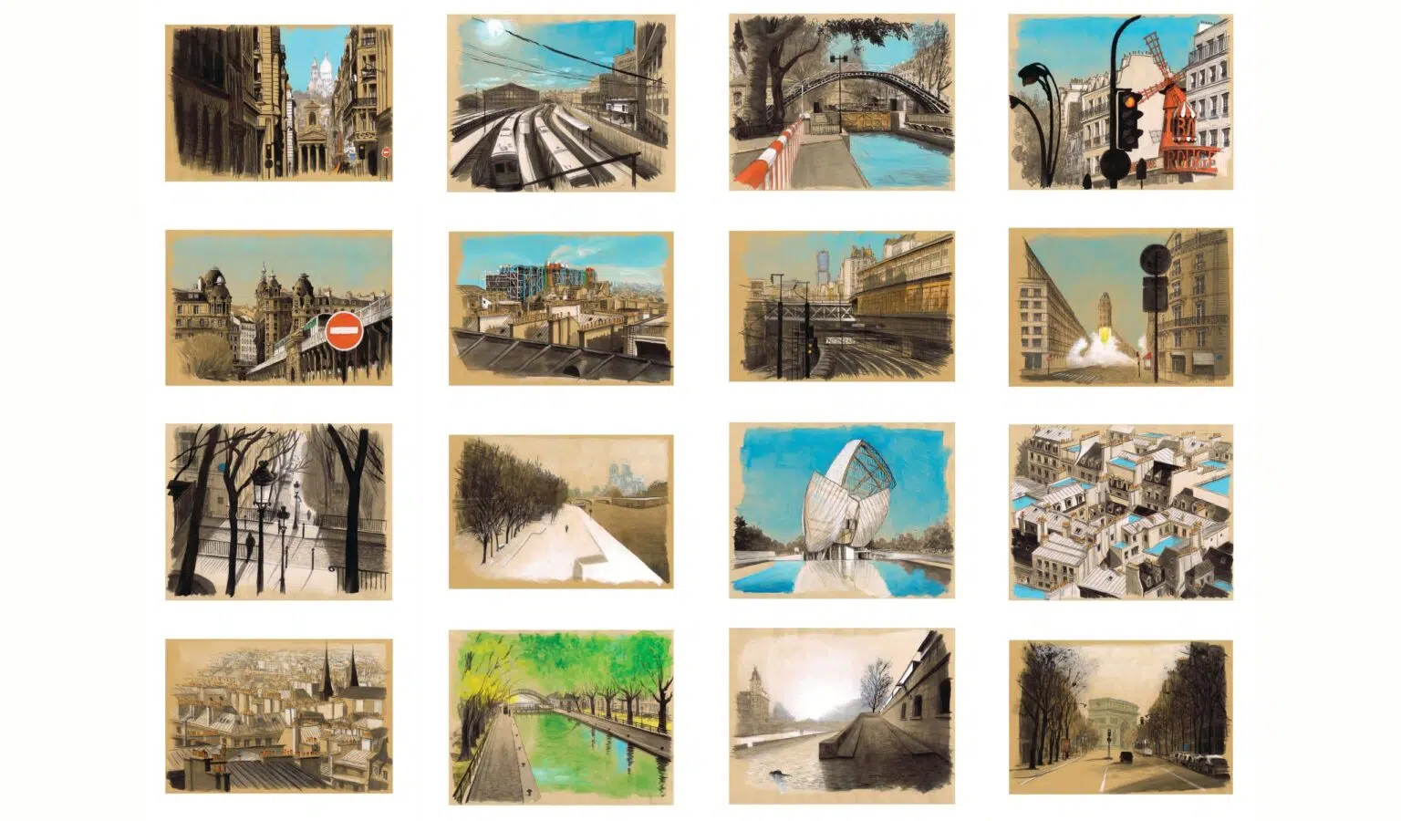“ArchiParis is a graphic tour of the capital. For a year, depending on my moods and the weather, I crisscrossed the city with a sketchbook under my arm. Following a self-imposed alphabet – A for Arrival, M for Midnight, Z for Zinc, etc. – I tried to transcribe Paris as I felt it. This constraint was necessary in order to avoid clichés, and to take a fresh look at the 20 arrondissements. As a result, in these 104 drawings of Paris, the atmospheres, lights and perspectives often take precedence over the places themselves.” Guillaume Chansarel
