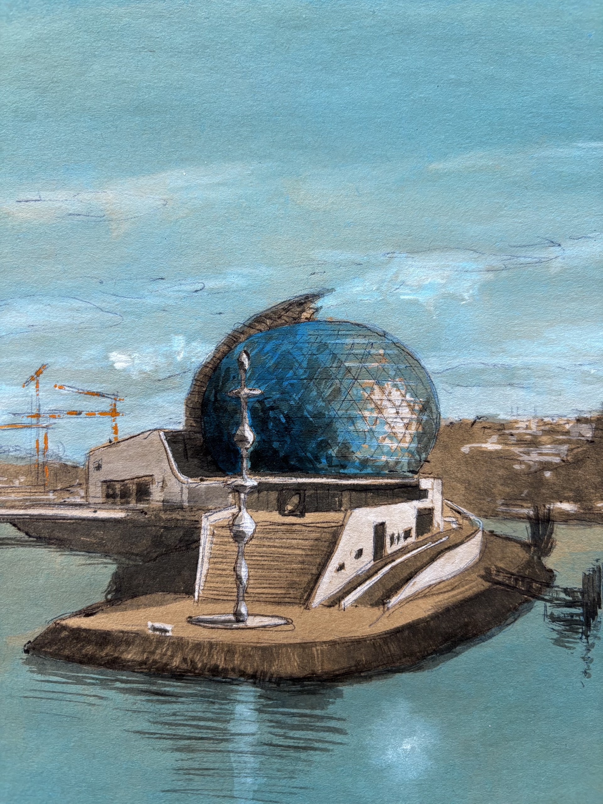 ArchiParis – La Seine Musicale is a drawing by contemporary French artist Guillaume Chansarel. This drawing depicts La Seine Musicale; a music and performing arts center located on Île Seguin, an island on the Seine river in the western suburbs of Paris, France.