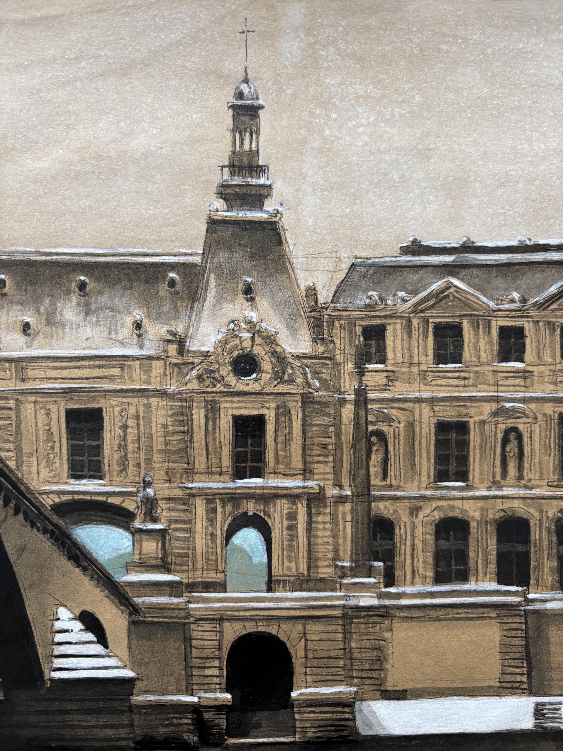 ArchiParis – Quai du Louvre is a drawing by contemporary French artist Guillaume Chansarel. This drawing depicts Quai du Louvre; a quay along the Seine in Paris, in the 1st arrondissement. This view is portrayed with meticulousness and finesse, highlighting the view along the riverbank running alongside the Louvre.