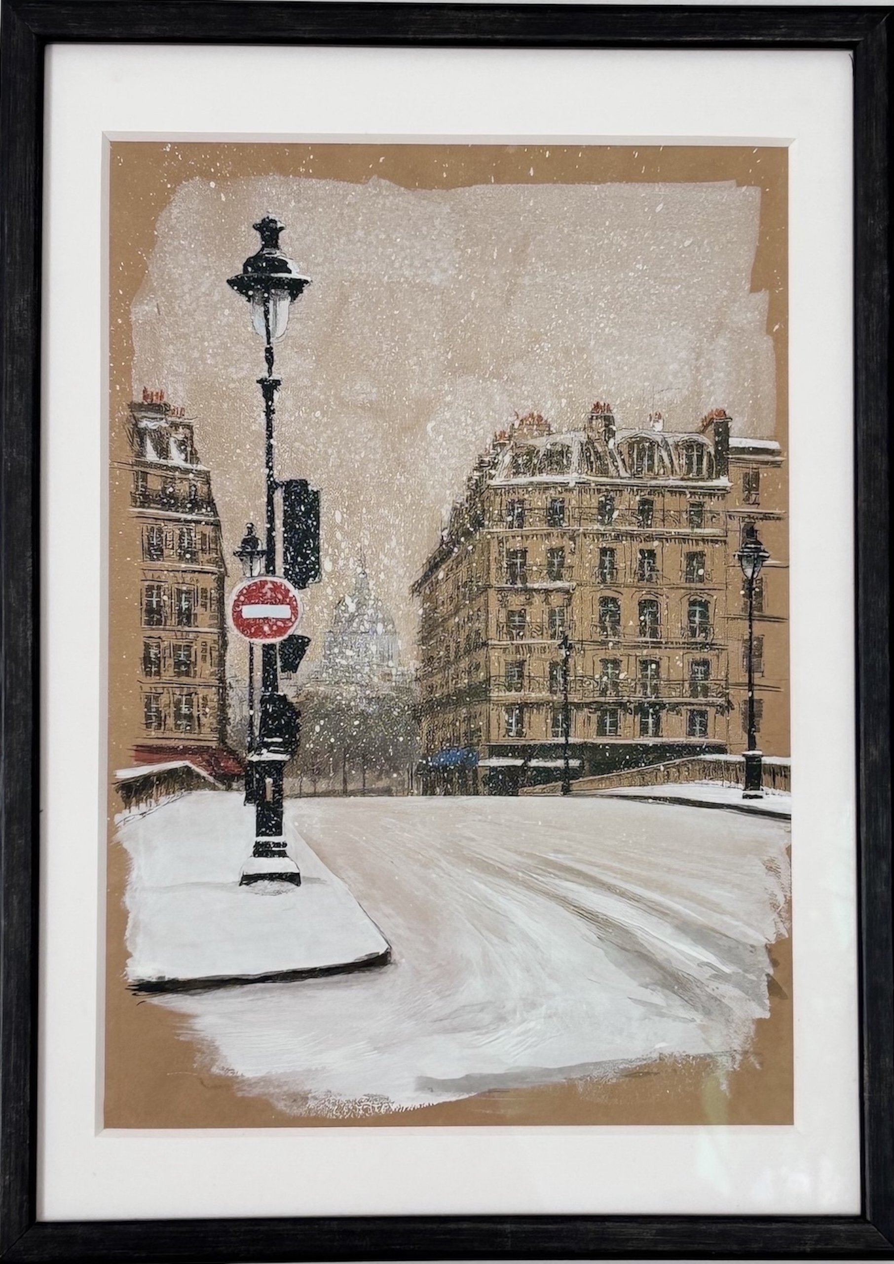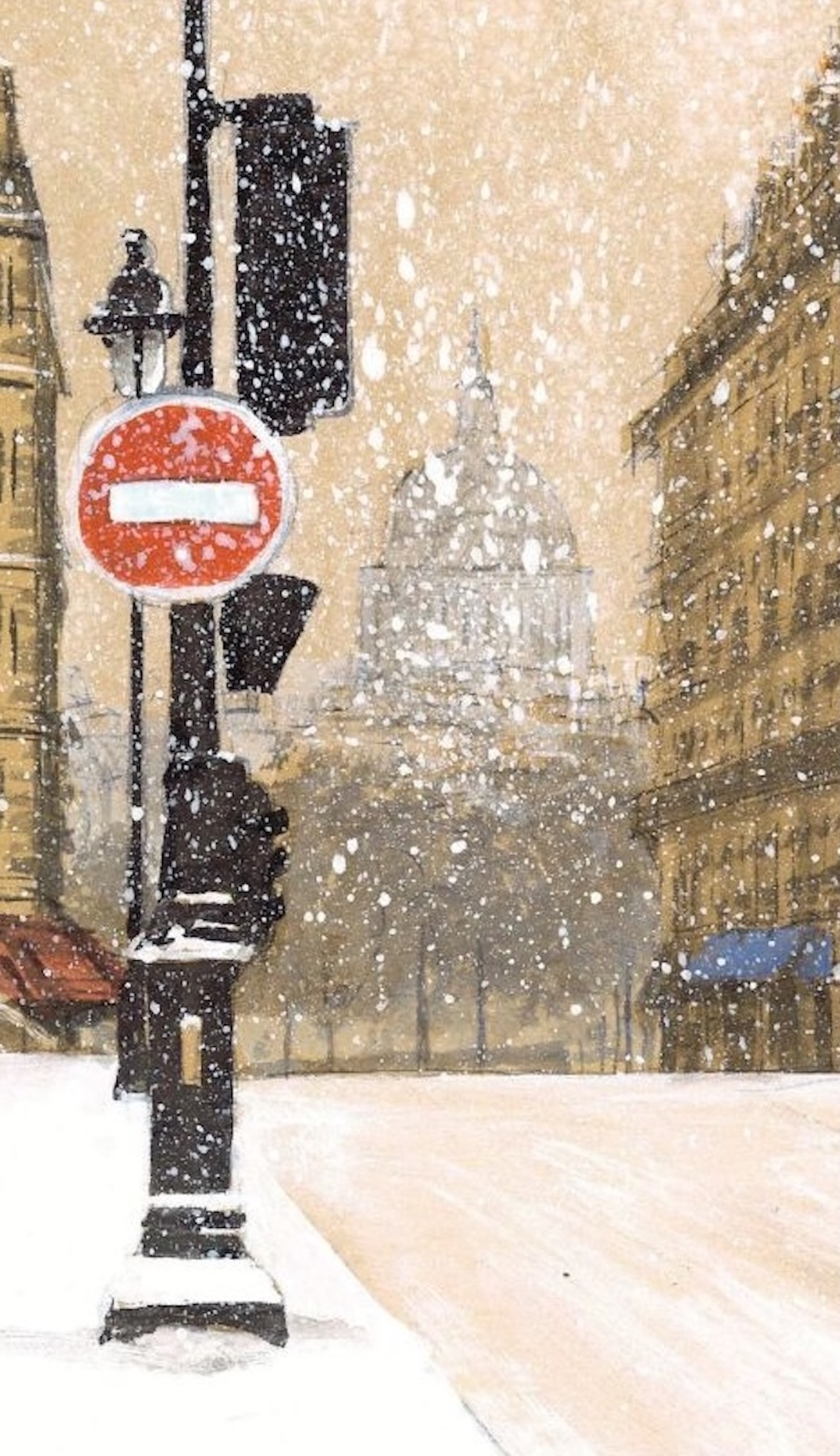 ArchiParis – Red 1 ( Pantheon) is a drawing by contemporary French artist Guillaume Chansarel. This drawing depicts a snowy glimpse of a street in Paris, with the Pantheon looming in the background. This view is portrayed with meticulousness and finesse, highlighting the view along the snow-covered road leading up to the monument.