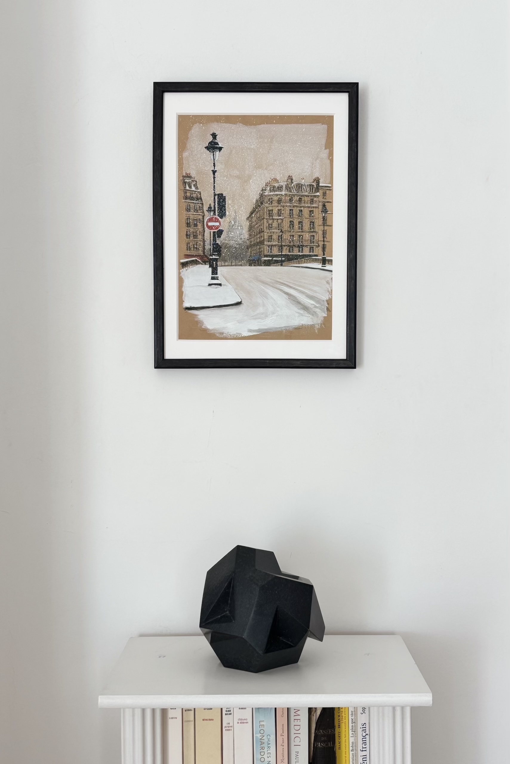 This drawing is part of a larger artistic project dedicated to Paris, in which the artist created 104 drawings depicting various locations across the city. These original works are reproduced in an artist book titled ArchiParis, presented in five volumes. Each volume explores a selection of alphabet letters, with each letter linked to a keyword that serves as inspiration for the drawings. For instance, the letter A corresponds to arrival, representing different ways of entering Paris—by plane, boat, train, or road. The letter G is associated with gallery, featuring tunnels and passageways. This particular drawing of the Place des Victoires falls under the letter I, linked to the word indéboulonnable (Unmovable in French). ArchiParis takes the reader on a Parisian stroll, a singular urban exploration through the eyes of the artist. This series of drawings aims to present and reveal Paris from a distinctive perspective: that of a true Parisian.