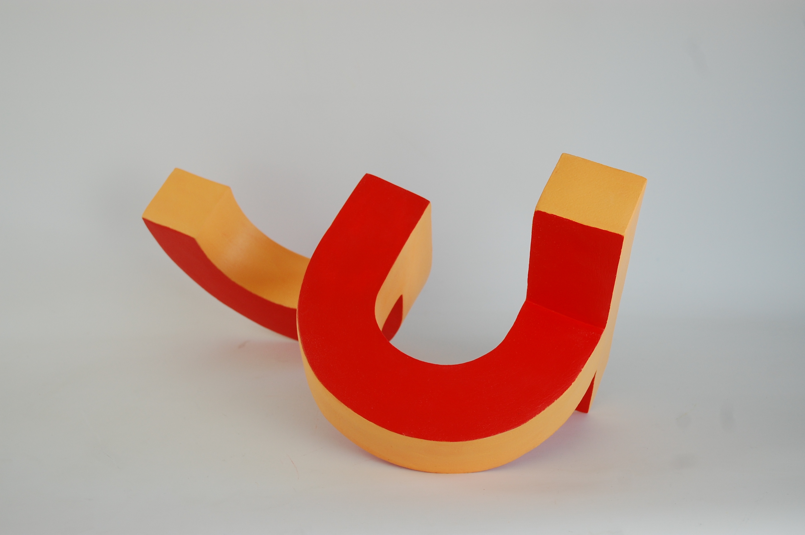 Assemblage is a fired clay sculpture by British artist Patricia Volk. A two-pieces sculpture made of curved red and orange shapes, placed together in a balanced arrangement.