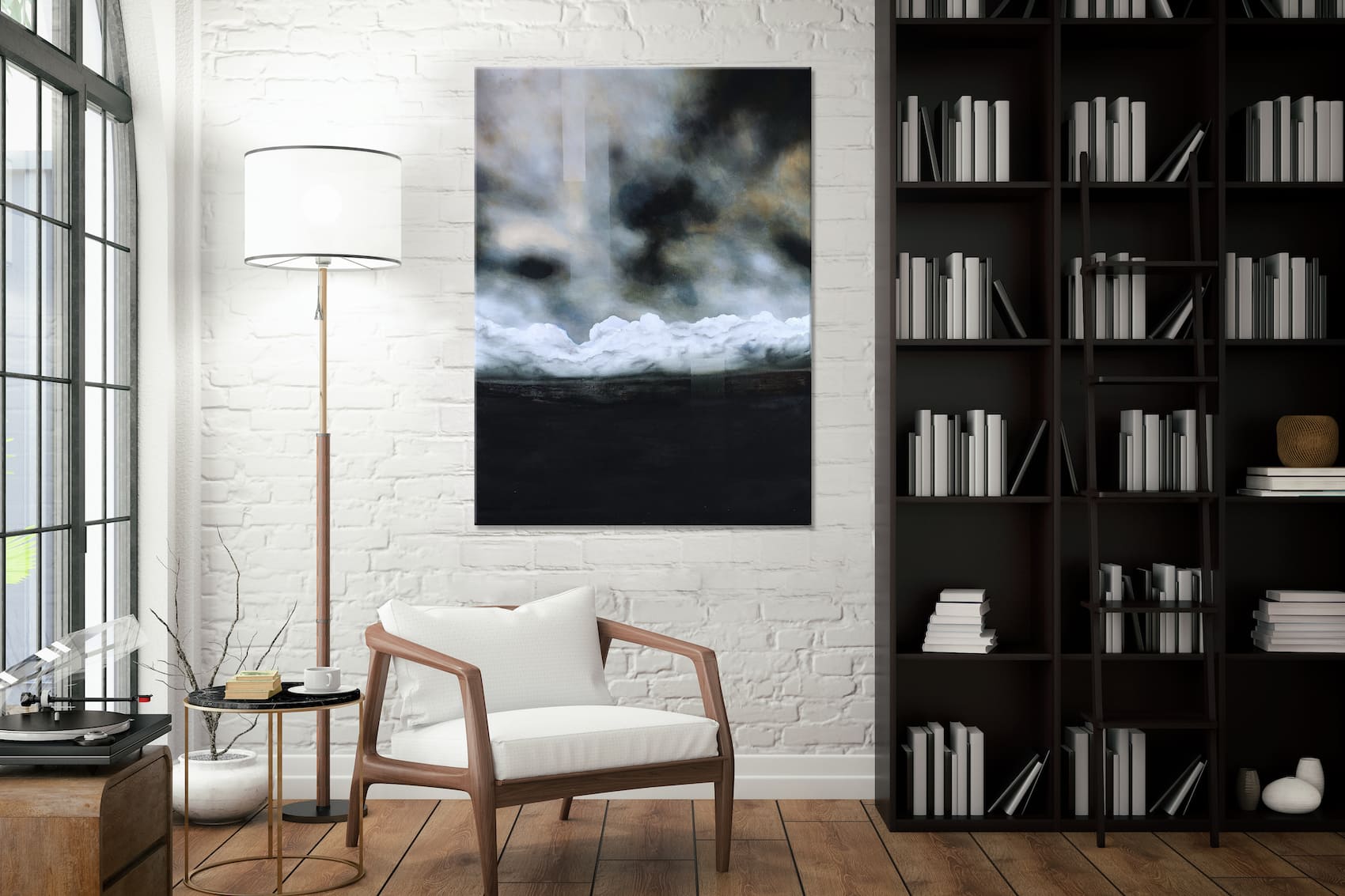 Joachim van der Vlugt art is strongly inspired by the classic Dutch masters. He intentionally uses a reduced dark colour palette: blacks and whites, browns, beiges and blues; the artist works the painting by building it up with several layers. The artist likes to work with light, with its’ subtlety and intensity. He combines into his artwork both shapes and geometric lines.