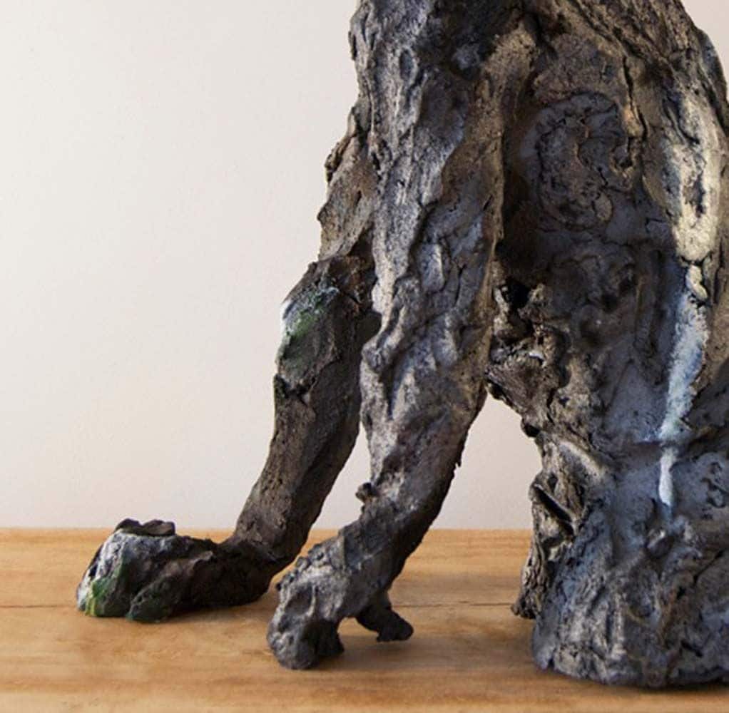 Description: smoke-fired stoneware sculpture, grey and black. Traces of acrylic paint.