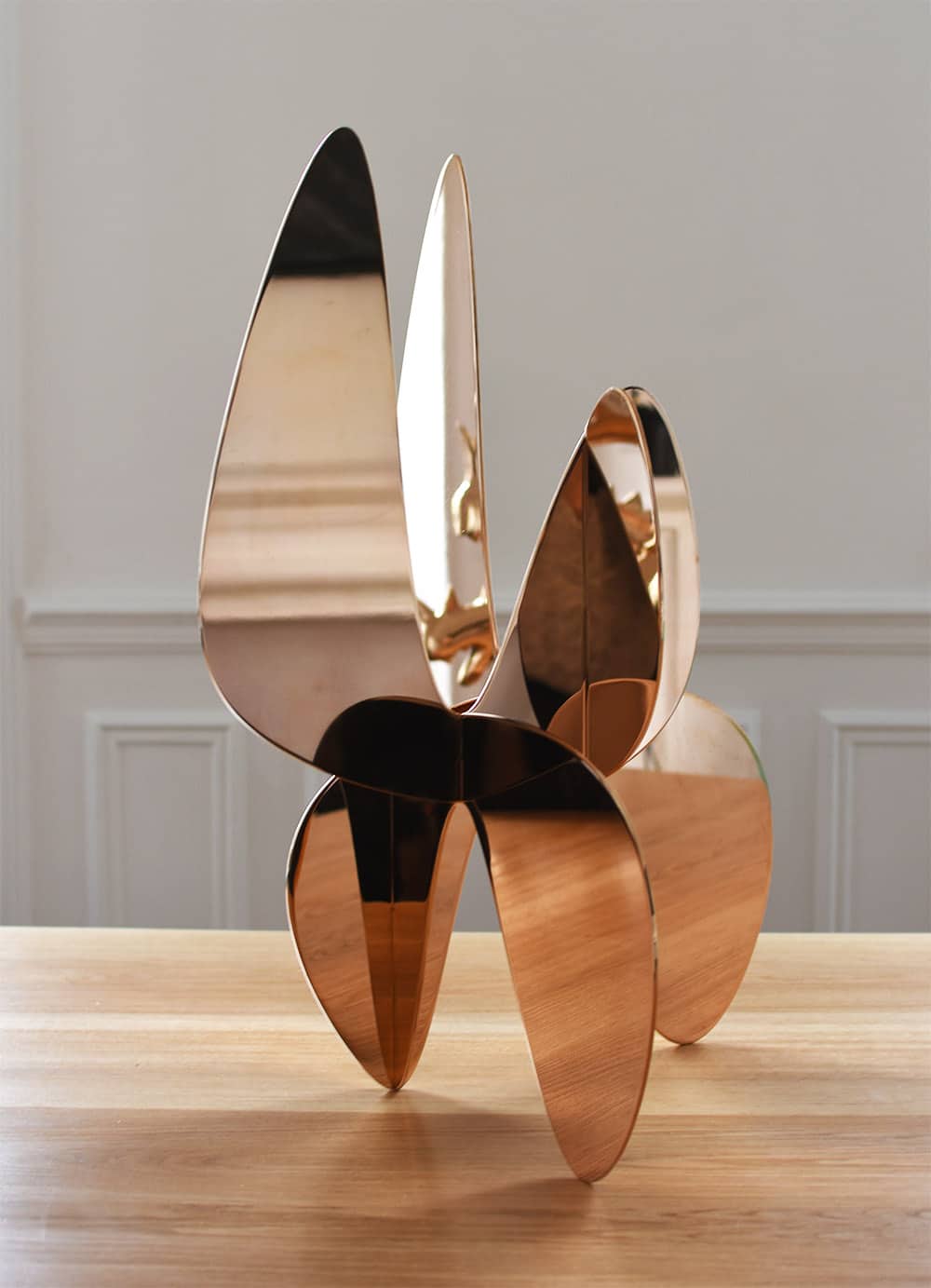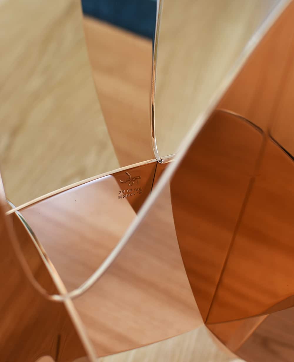 Using bronze allows the artist to investigate numerous aesthetic opportunities. Once polished, the metal becomes reflective, encouraging the viewer to consider the relativity of their viewpoint in relation to the setting. The reflection also creates a vibrant effect which brings the artist’s sculptures into the kinetic tradition of Latin American art.