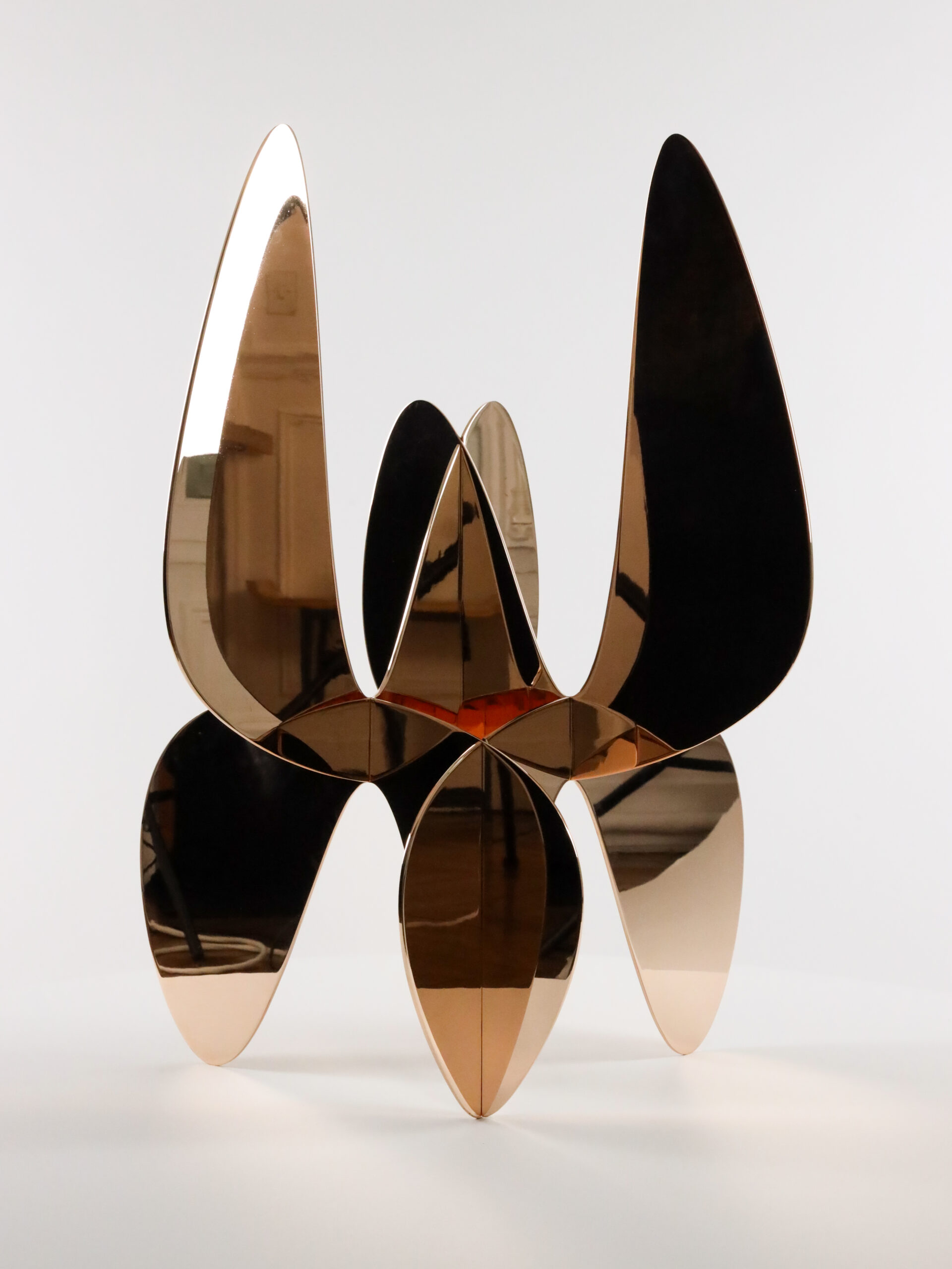 Alejandro Vega Beuvrin’s works are conceived as ‘spatial drawings’. In a minimalists’ style and influenced by his architectural knowledge, the artist views his works in relation to the surroundings space. Starting from his two-dimensional digital drawings, the artist laser cuts the metal plates, that upon assembly become three-dimensional forms.