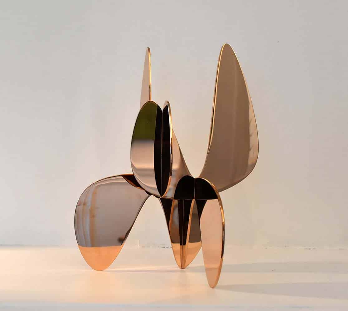 Using bronze allows the artist to investigate numerous aesthetic opportunities. Once polished, the metal becomes reflective, encouraging the viewer to consider the relativity of their viewpoint in relation to the setting. The reflection also creates a vibrant effect which brings the artist’s sculptures into the kinetic tradition of Latin American art.