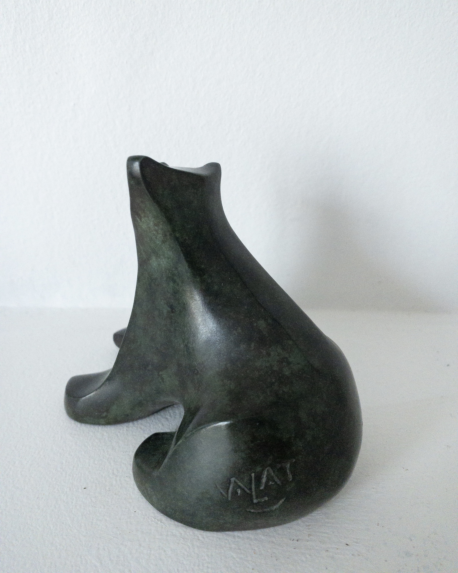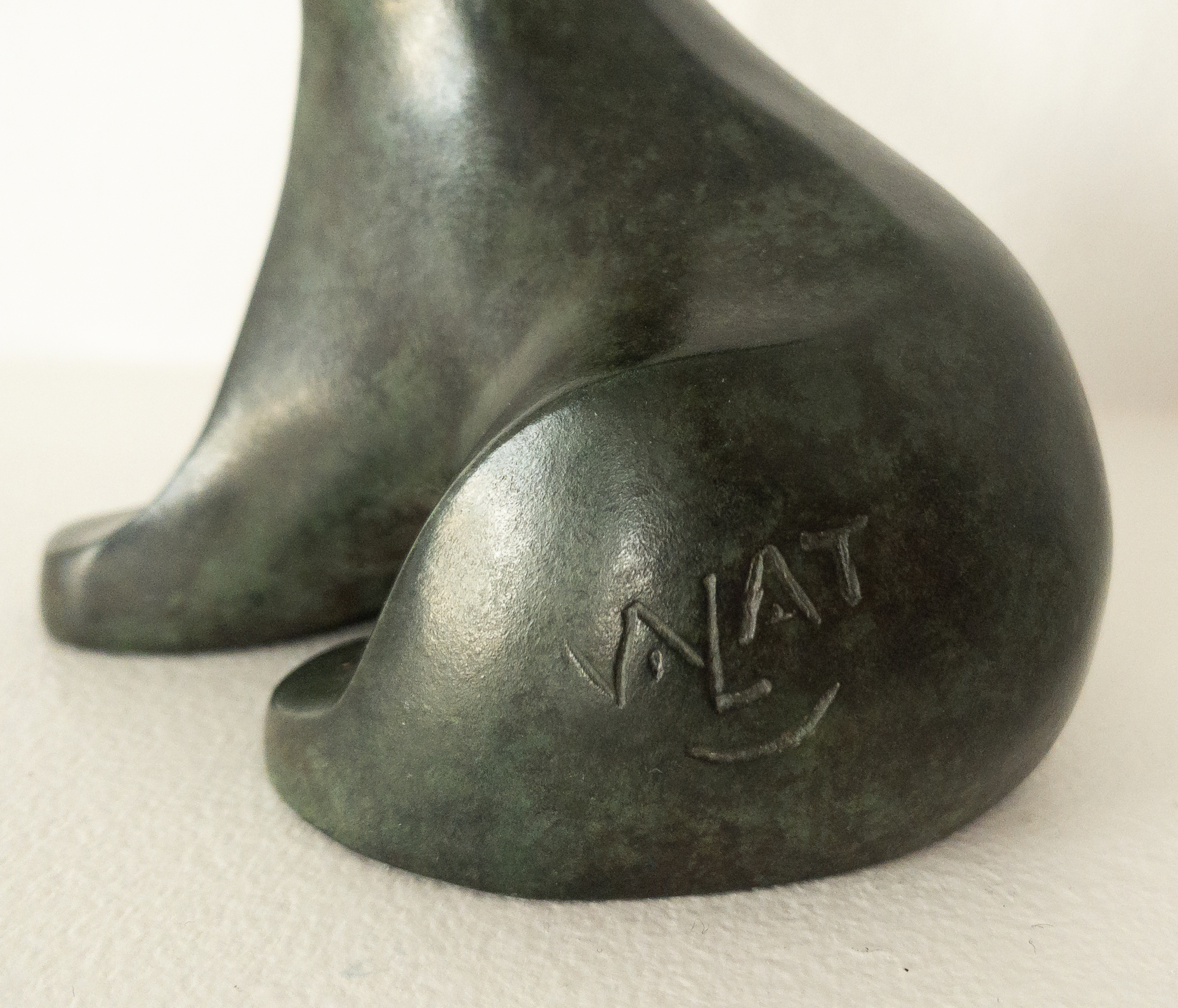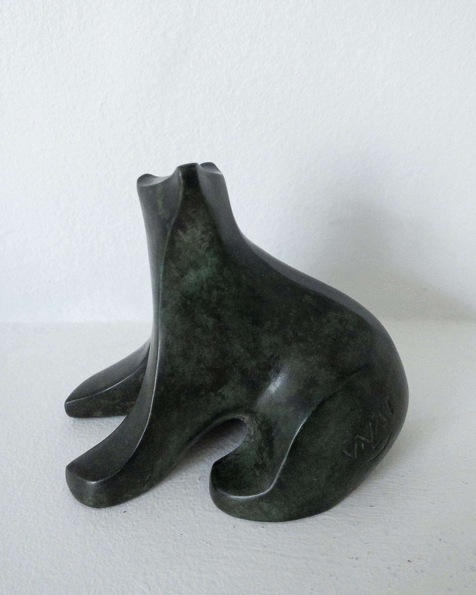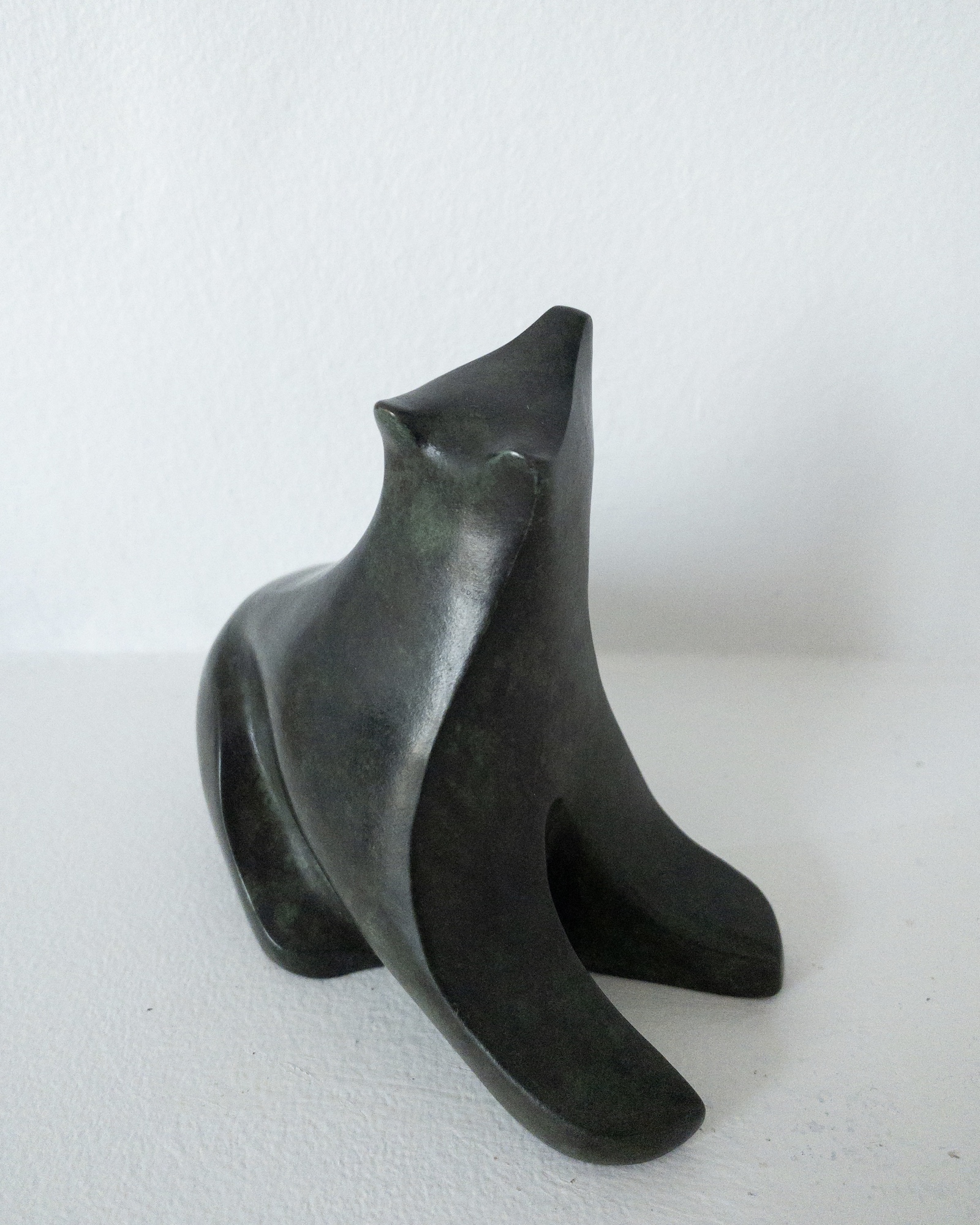 Straight out of childhood, the bear appears in Eric Valat’s bestiary sculptural vocabulary. After the Bear benches, with very vivid and bright colors, Eric Valat is looking for reinventing the traditional bear representation. The sculpture shows an elaboration of the forms of the animal which tends towards purification and harmony. The patina with blue tones gives it elegance and lightness.