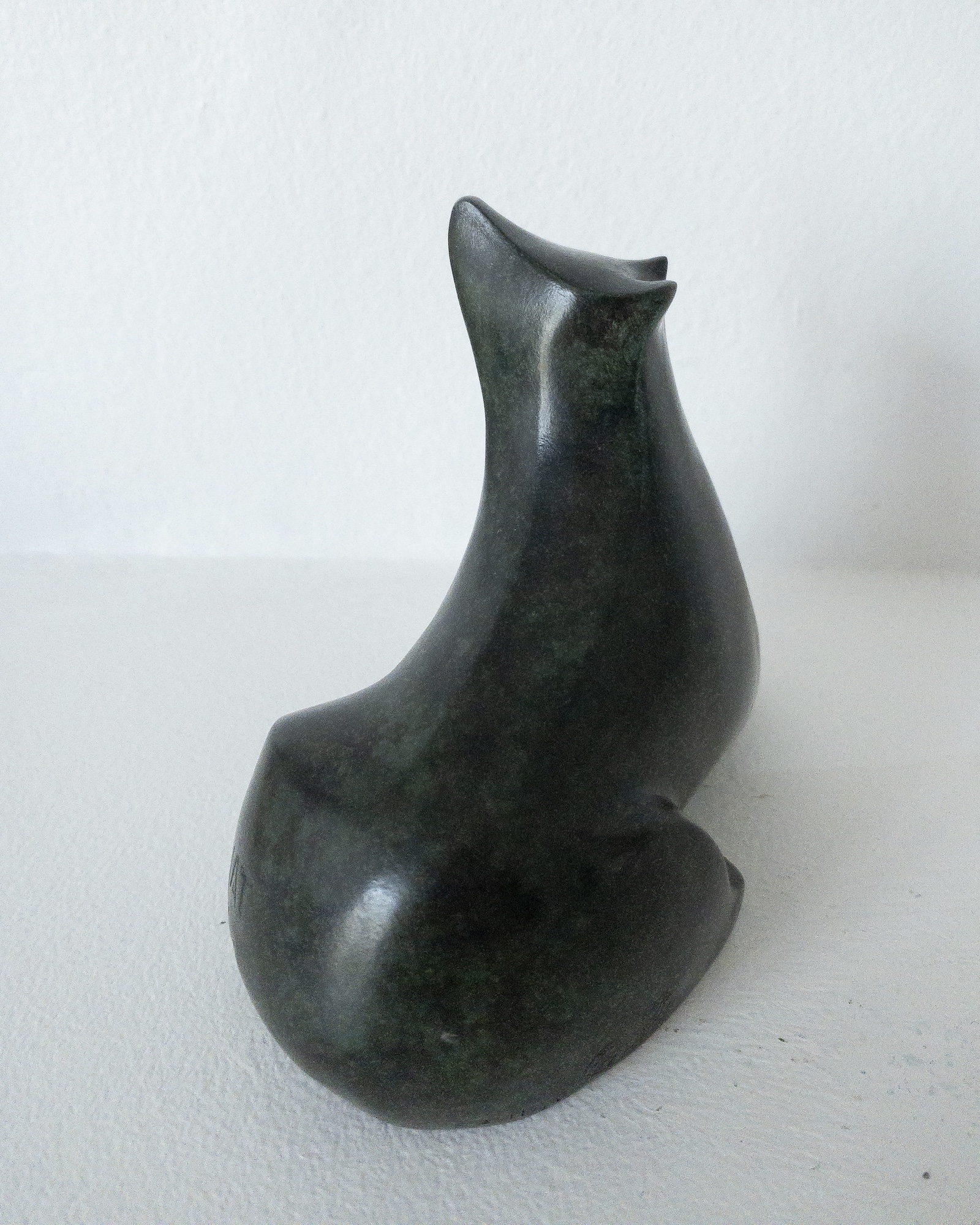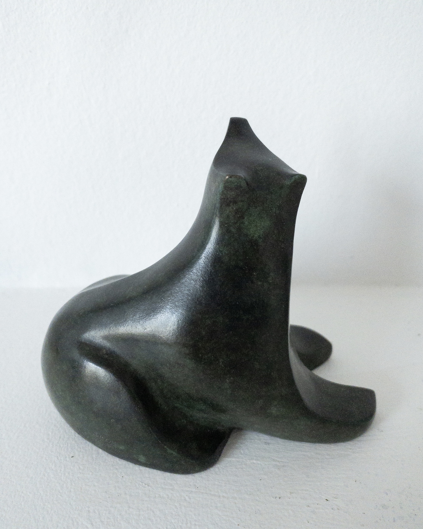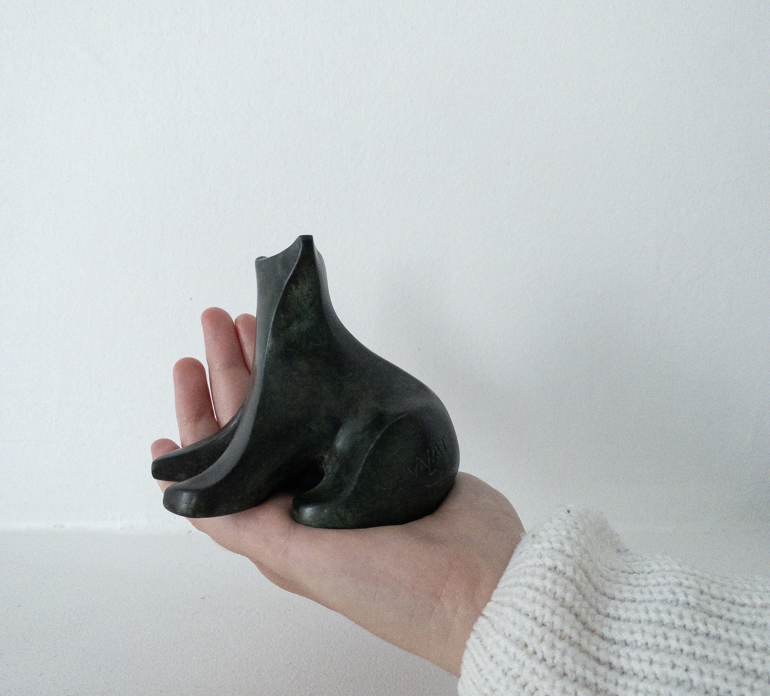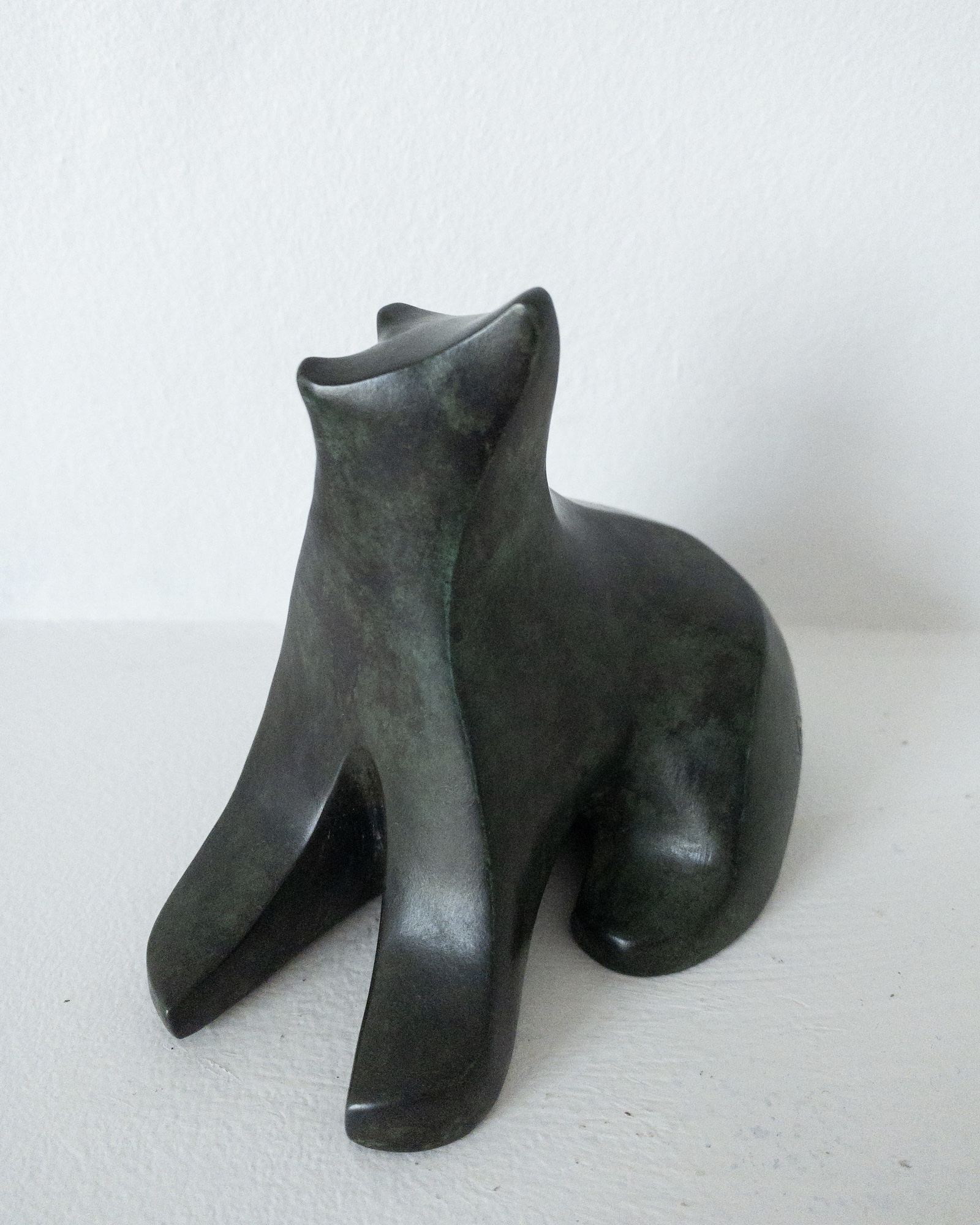Straight out of childhood, the bear appears in Eric Valat’s bestiary sculptural vocabulary. After the Bear benches, with very vivid and bright colors, Eric Valat is looking for reinventing the traditional bear representation. The sculpture shows an elaboration of the forms of the animal which tends towards purification and harmony. The patina with blue tones gives it elegance and lightness.