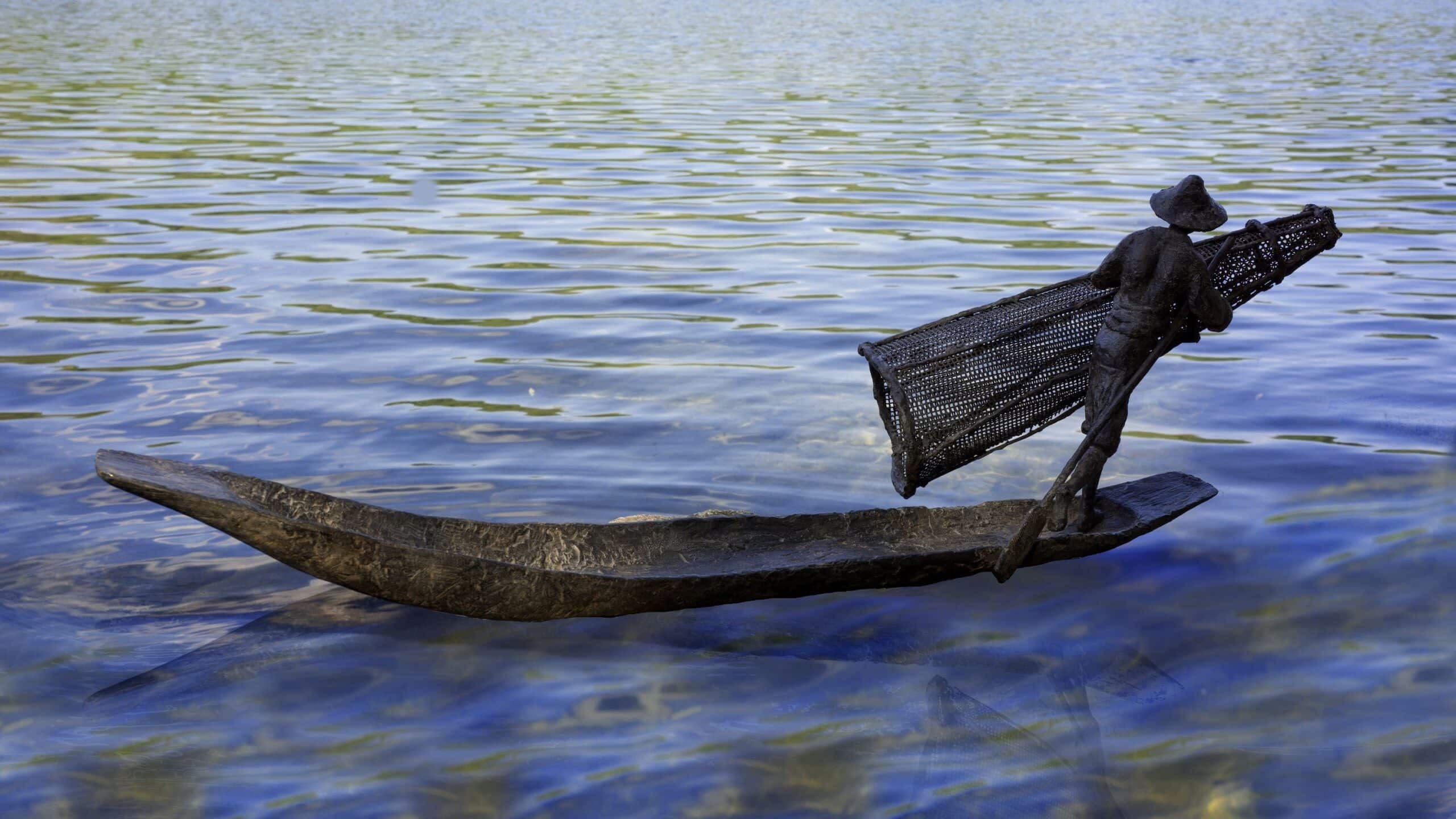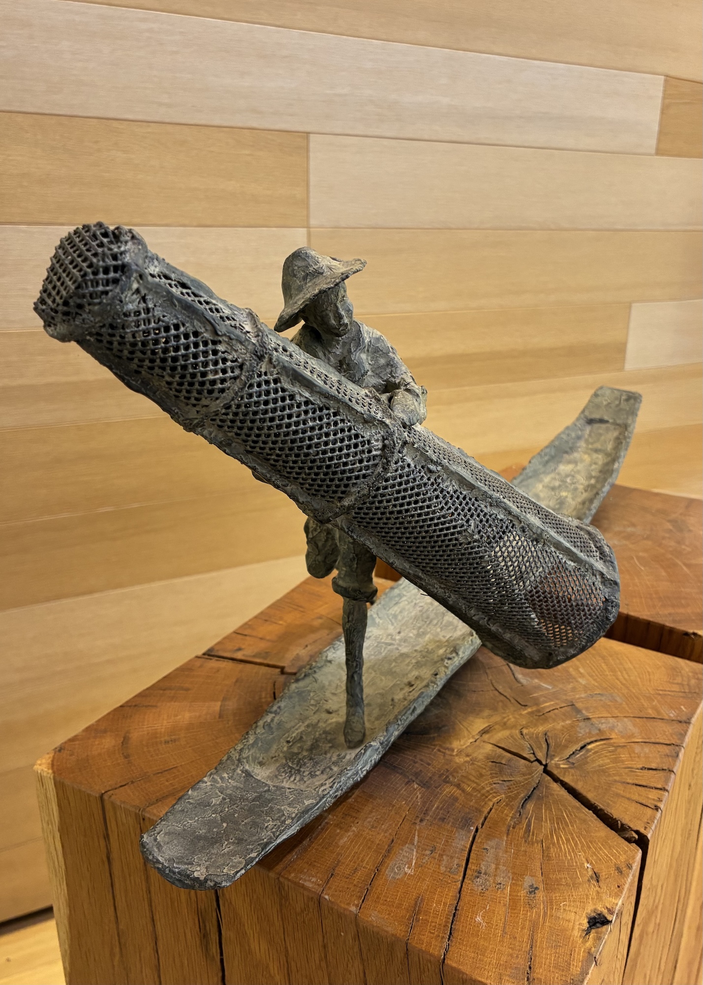 Burman Fisherman III is an artwork by French contemporary sculptor Marine de Soos. This bronze sculpture is from the “Fisherman” series. This figurative artwork shows a moment in the daily life of a Burmese fisherman, preparing his nets on his pirogue. The artist gets her inspiration from real or imaginary scenes. This bronze sculpture could be placed in an outside setting.