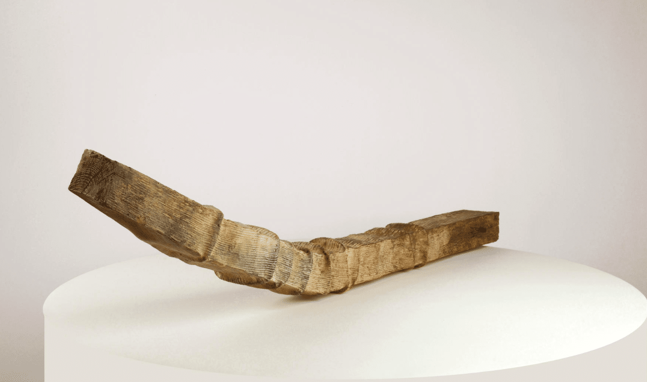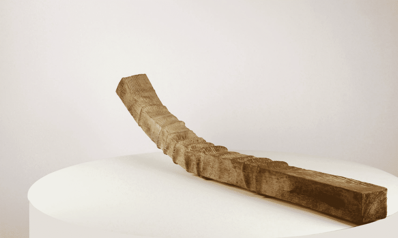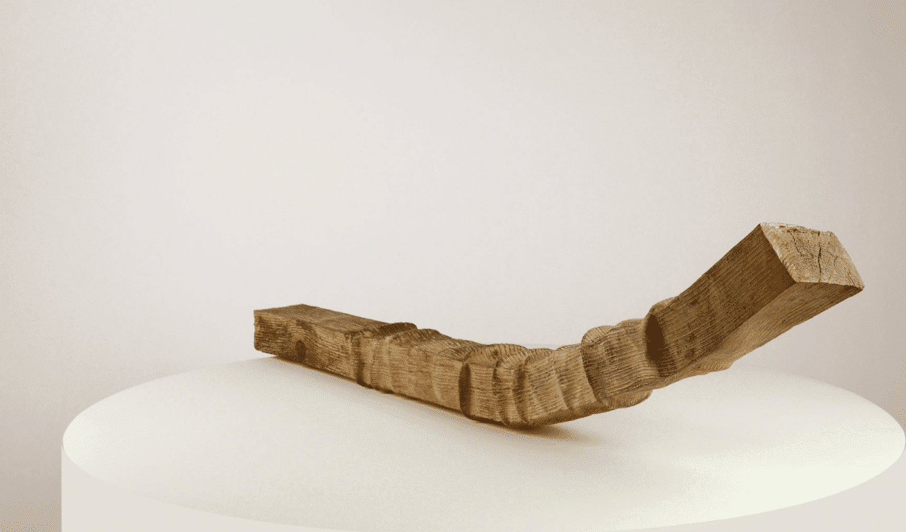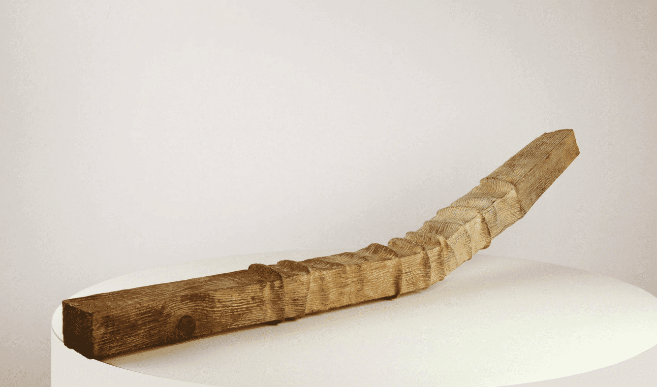 Chevron is a work by contemporary French artist Romain Langlois. In this bronze sculpture, Romain Langlois very realistically imitates the aspect of wood. The textures are obtained in the casting process and the colours through different patinas. Romain Langlois has denatured this banal object, has reshaped it and given it a new aspect which both intrigues us and transforms our impression of it.