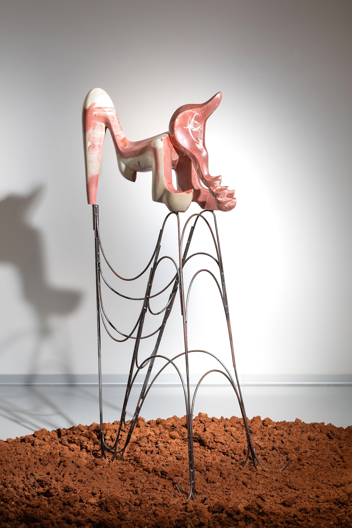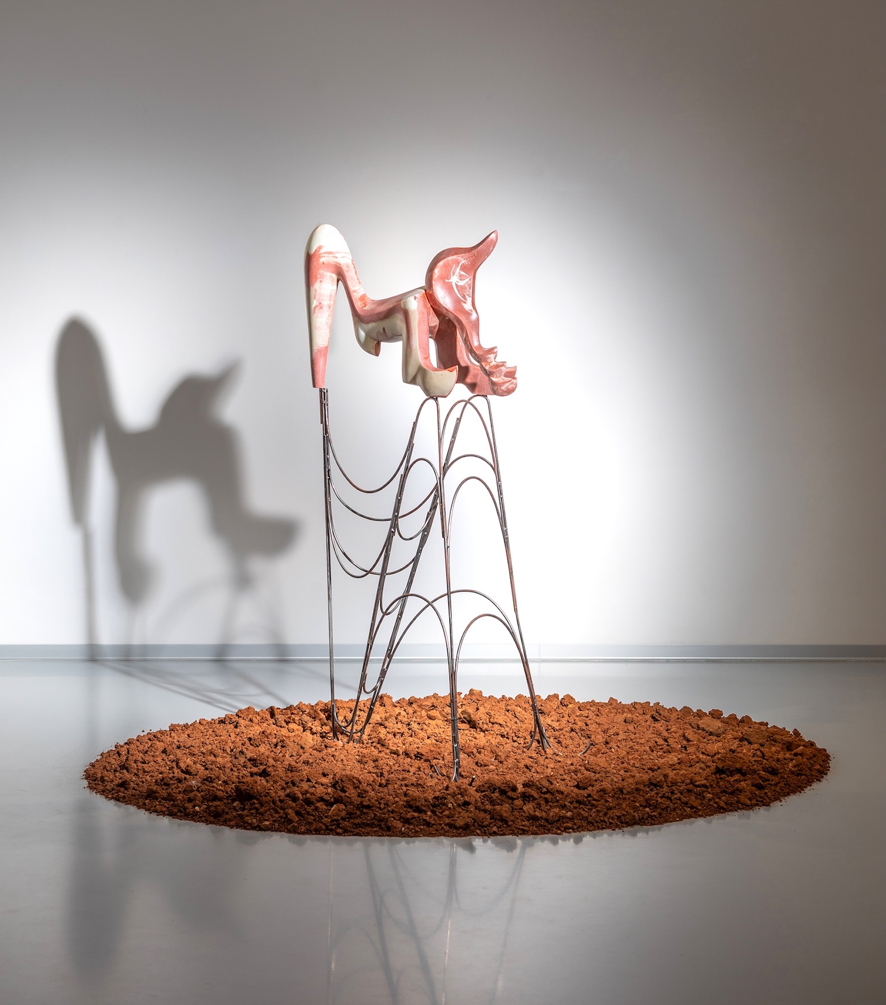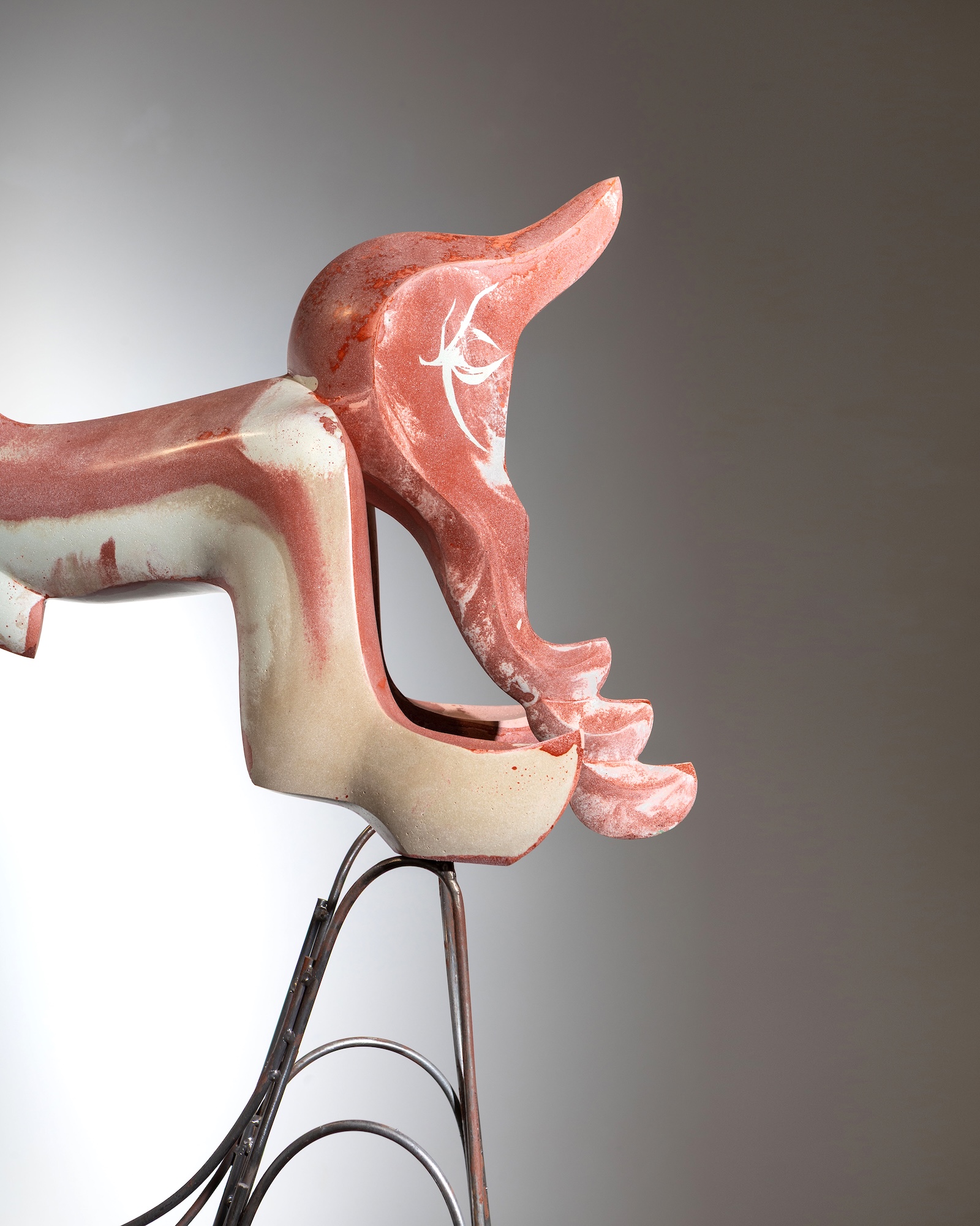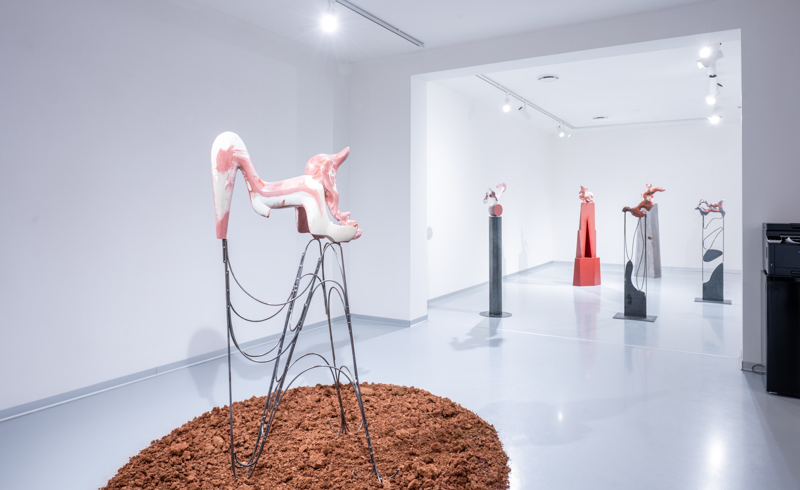 For this work, Pavlína Kvita takes the symbolism of red earth as her point of departure, a material tied to ancient myths of creation, life, and death. Red pigment was once used in rituals and burials, associated with protection, vitality, and the sacred bond to land and ancestry. These sculptures inspired by red earth, crafted from artificial stone, evoke ritual objects, hybrid beings, and totemic guardians. Placed on carefully designed geometric pedestals, her works challenge the boundary between sculpture and design, material and symbol.