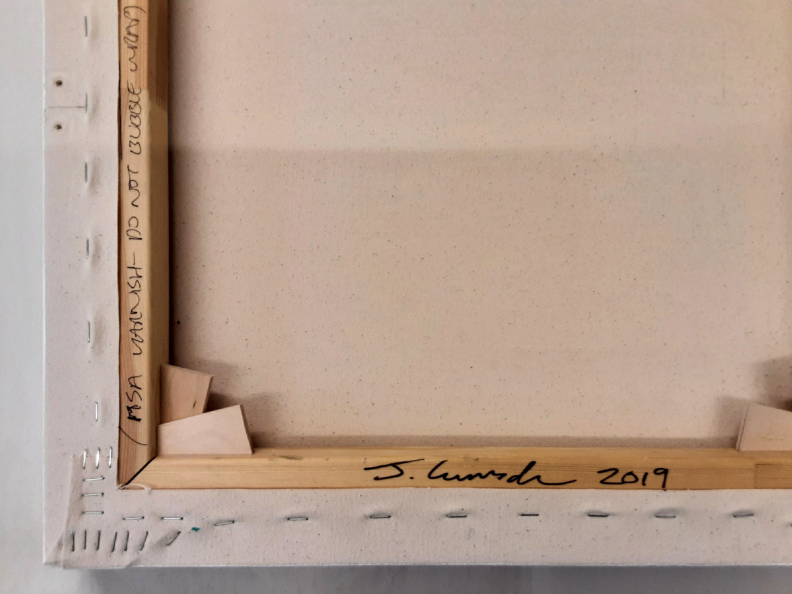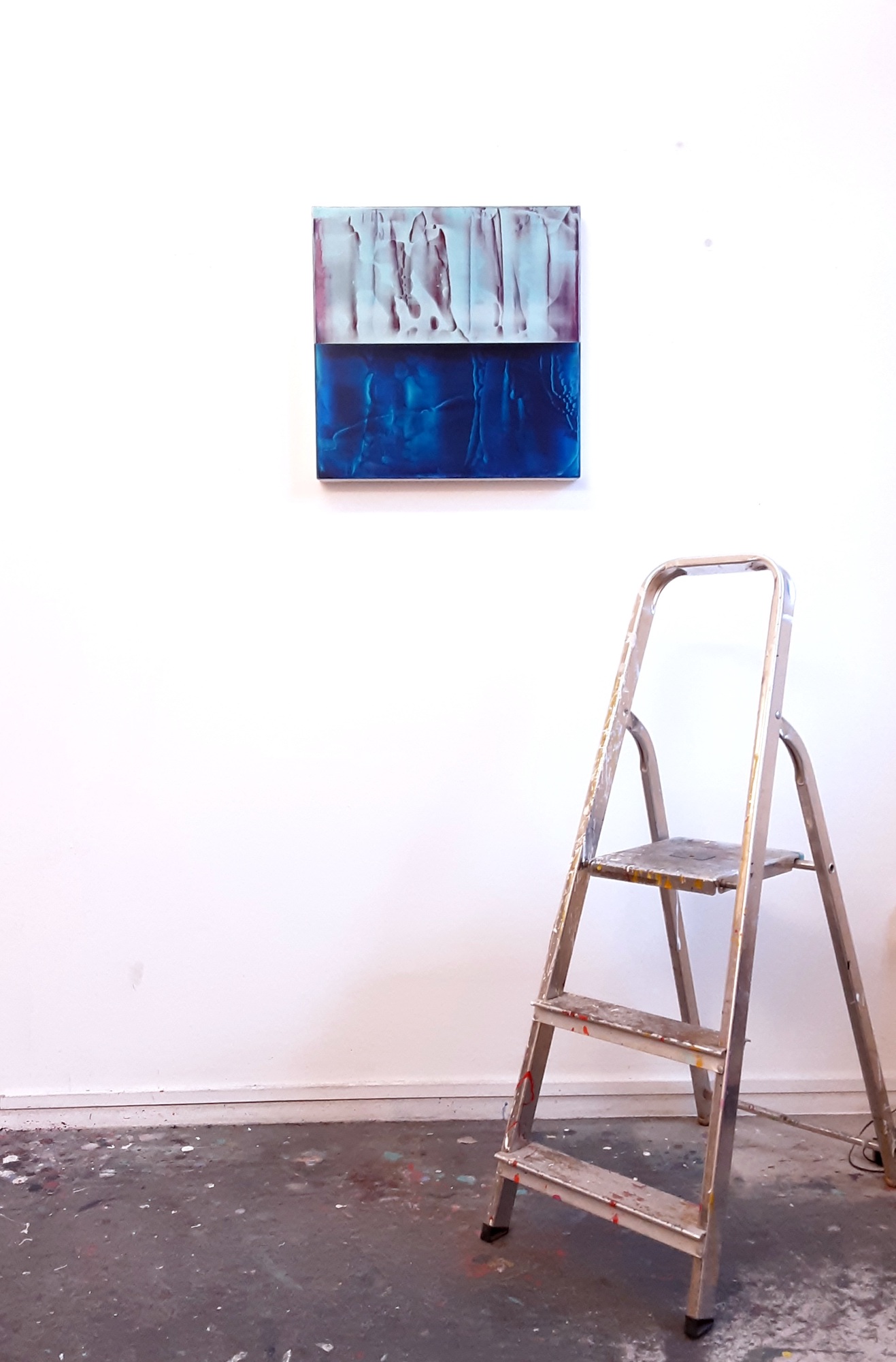 James Lumsden’s abstract paintings explore themes of light, colour and depth. His creative process involves superimposing dozens of thin layers of acrylic paint and gel gloss onto the canvas. This mixture is worked with specific tools to conceal or bring out traces and marks. Layer by layer, the artist succeeds in creating an illusion of depth and light within the painting, immersing the viewer in a mysterious and seductive universe.