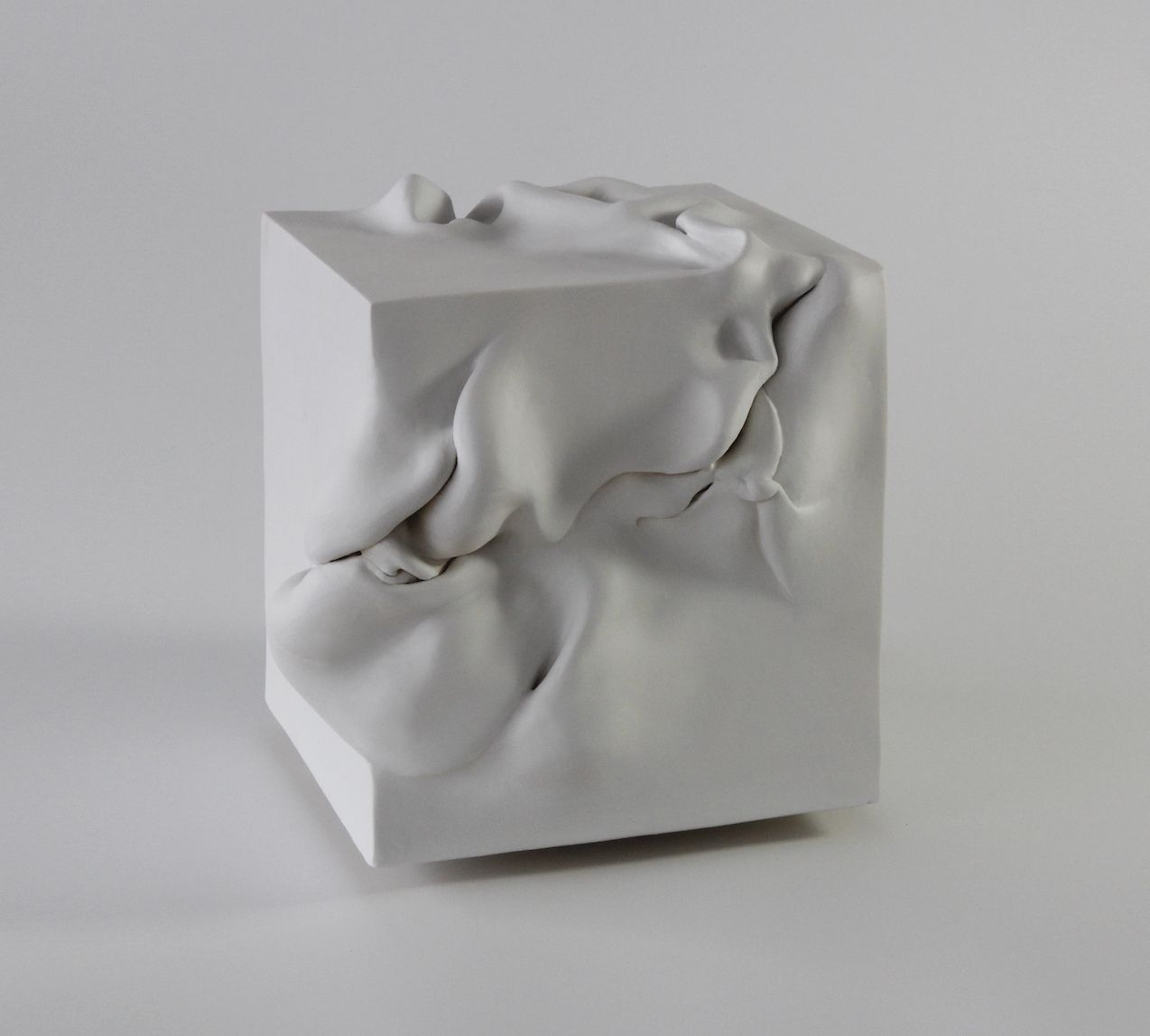 Cube 4 is a clay sculpture by contemporary artist Sharon Brill.