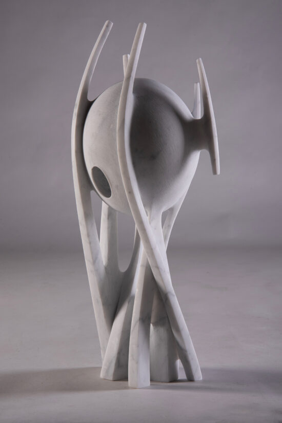 Francesca Bernardini’s marble sculptures, with their smooth, rounded forms, are rooted in states of mind, emotions and personal experiences. The shapes and volumes that give them form are often inspired by the natural world and are loaded with symbolism linked to universal themes: personal development, the importance of human interaction, respect for nature and the cycle of life. The artist summarises her artistic research as follows: “Inspired by the observation of the microcosm of the natural world, my work emphasises particular details and distorts dimensions, my forms becoming containers of past life or of inner or emotional metamorphoses.”
