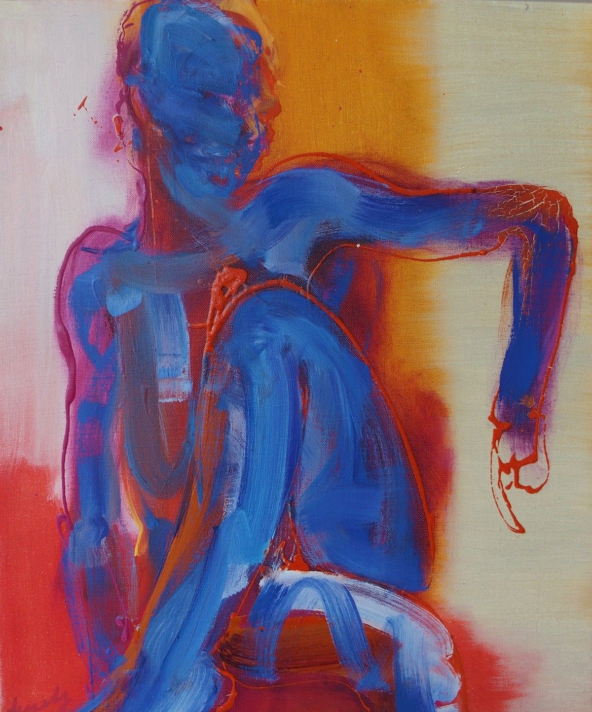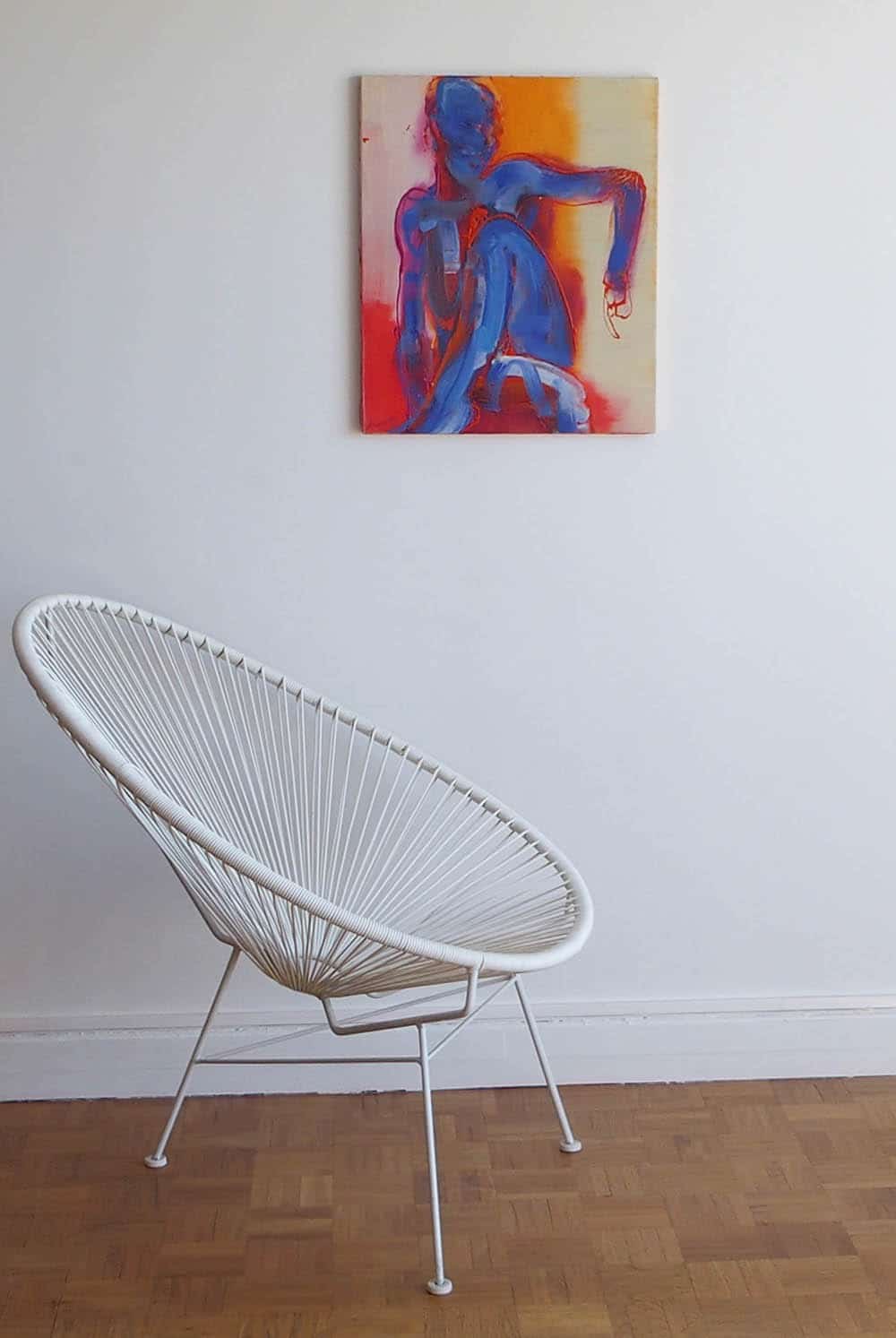 This technique, resembling the expressionism movement artwork, gives the paintings a particularly dynamic impression. Sometimes faceless, these human figures covered in blue are not without historical reference. One might think of the Klein blue covered women of the 1960’s.