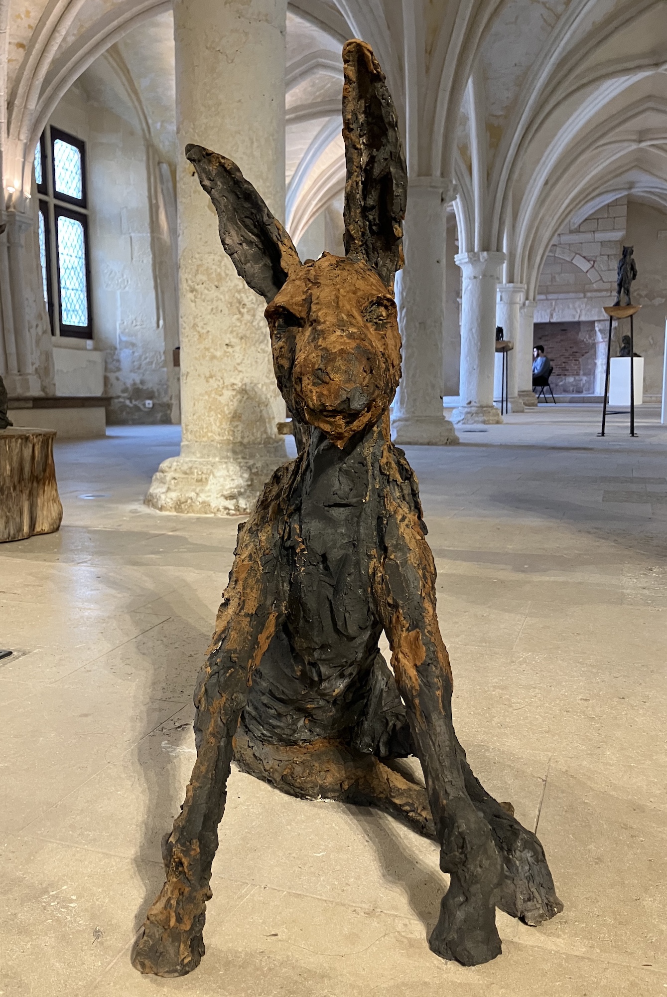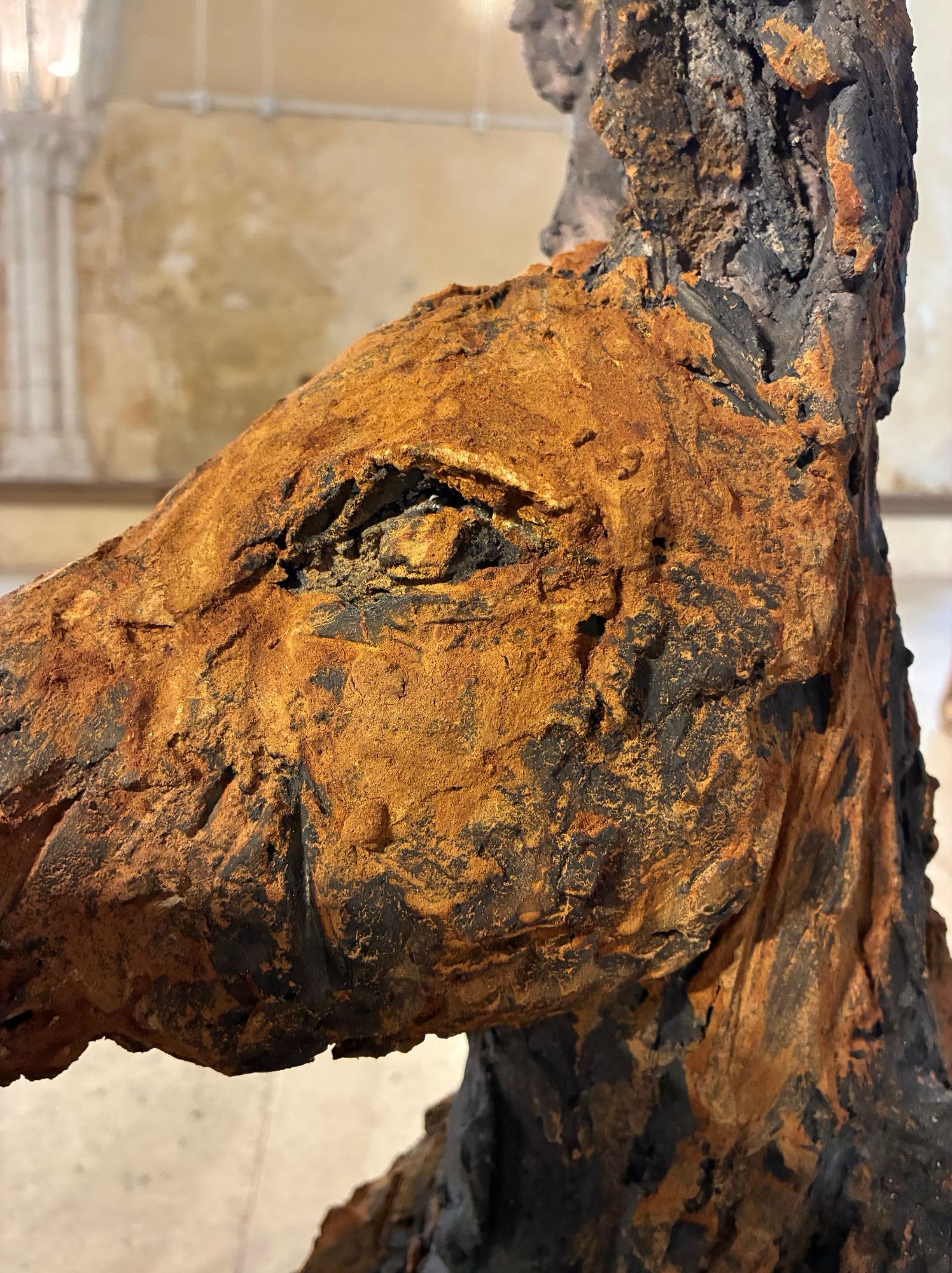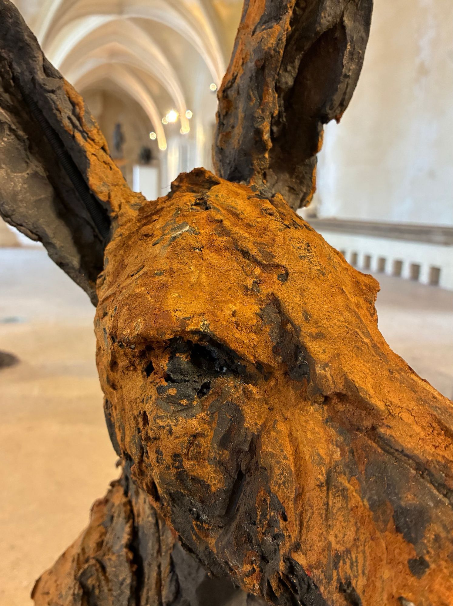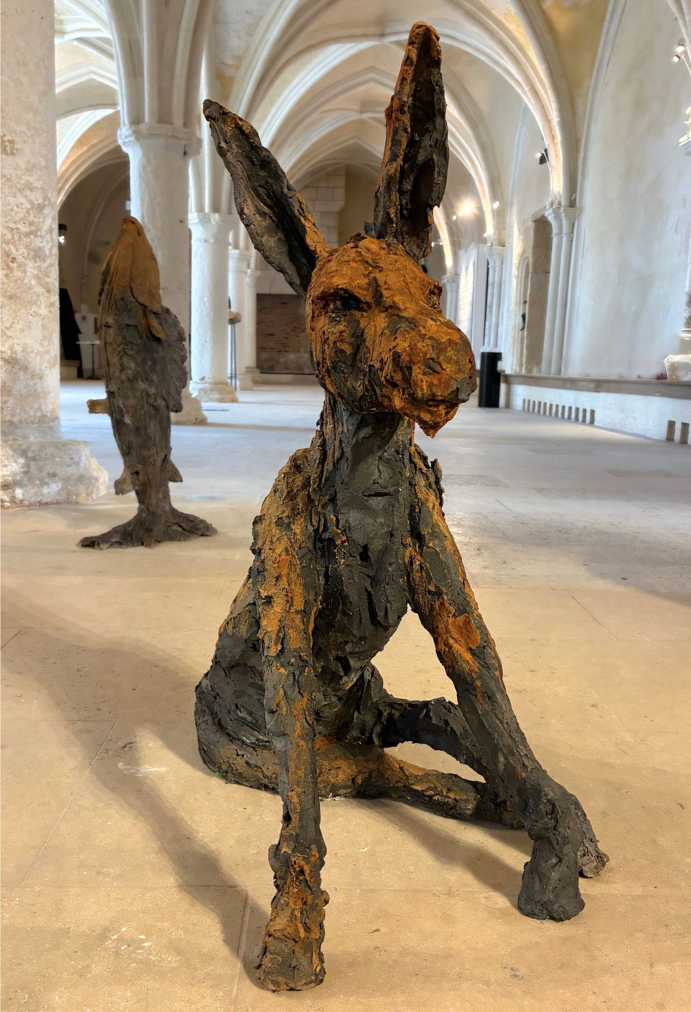 The installation Chœur de bêtes (Choir of beasts), on which the artist has been working for several years, has been exhibited at Cécile Raynal’s solo show, À la table des Dames (At the Ladies’ table), at Montivilliers Abbey in Normandy (2025). In this historic site, long home to women, nuns and abbesses, the sculptor has chosen to present works combining portraits of women and animals. Cécile Raynal’s sculptures do not seek to seduce, and can even sometimes appear disturbing. Rough, they bear the marks of a passage through matter, through trial, and yet they stand upright, alive. They conjure up a world in which the animal, feminine, instinctive or rebellious side is embraced as an essential force. In the restored Abbey, the exhibition retraces the last fifteen years of the French artist’s singular career (more information on the exhibition here).